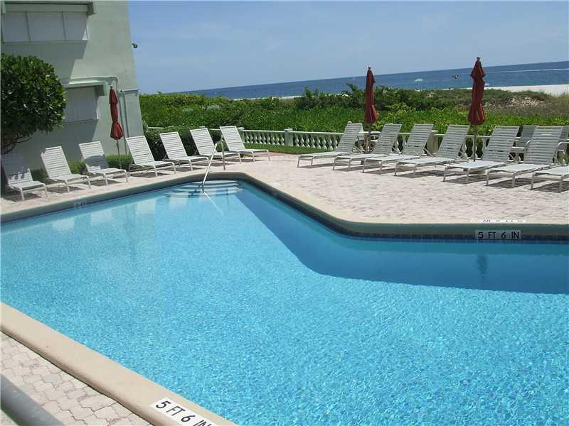 MILLION DOLLAR DIRECT OCEAN VIEW! BEACH FRONT COMPLEX. GARAGE PARKING & MANY GUEST SPACES.WELL MAINTAINED MANAGED COMMUNITY W/24 HR SECURITY. IMPACT WINDOW IN MASTER BEDROOM,OTHERS ARE SHUTTERED. THE MAINT FEE INCLUDES PROPERTY TAXES. MAY BE RENTED ONCE DURING OWNERSHIP. MUCH DESIRED EAST-WEST EXPOSURE FOR FANTASTIC SUNRISE & SUNSETS. INTRACOASTAL VIEWS FROM THE KITCHEN. EAST-WEST BREEZES FILL THIS UNIT. MARBLE FLOORING. A MUST SEE. EASY SHOW. GENEROUS STORAGE ROOM AND GORGEOUS GROUNDS * MAKE OFFER *
