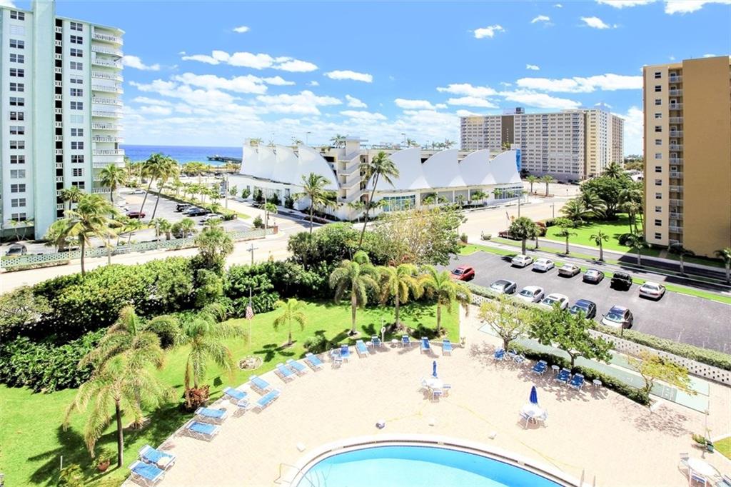 SPACIOUS ONE BED/ONE BATH POMPANO BEACH CONDO WITH IMPRESSIVE VIEWS OF THE POMPANO AMPHITHEATER AND THE OCEAN. THIS SPACIOUS CONDO FEATURES ALL IMPACT WINDOWS AND DOORS, A RECENTLY UPDATED KITCHEN WITH WHITE CABINETS AND GRANITE COUNTER TOPS (SELLER TO PROVIDE NEW OVEN OR WILL CREDIT BUYER), NEUTRAL TILE FLOORS THROUGHOUT, UPDATED BATHROOM WITH A JETTED TUB AND NEWER VANITY, TOILET AND TILE WORK. TONS OF STORAGE WITH A WALK-IN CLOSET PLUS 2 DOUBLE CLOSETS IN MASTER BEDROOM.