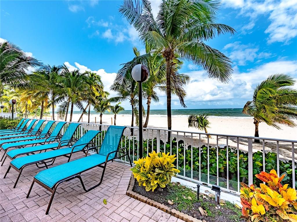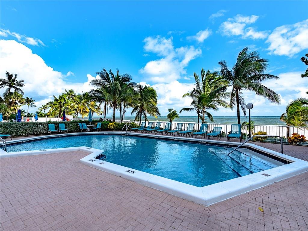 Absolutely stunning oceanfront condo that is totally remodeled. The unit features 24" zero grout line porcelain tile throughout, solid wood cabinets in the kitchen, granite counter tops, brand new LG SS appliances, master bath has granite vanity, glass shower doors, large closet, guest bath has a modern finish all brand new, impact windows, direct ocean view, a/c 2 years new, and so much more. The building amenities include private beach access, covered parking, heated pool. This is a must see!