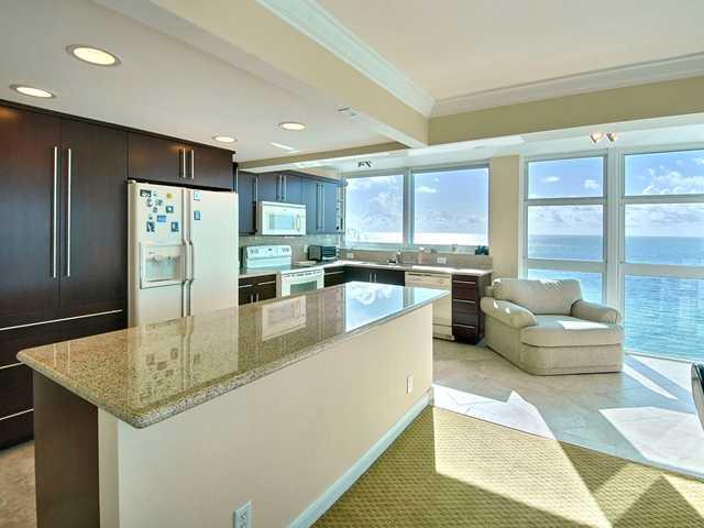 Breathtaking direct ocean views from this SE corner two-story penthouse in the sky! This one-of-a-kind unit was the original developers personal residence and is the very best this oceanfront building has to offer. Spectacular ocean views all the way Sout h to Miami Beach and wonderful views of the city, Intracoastal waterway. Open updated kitchen with granite counters, elevator or winding staircase to second floor master with Vegas style marble bathroom. Two prime covered parking spaces at lobby entrance.