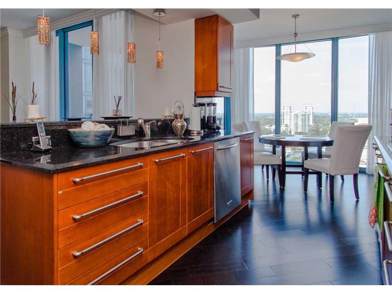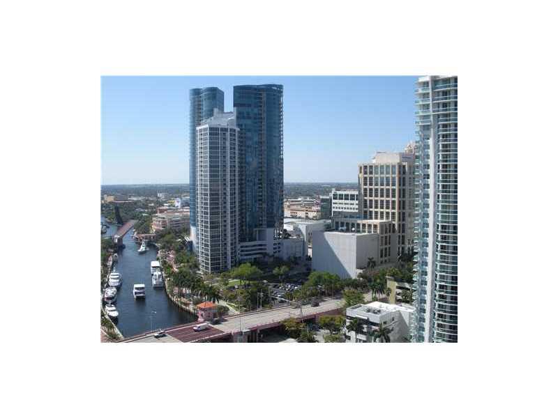 Gorgeous 18th floor Lexington model w/ Panoramic views thru floor-ceiling impact glass including breathtaking sunsets the New River & pool. Enjoy spectacular events like the WinterFest Boat Parade, Air/Sea Show, July 4th. Features include a split floor pl an, Espresso wood floors in living areas, and bedrooms, Gourmet kitchen w/ Snaidero cabinetry & granite counters. Luxury building with concierge, billards, fitness center, gym, spectaular pool w/ surrounding hot tub, grill, wet bar and sundeck.
