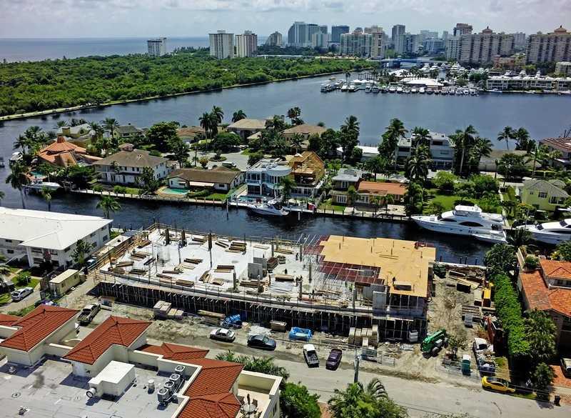 New construction at exclusive waterfront development in Coral Ridge. The beach, waterways, shopping, dining, & entertainment are in proximity. Residence features a private elevator, 10' ceilings, floor to ceiling windows, summer kitchen, flow through desi gn, Italian cabinetry, two covered parking spaces, motorized window treatments, Bosch appliances and designer finishes. Furniture-Ready. Owner choice of wood or porcelain flooring included. Deeded Dock available for 40' boat.