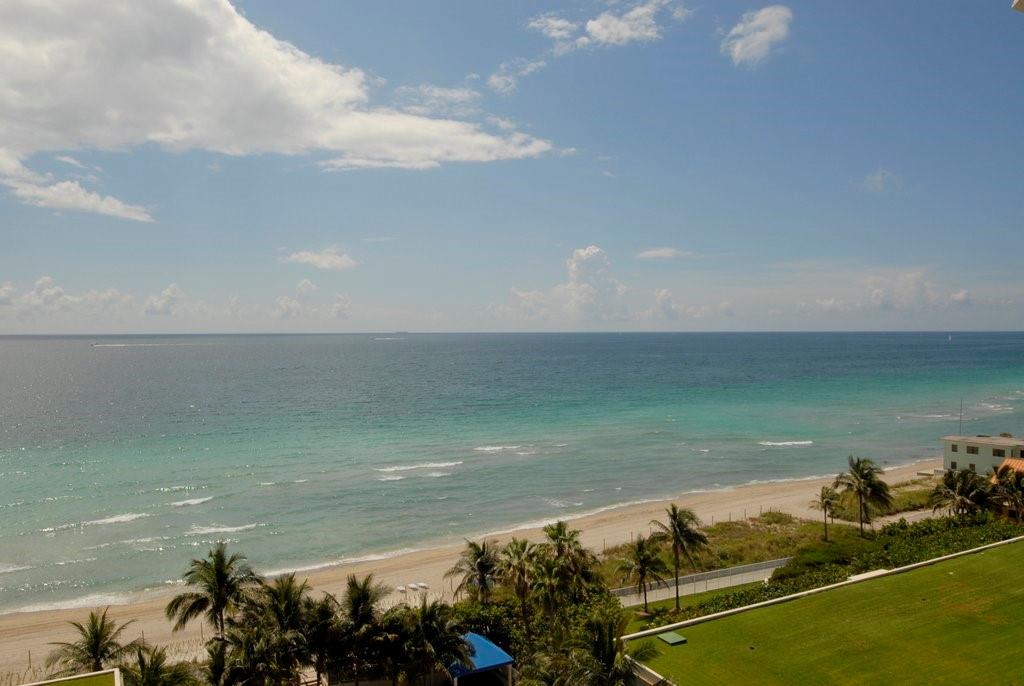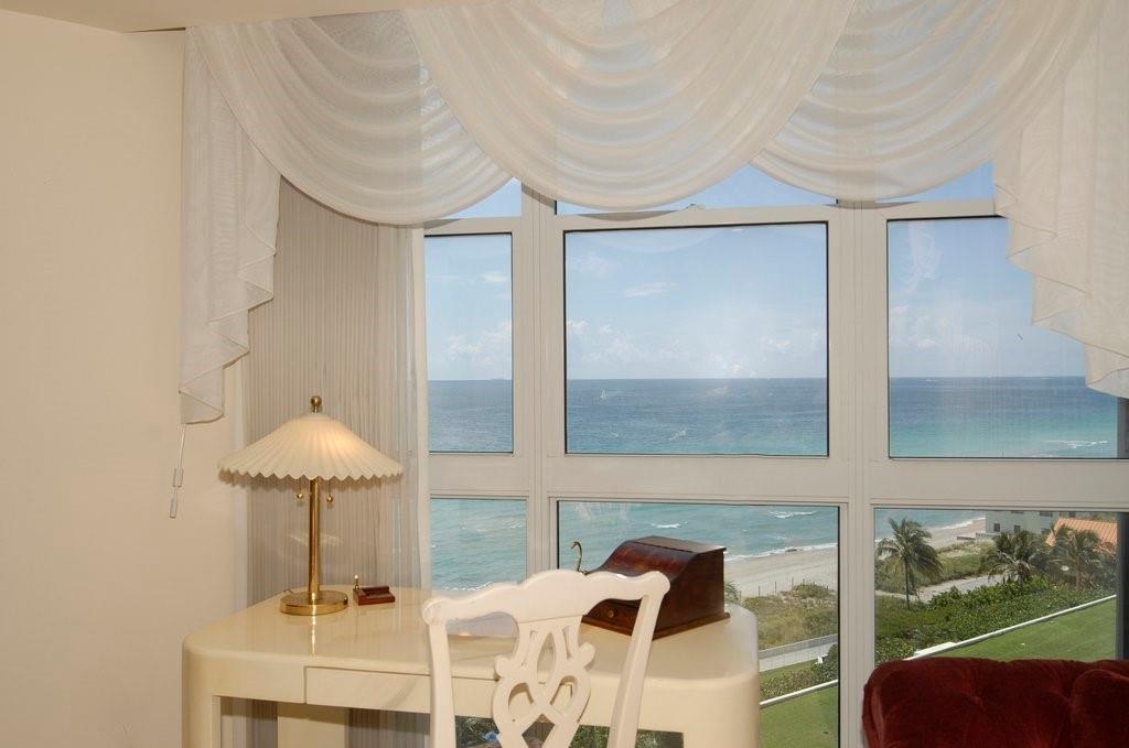 Private elevator and foyer to double front doors. Gallery hallway immediately opens to breathtaking views of the ocean and intracoastal. 270 degree wrap terrace with shutters. Floor to ceiling windows, sliding doors and soothing cross ventilation. Pristine home with 2 bedrooms and den/third bedroom all with bathrooms. Den has sleeper couch, built in TV. and furniture. Semi open granite kitchen, porcelain floors, concealed lighting, soffits, crown molding and more special features. Furnished.