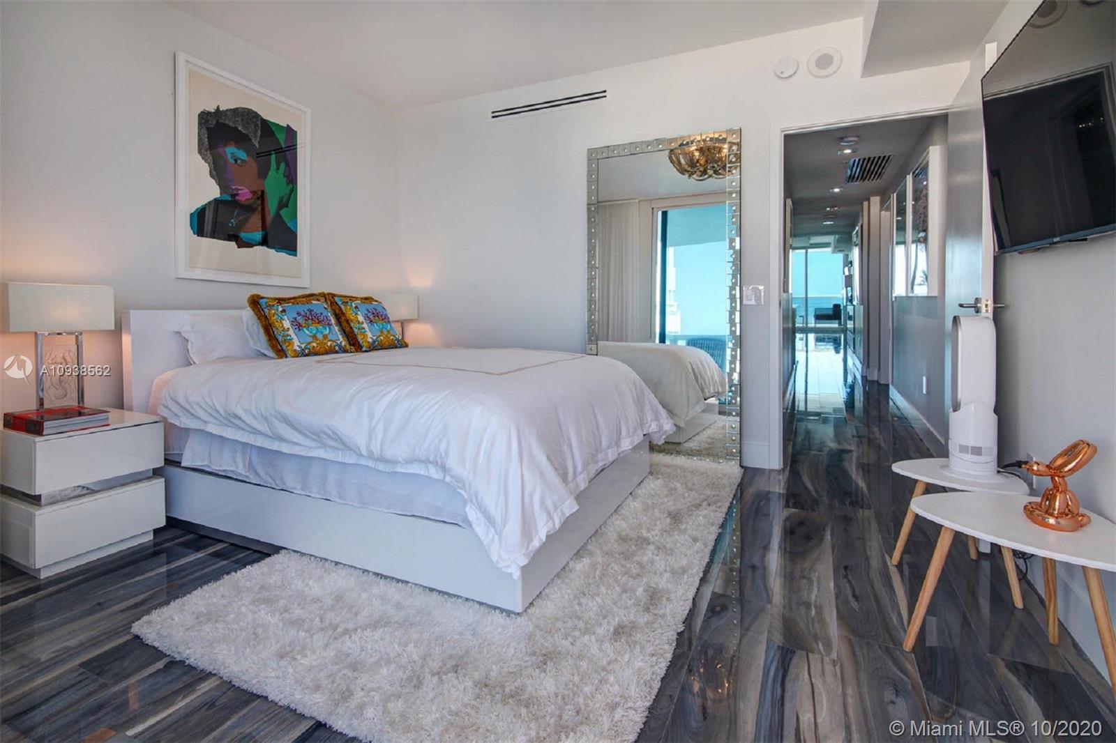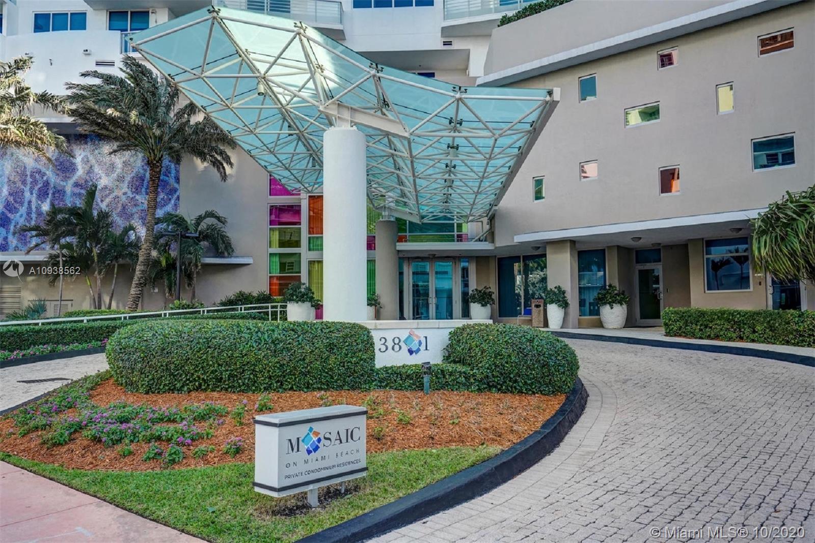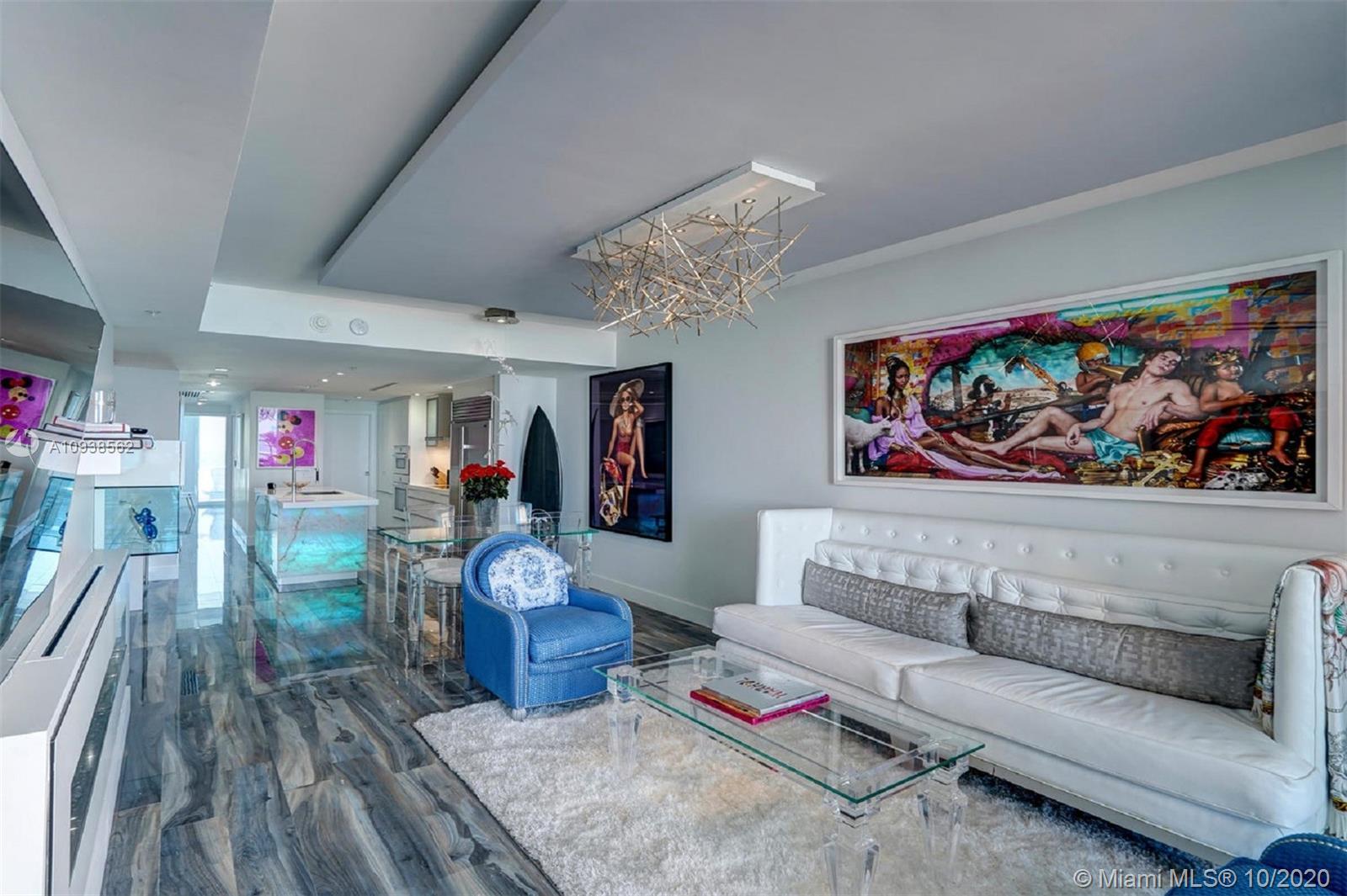 WOW! This impeccably renovated direct ocean view 2BE/2BA apartment features the best of interior design: gorgeous porcelain floors, top of the line kitchen; Poggenpohl glass veneer cabinets, Subzero & Miele appliances, quartz & onyx multi color changing center island & bar w/built in wine cooler. Master Suite w/walk in closet & chic "noir" bath w/Jaccuzzi tub. Both bath's cabinets & tile by Porcelanosa. Upgrades include; living room fireplace, recess lighting, black out & sheer window treatments, top line faucets, Toto toilets. Porcelanosa wave tile accent wall in the foyer. Mosaic is a luxury resort style building minutes from Faena district w/top notch services & amenities including infinity pool, hot tub, club room, theater, valet & concierge. Chandeliers excluded.