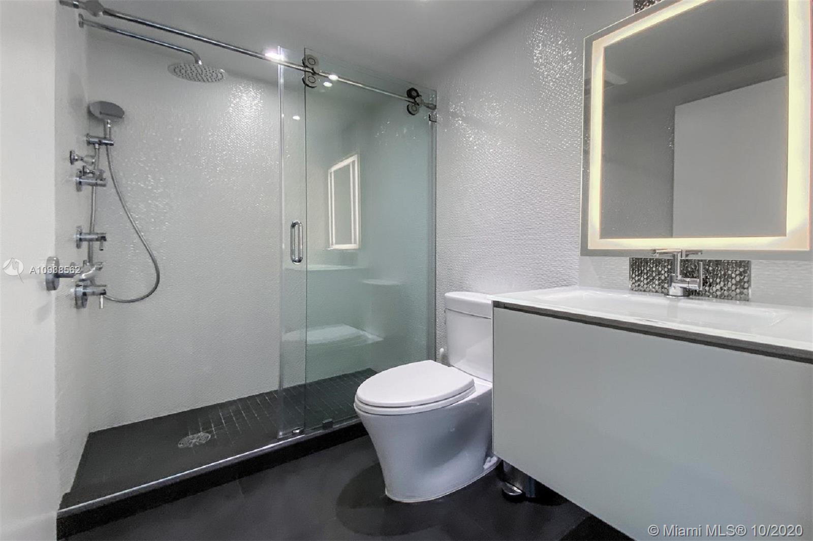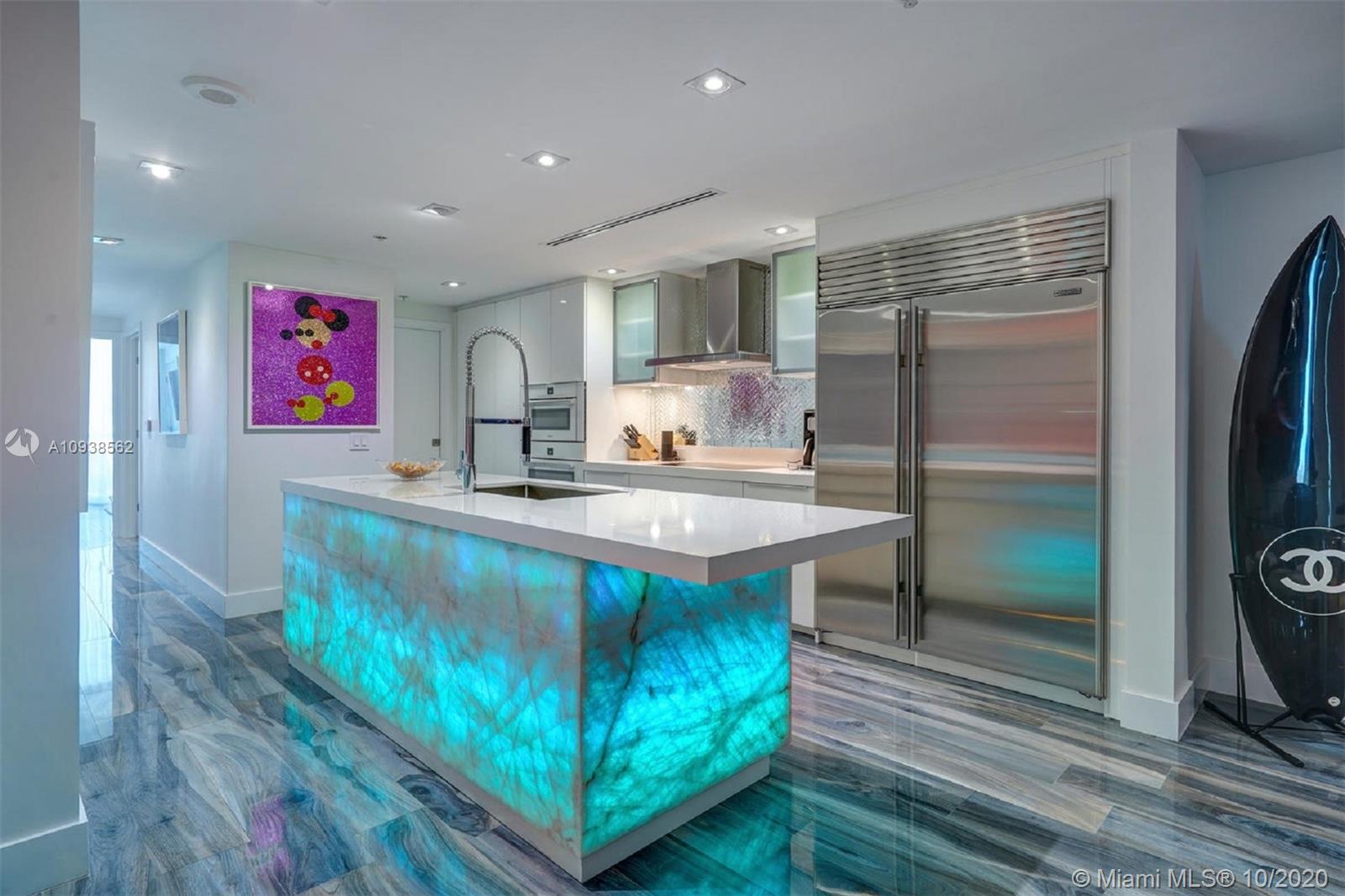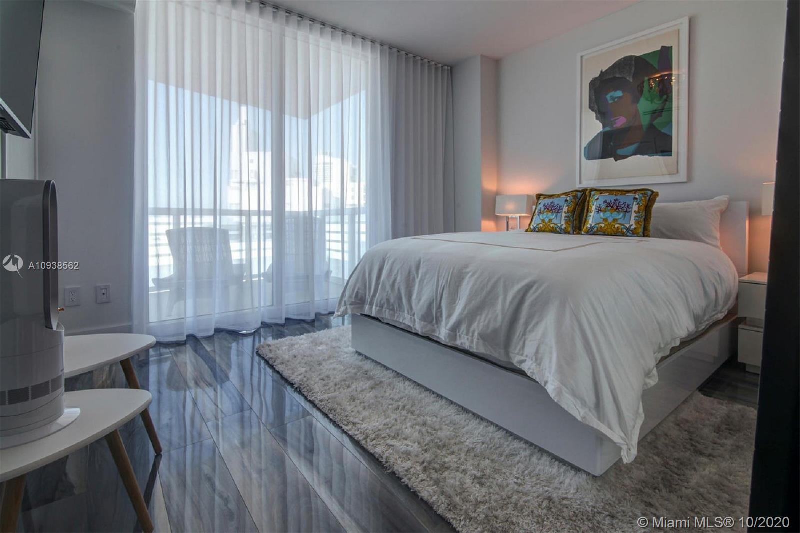 WOW! This impeccably renovated direct ocean view 2BE/2BA apartment features the best of interior design: gorgeous porcelain floors, top of the line kitchen; Poggenpohl glass veneer cabinets, Subzero & Miele appliances, quartz & onyx multi color changing center island & bar w/built in wine cooler. Master Suite w/walk in closet & chic "noir" bath w/Jaccuzzi tub. Both bath's cabinets & tile by Porcelanosa. Upgrades include; living room fireplace, recess lighting, black out & sheer window treatments, top line faucets, Toto toilets. Porcelanosa wave tile accent wall in the foyer. Mosaic is a luxury resort style building minutes from Faena district w/top notch services & amenities including infinity pool, hot tub, club room, theater, valet & concierge. Chandeliers excluded.
