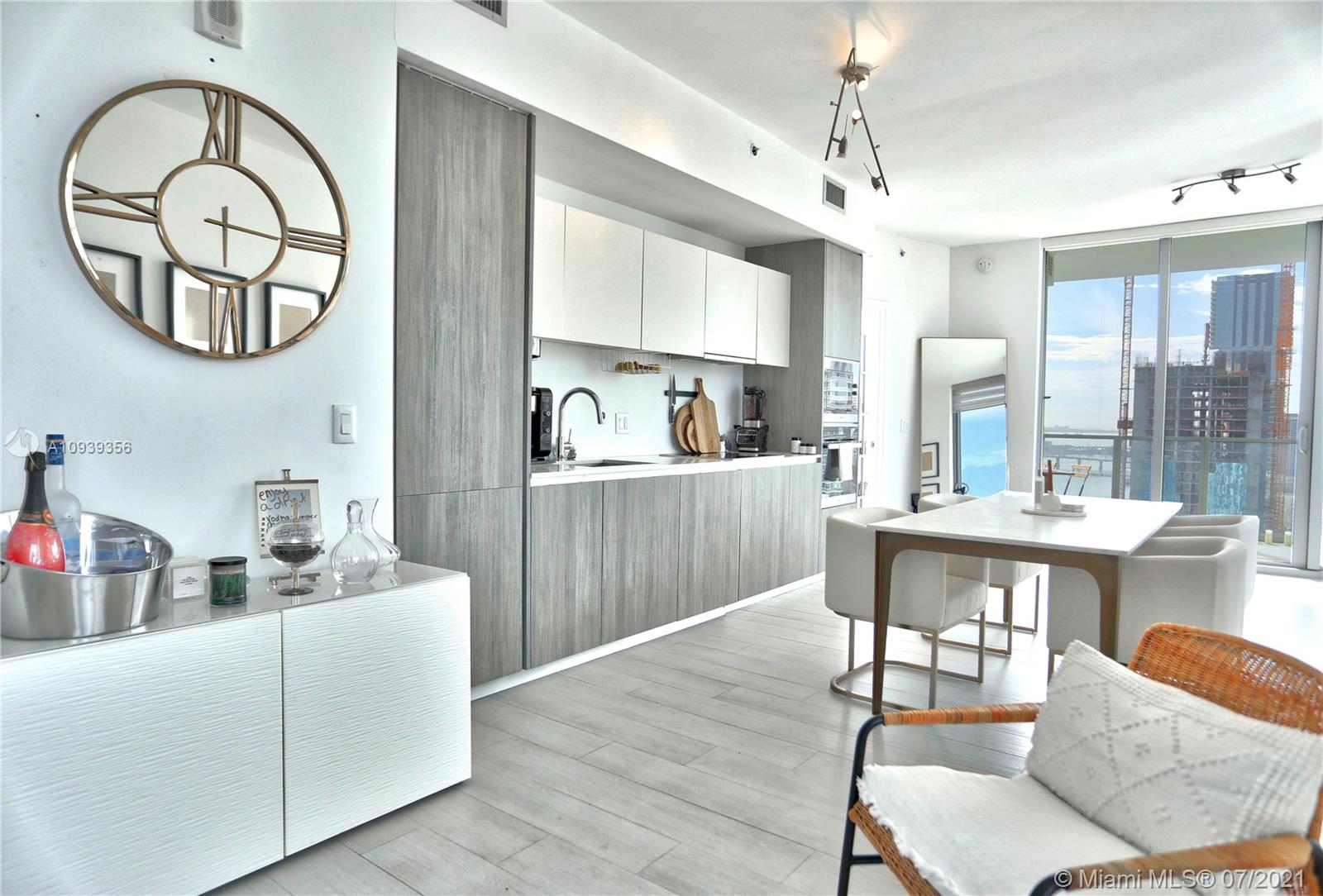 JUST REDUCED 30K FOR RAPID SALE!! Enjoy this magnificent unit with directly Southeast stunning views in the newest and one of the most luxurious buildings in East Edgewater. 944 SF 1 bedroom + Spacious den(may be converted into a second bedroom)and 2 bathrooms with terrace. private foyer and elevator for daily routine, walk-in closets, top of the line appliances, window treatments, incredible Bay views & lots of lights from every angle. This is a fully-concierge building and valet available. Biscayne Beach's interiors were designed by renowned Bravo star and design expert Thom Filicia. Luxury amenities including 2 pools, cabanas, a beach club, state of an art gym, spa, tennis courts.