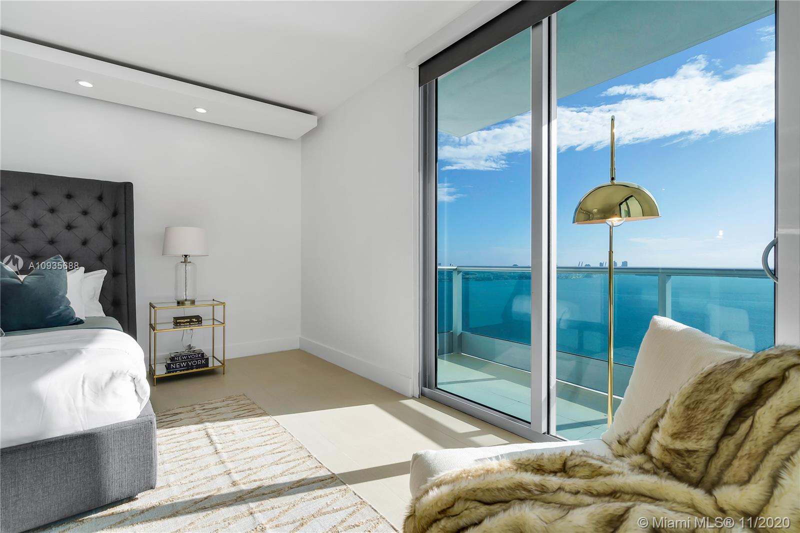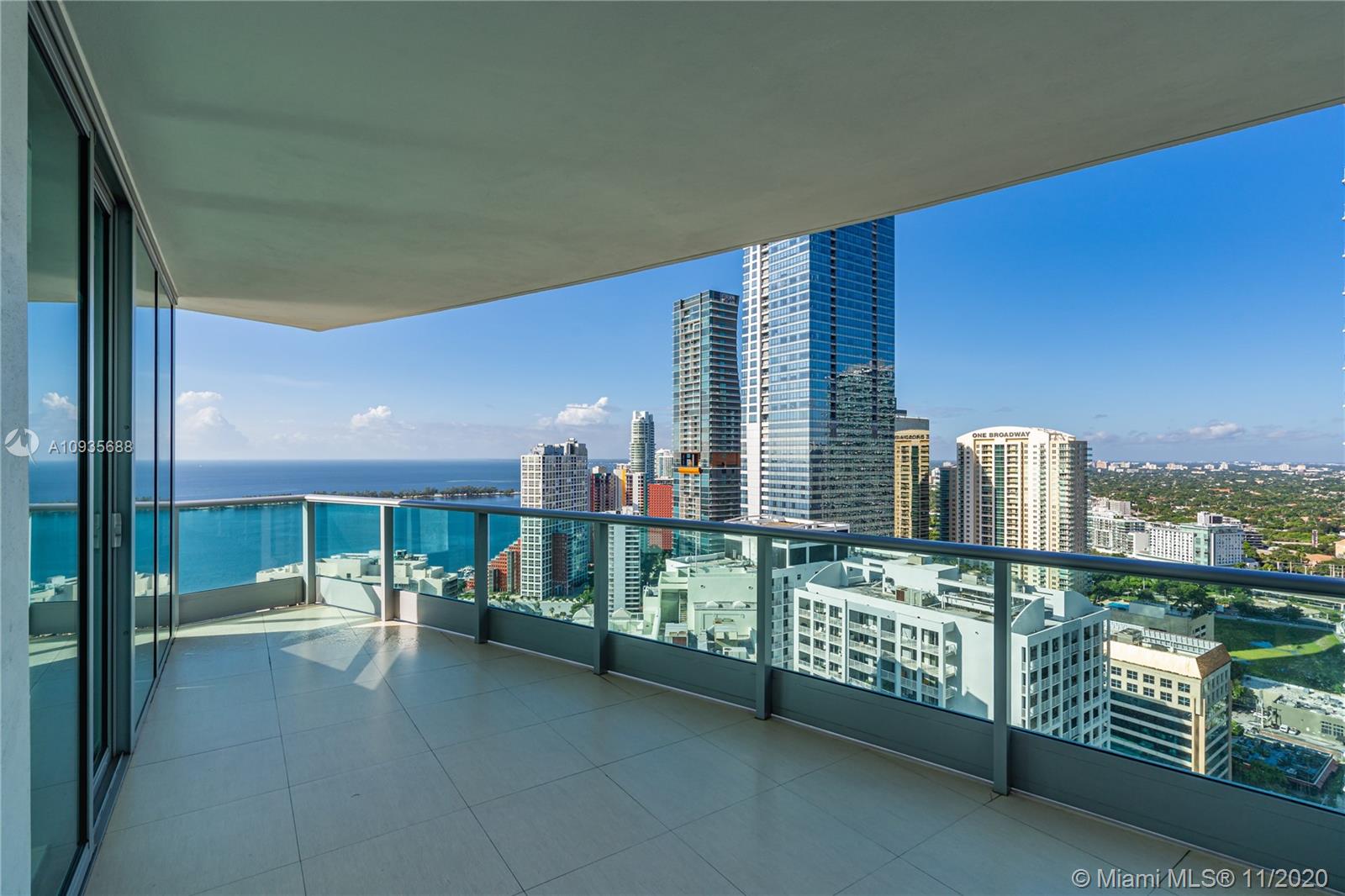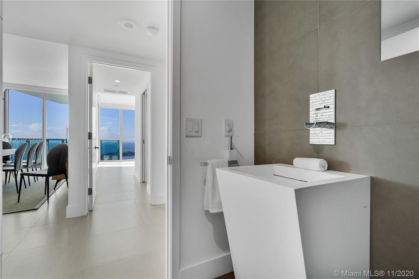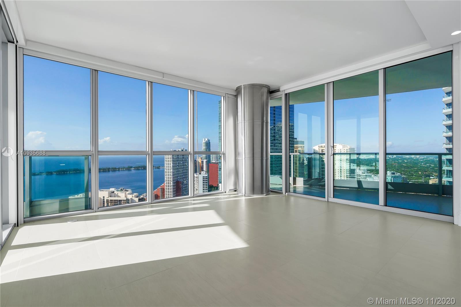 Breathtaking water views from this spacious home in the sky with private elevators! A must see! Featuring 4-bedrooms & 4.5 baths, this Southeast corner unit has unobstructed breathtaking direct water and city views. This home flows all the way from the east to the west of the building and provides you with 270 degree views. This light filled home features modern beige tile floors, gourmet/ Italian cabinetry with stainless steel SubZero refrigerator and Miele appliances. Three balconies with panoramic views. Two parking spots plus free valet services are also included. The amenities are first-class offering a Full Gym, Health Spa, Club Room, Roof-top Party Room, infinity edge waterfront pool, cabanas & jacuzzi. Vacant, easy to show!! Will not last! Now accepting Bitcoin.