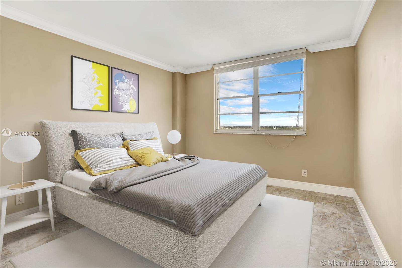 This stunning west facing 14th floor unit features incredible intracoastal and city views from every room and includes an outdoor terrace - a perfect spot to view breathtaking sunsets and the gorgeous city skyline. Located directly on the sand in a sought after building, this beautiful open concept residence features tile floors and crown molding throughout, an updated kitchen, a split floor plan and large walk-in closet. Interior storage space is extensive and there is an additional storage unit on the same floor. The building's 5-star amenities include 24 hour concierge, gym, valet parking, a theatre room and more. Pet-Friendly and favorable for rentals for a minimum 30 day stay up to two times per year. Maintenance Fee covers an abundance of amenities, including cable and internet.