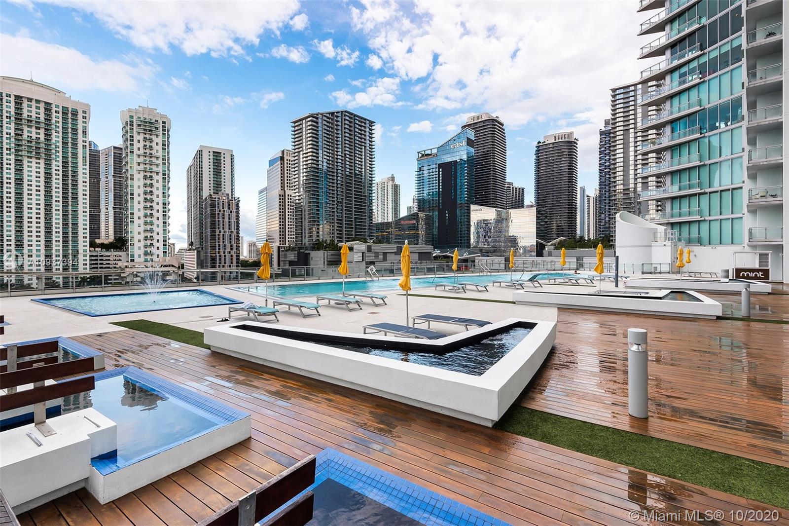 Tastefully finished 2/2 at the Mint Condominium! Walk-in to new floors and the best views Miami city living can offer. Enjoy the afternoons in the expansive balcony while watching the sunset and enjoying the colorful city views! This turn-key unit offers one of the best floor plans in the building. Walk-in to beautiful new floors, warm colors, and awesome details. Large kitchen with plenty of cabinet and countertop space. The large primary bedroom offers a walk-in closet and en-suite bathroom with dual sinks and shower. The guest bedroom offers direct access to the second bathroom. Custom made window treatments including blackouts in bedrooms. Located in the private, gated enclave of Riverfront! Walking distance to Brickell City Center!