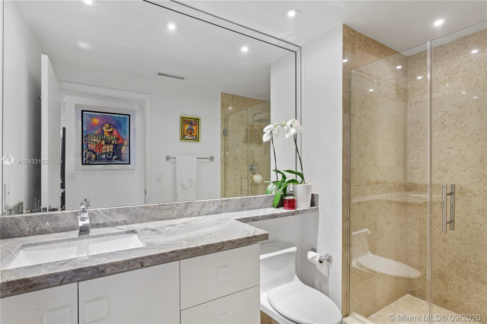 Completely renovated, no expense has been spared. This residence boasts an expansive floor plan. Large 2 bed/2ba plus a den. Fabulous master suite includes a spacious custom built walk-in closet and a large bath, outfitted with double sinks & glass large enclosed shower. Some other exquisite features include; floor-to-ceiling glass sliding doors; a large terrace with views of the ocean & bay; beautiful open kitchen with top of the line stainless steel appliances; electric blinds in all rooms; recessed lighting; surround sound, new AC & water heater. One assigned parking space. This unit is accompanied by five-star resort-style amenities, which include 24-hour security & valet, tennis court, large pool, gym, spa, poolside café & more.