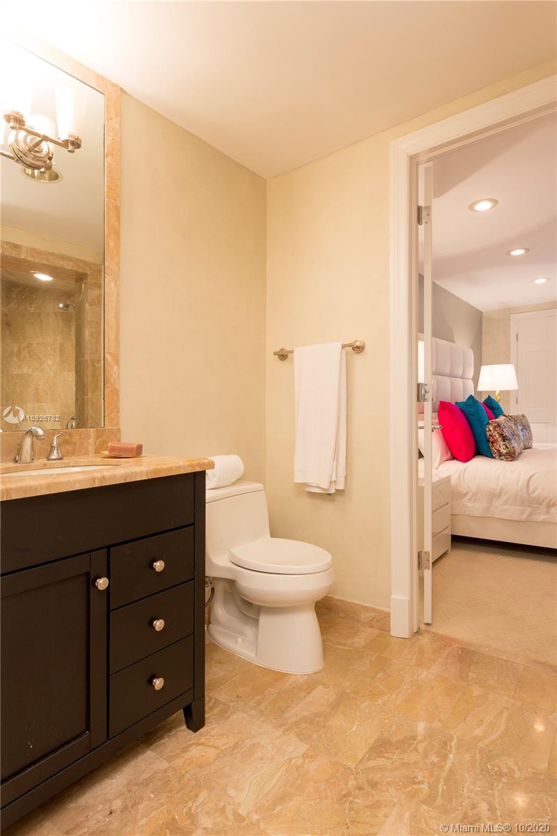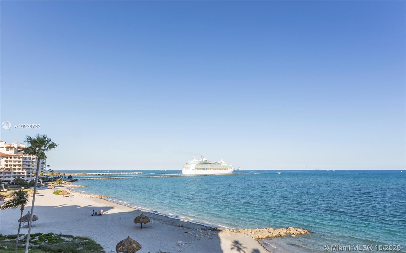 Oceanfront view and government cut, center stack entire 7th floor privacy to the fullest. Home features open floor plan, spacious living room with fire place, private office, master suite with gym/sauna and outdoor hot tub. Outdoor fitness area off the kitchen balcony. Open chef's kitchen with granite counter/ center island and high end appliances. Unit has marble floors, surround sound system, multiple private balconies, three parking space and golf cart parking. Residence sold unfurnished with option to buy furnished.