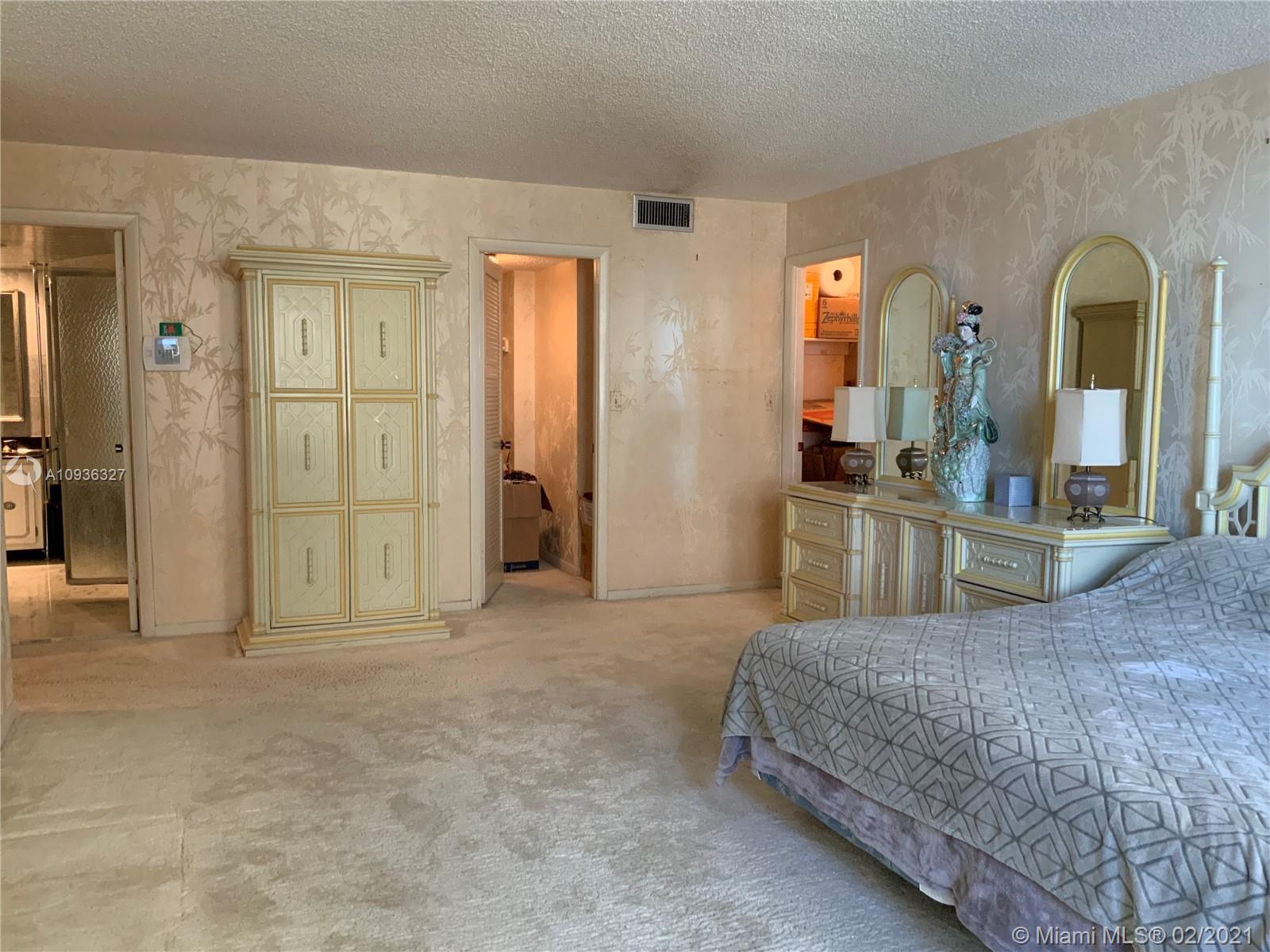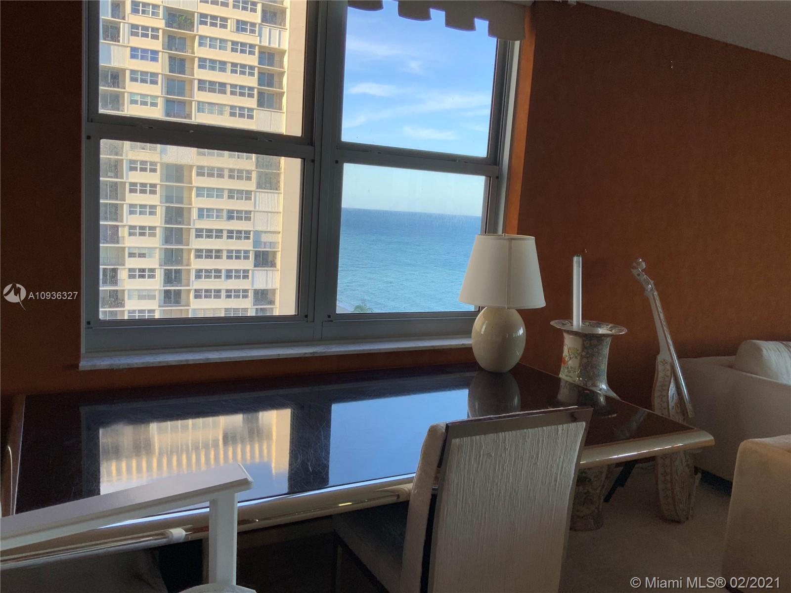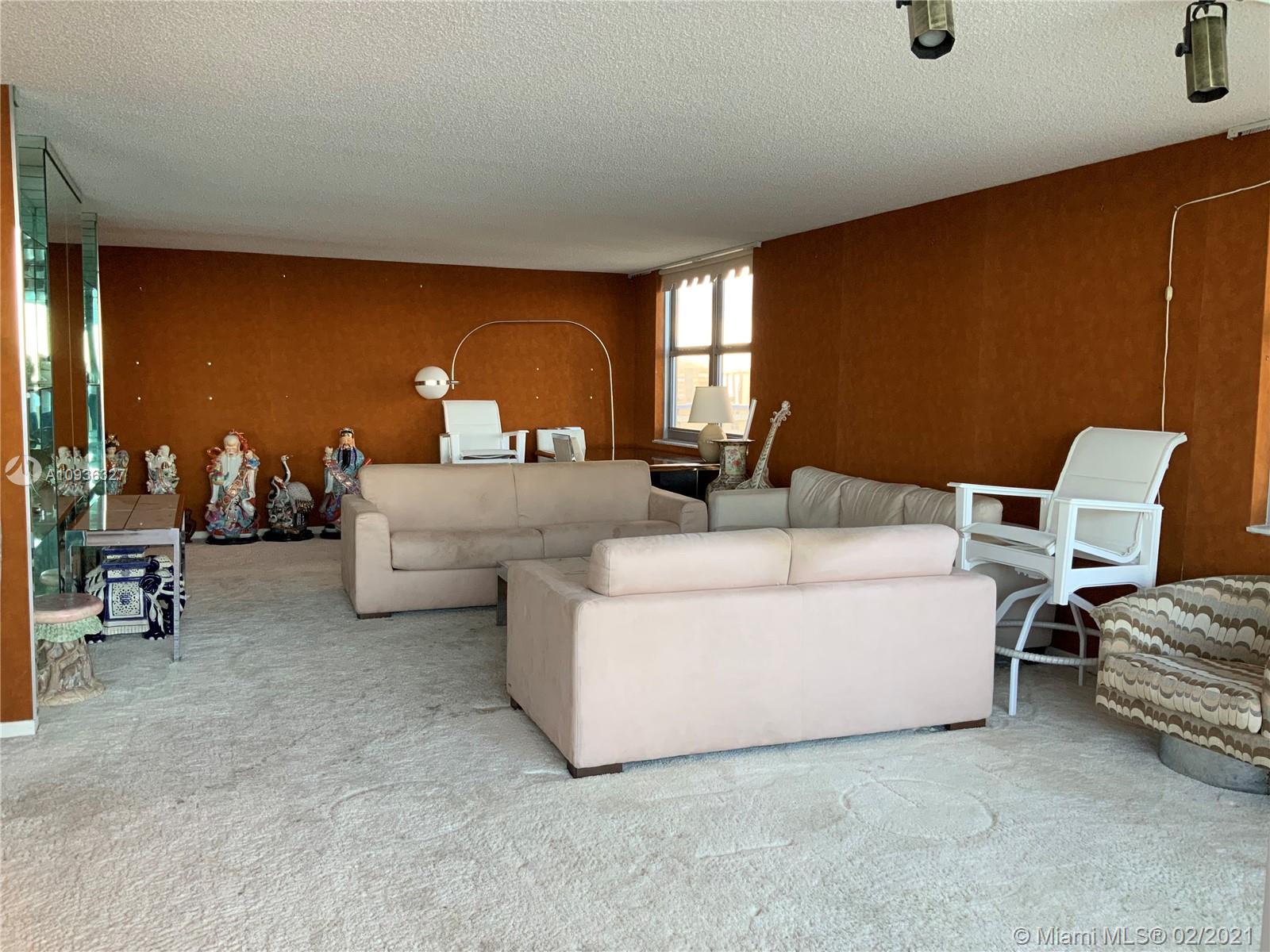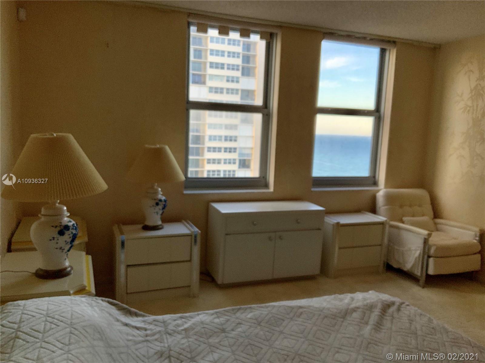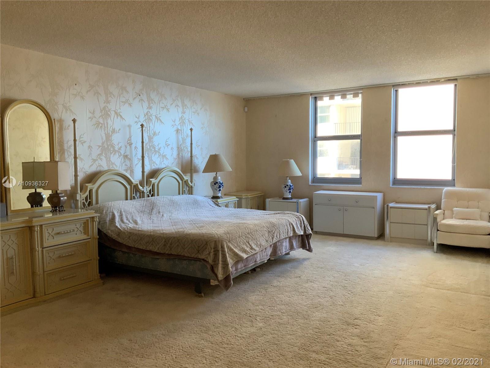Amazing Direct Ocean views. Large 2 bed room and 2 full bathrooms apartment. North East Corner unit almost 2,000 sq ft. Ocean views from all rooms. Only 4 Apartments per floor. Each bed room has 2 walking closets. Laundry machines inside apartment. Huge corner wrap around balcony. New High Impact Hurricane windows. Amenities include: cable TV and HBO, Beach service, Large Heated swimming pool with Jacuzzi and Cabanas, BBQ Grills, GYM, Tennis court, Party room with kitchen, 24 hours Security, Reception and Complementary Valet Services. Walking distance to stores. Apartment needs complete Remodeling and has lots of potentials for Interior Design. With open kitchen remodeling would have Direct Ocean view. Covered parking. Apartment is vacant and easy to show ask Listing Agent for showing.