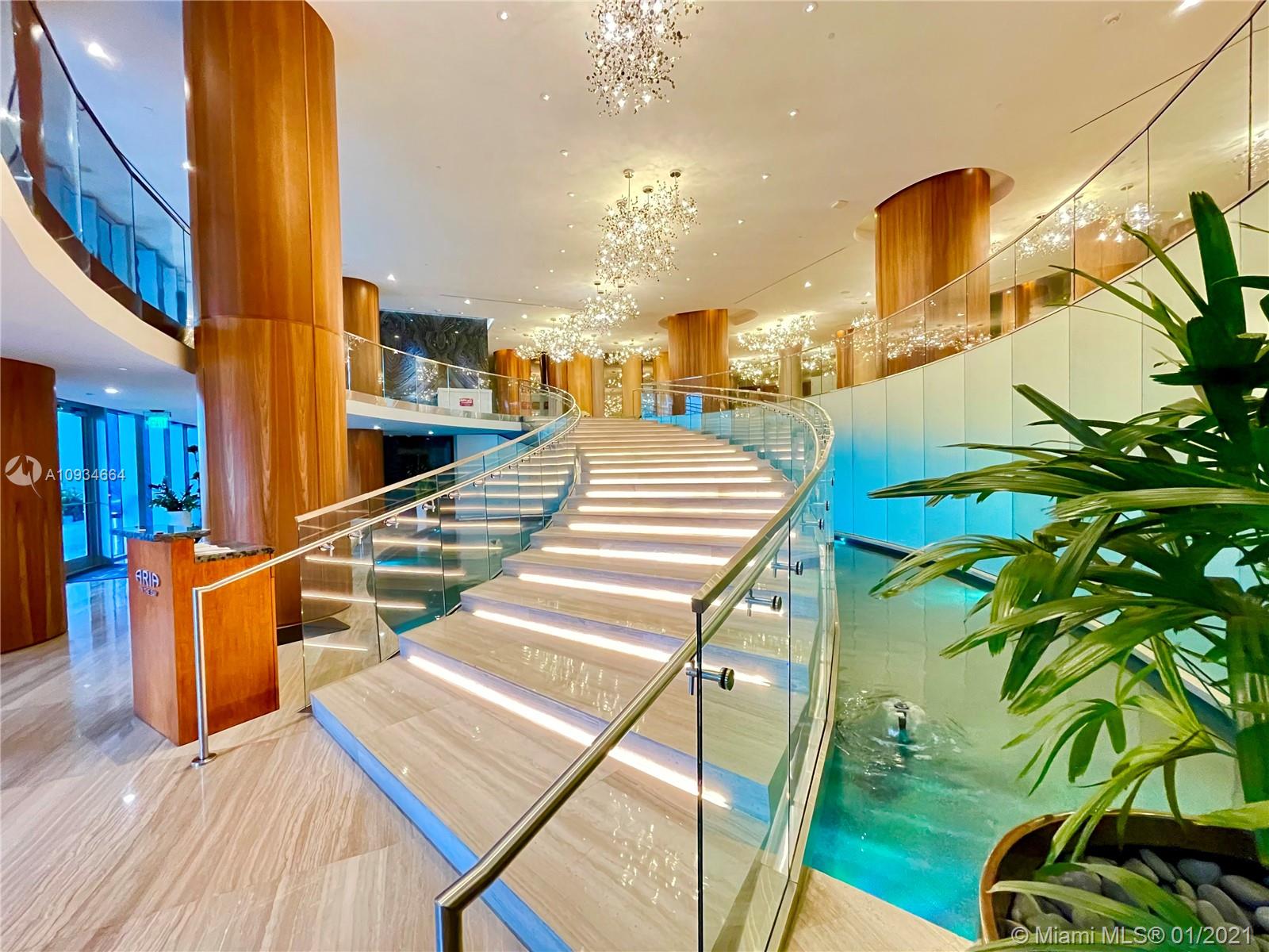 This is the best priced unit in the building. FULLY UPGRADED with OCEAN, INTERCOASTAL, & CITY VIEWS, DUAL HIS & HERS VANITIES, BUILT OUT CALIFORNIA CLOSETS, INSTALLED BLACKOUT SHADES, CARRERA PORCELAIN FLOORS INTERIOR AND EXTERIOR. The unit is in pristine condition. CABLE & INTERNET included in the HOA. 3 FLOORS OF OUTSTANDING AMENITIES, 3 CURVED SUNRISE & SUNSET POOLS + CHILDRENS POOL, HOT TUB, INDOR / OUTDOOR SOCIAL ROOM, GYM & YOGA STUDIO, BBQ AREA, SUMMER KITCHEN, SPA, GAME ROOM & LIBRARY, THEATRE, TEEN LOUNGE& KIDS PLAYROOM, BUSINESS CENTER.