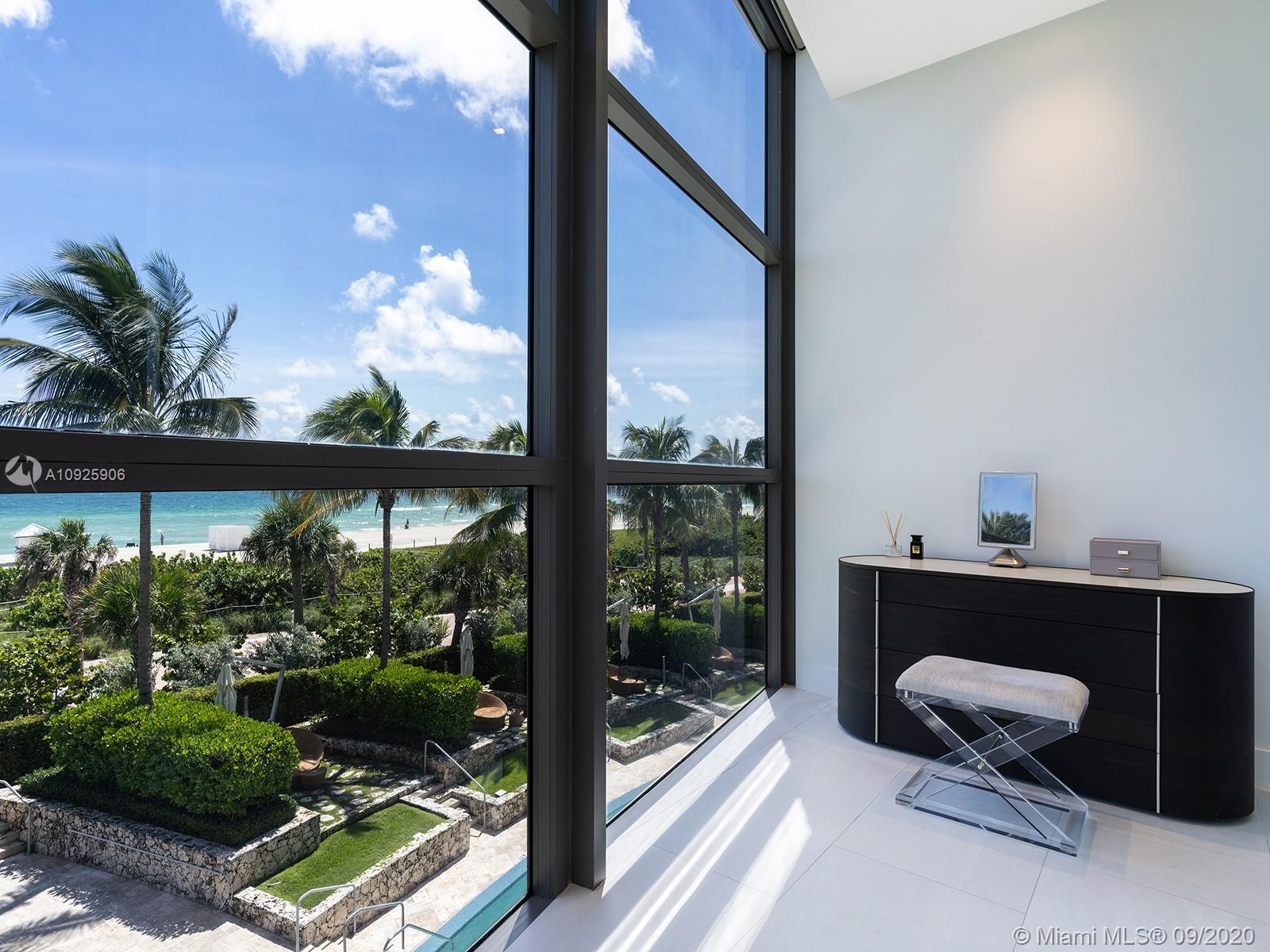 This truly one-of-a-kind oceanfront residence at the Mei Miami Beach was created out of two units in the pre-construction phase, allowing it to span the full width of the building and take advantage of dramatic ocean views from every room. Unit 401/402 comes with two rooftop spaces for spectacular outdoor entertaining, and is the only unit in the building with a private elevator entry. Within the residence are master and junior master suites, each with a private terrace. Completely updated within the last two years, the home comes with 10.5 Ft. ceilings and a chef’s kitchen outfitted with Wolf and Subzero appliances and Italkraft cabinetry. The Asian-inspired building has a serviced beach and freshly renovated public areas, including an expansive pool deck, tea lounge, and Asian spa.