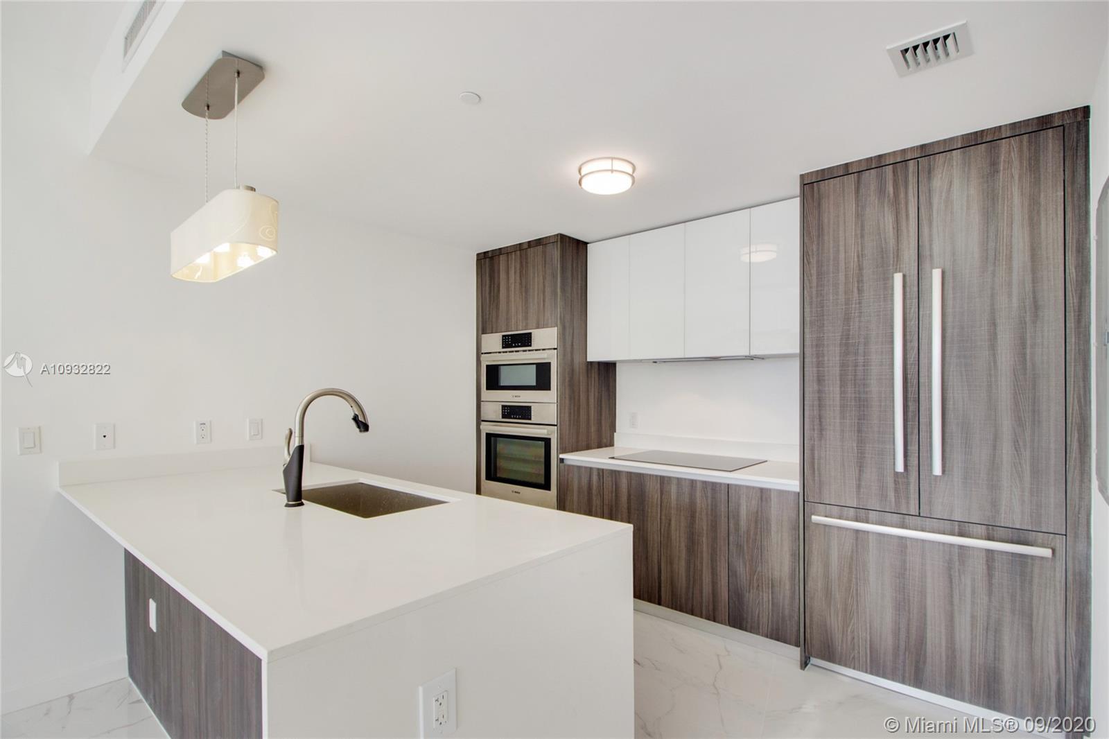 Rarely available direct bay-facing convertible 3 bedroom 3.5 bath in line -08 features upgrades such as Calacatta porcelain flooring, white kitchen cabinets, Quartz counters and stainless steel appliances, a standalone Roman bath tub in master bathroom, an oversized deep balcony patio with views of lush tropical landscape and Biscayne Bay. This luxury waterfront building in front of the Margaret Pace Park has five-star resort amenities, which include sunrise and sunset heated pools, hot tub overlooking Biscayne Bay, BBQ, spa, sauna, steam room, resident's lounge with a private party room, business center, fitness center, yoga and pilates studio, movie theater, kids playroom, on-site cafe & bakery, and more.