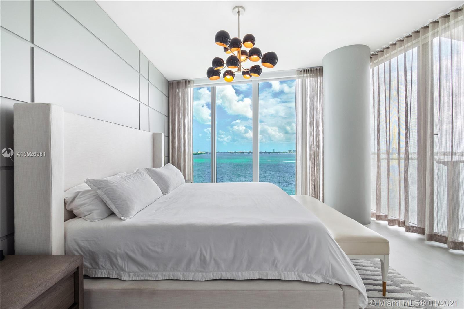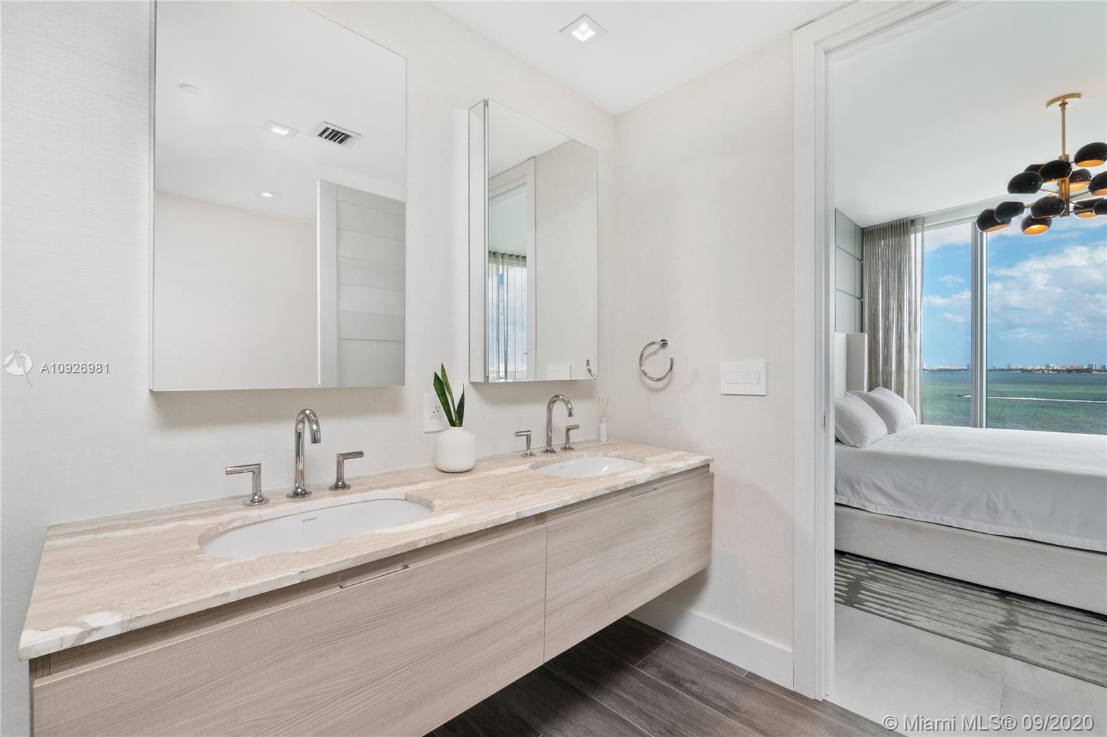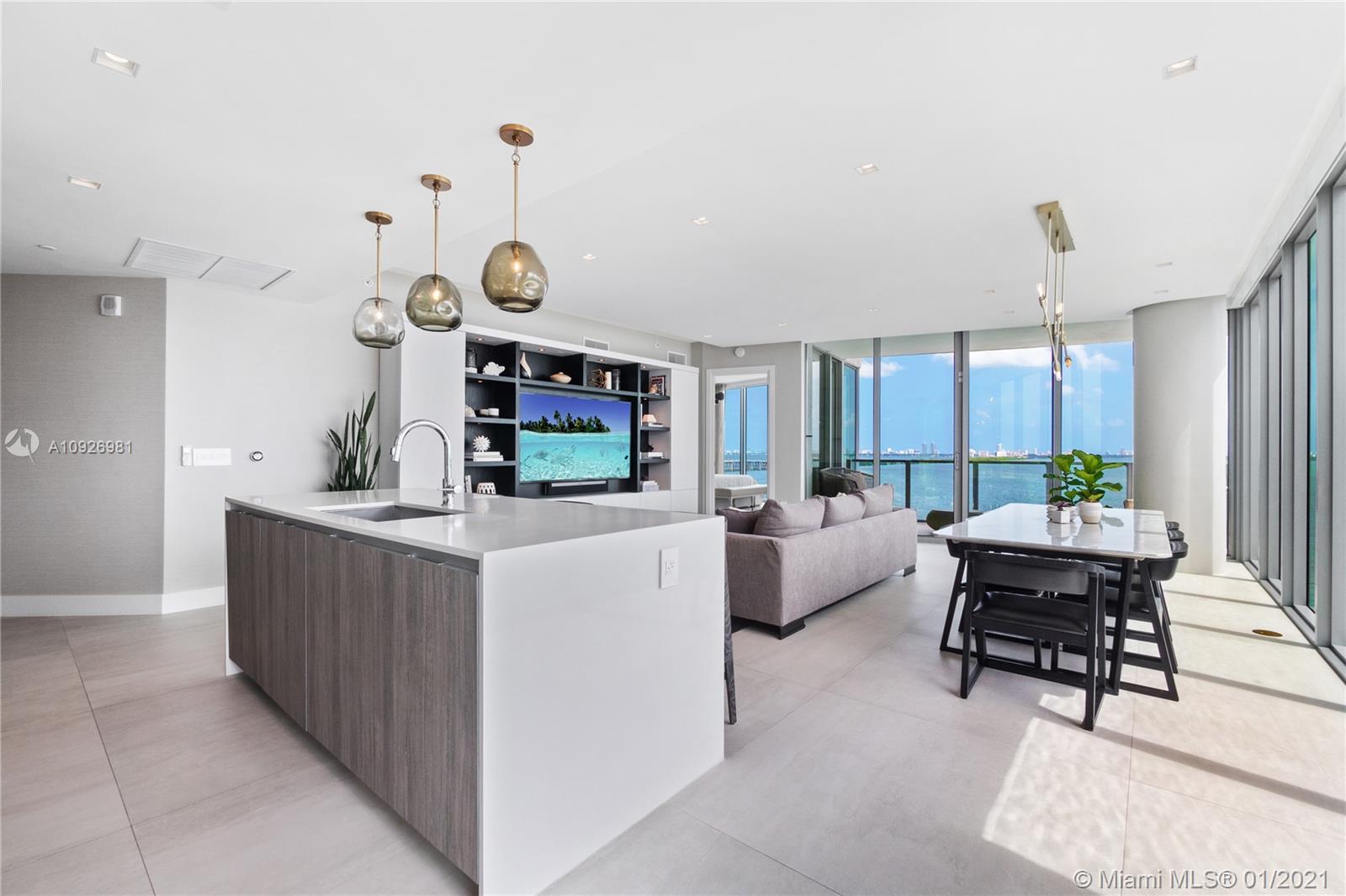 Magnificent 3bed+den/4bath corner unit with a spacious floor plan. Large terrace that offers stunning sunrise views of Biscayne Bay and City skyline views to the South. Unit is upgraded with Legrand switches, remote WiFi lighting, and electric blackout shades and much more in this smart home. Additional upgrades include a dropped ceiling with custom lighting, custom Italian wood doors, open kitchen with high-end appliances, and private elevator foyer entry. Includes 2 parking spaces and a storage unit. Biscayne Beach has 5-star amenities such as resort style pools, residence dog park, tennis/basketball courts, sauna and gym and more. Located in the heart of all that is trending in Miami within 5-10 minute drive to Design District, Wynwood, Downtown, Brickell and South Beach.