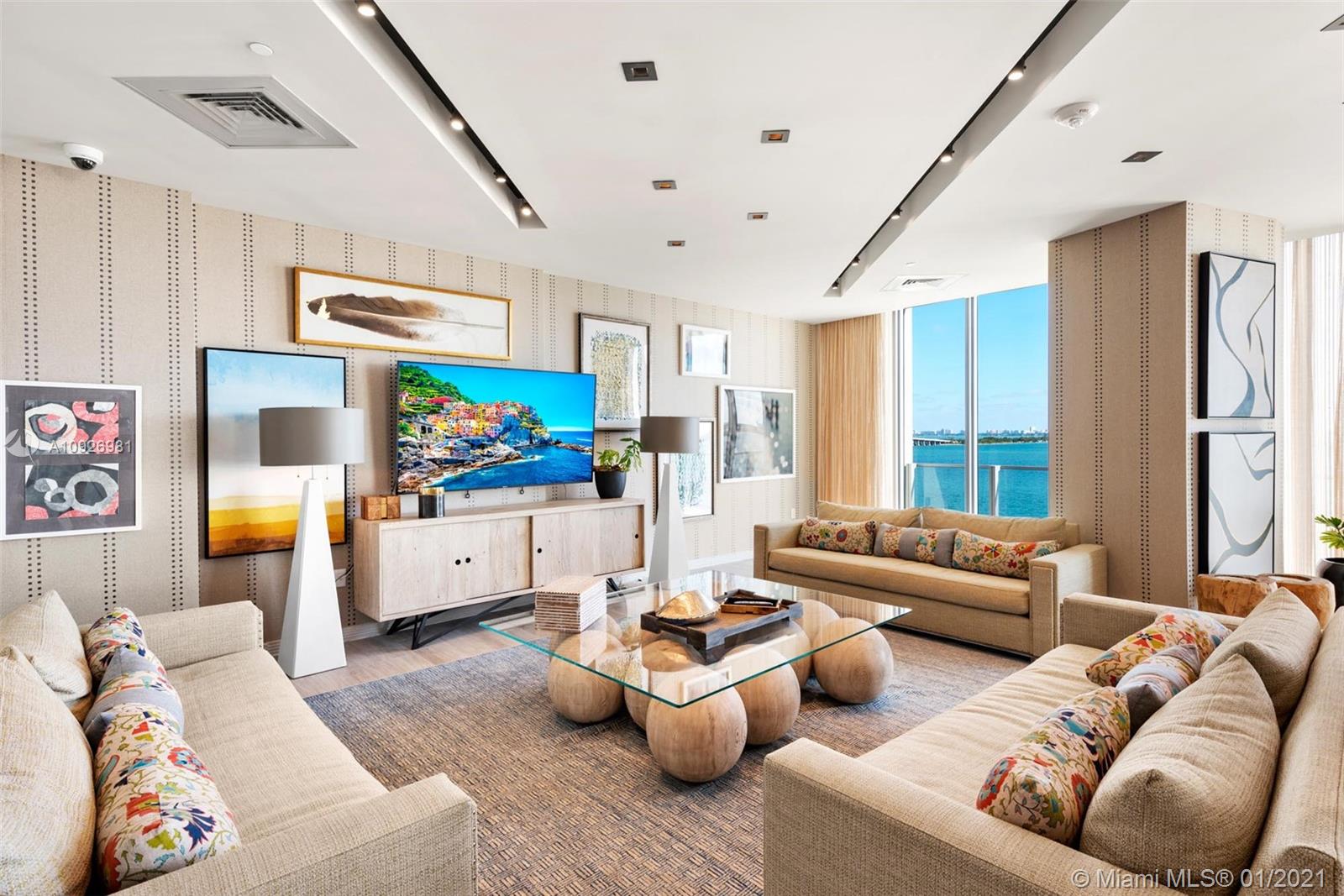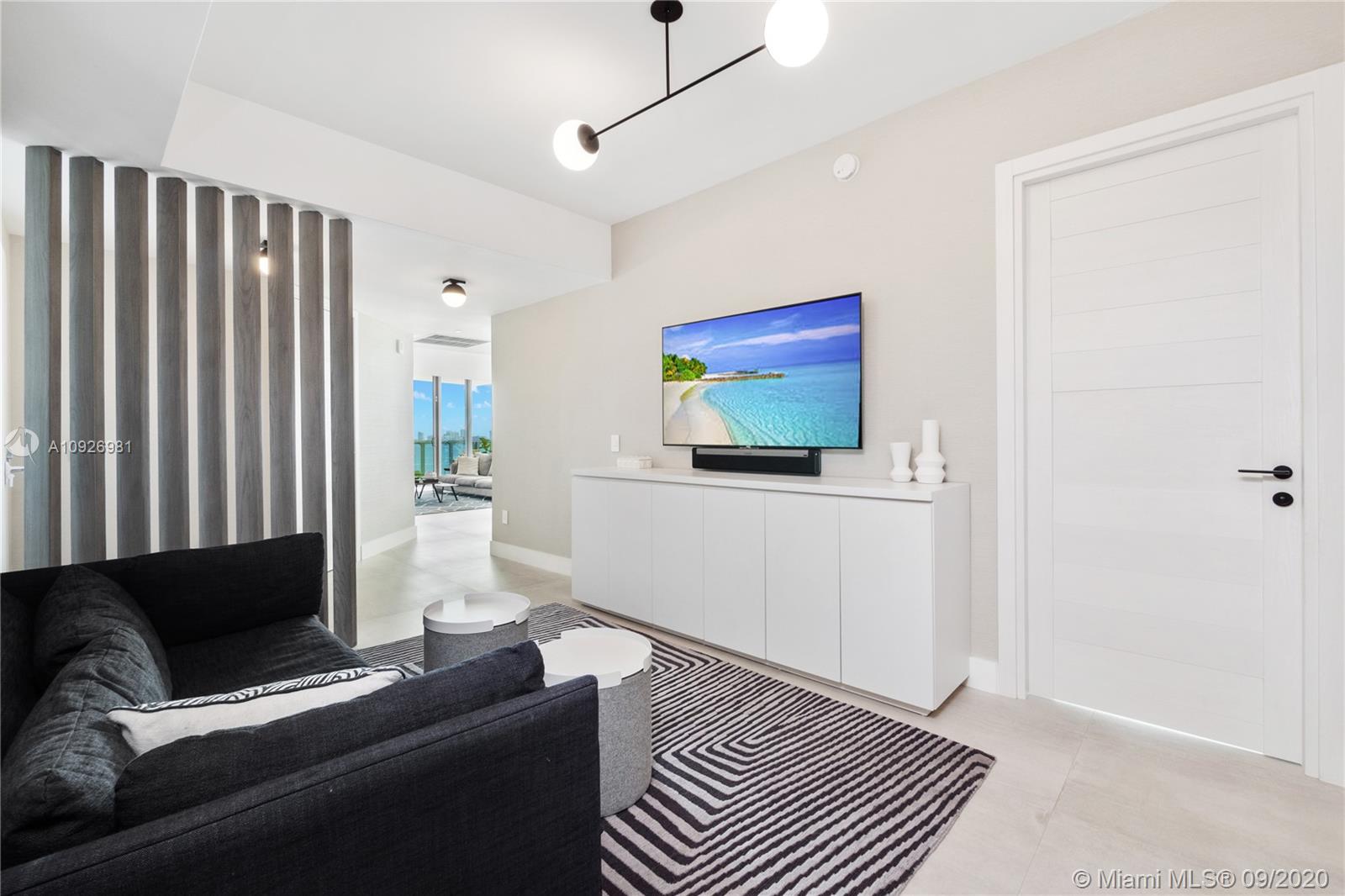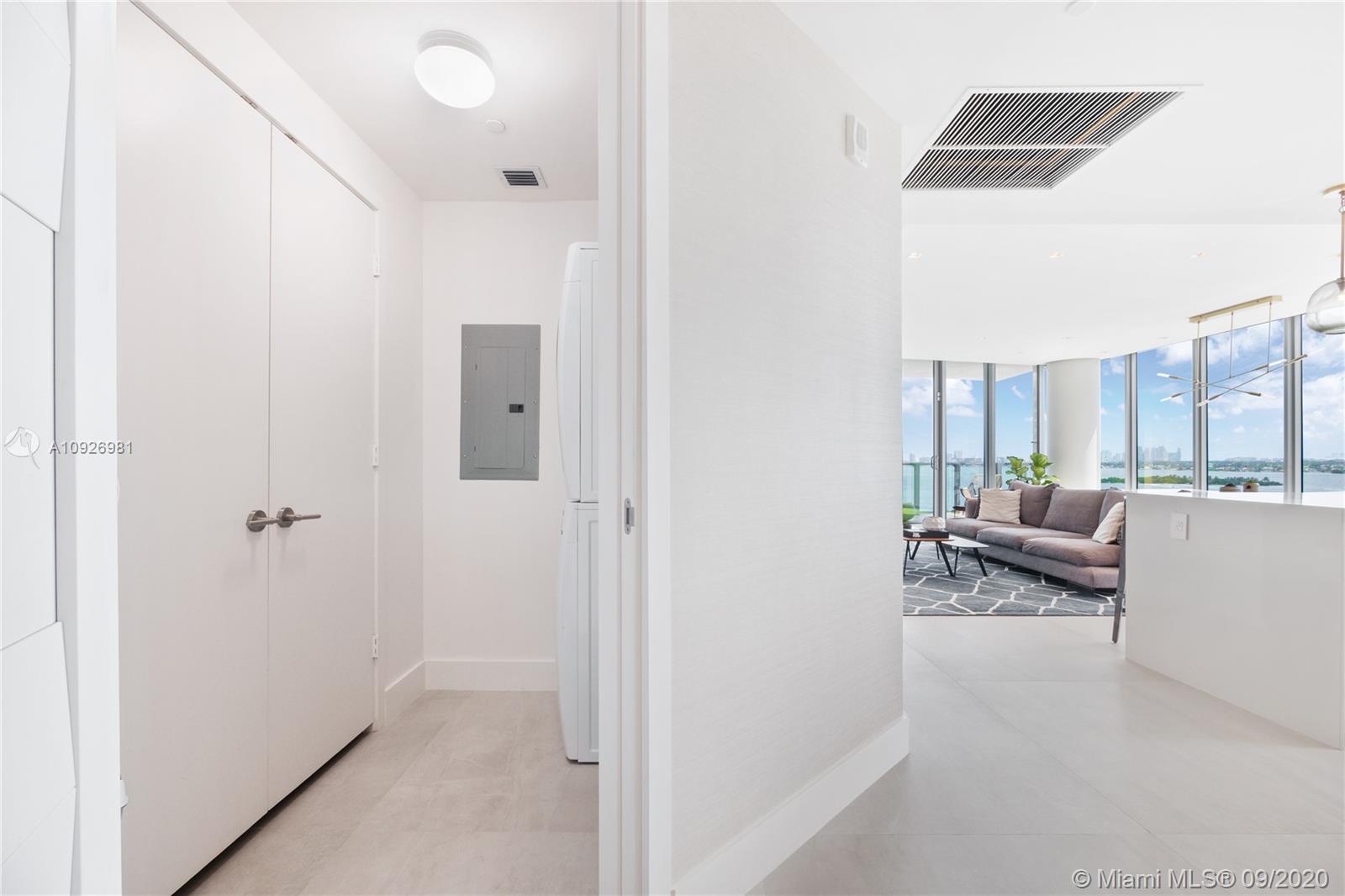 Magnificent 3bed+den/4bath corner unit with a spacious floor plan. Large terrace that offers stunning sunrise views of Biscayne Bay and City skyline views to the South. Unit is upgraded with Legrand switches, remote WiFi lighting, and electric blackout shades and much more in this smart home. Additional upgrades include a dropped ceiling with custom lighting, custom Italian wood doors, open kitchen with high-end appliances, and private elevator foyer entry. Includes 2 parking spaces and a storage unit. Biscayne Beach has 5-star amenities such as resort style pools, residence dog park, tennis/basketball courts, sauna and gym and more. Located in the heart of all that is trending in Miami within 5-10 minute drive to Design District, Wynwood, Downtown, Brickell and South Beach.