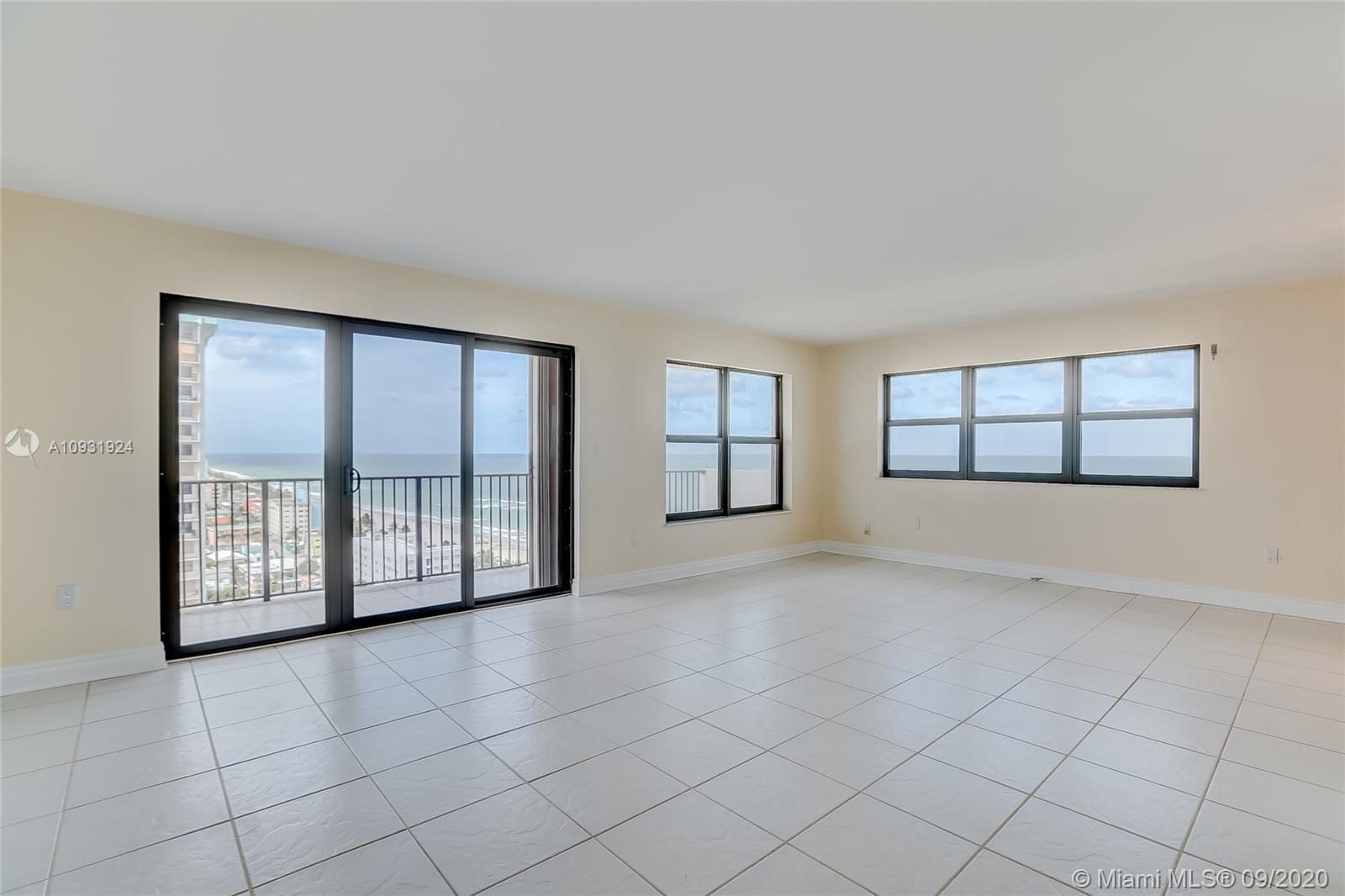 UNOBSTRUCTED OCEAN VIEWS FOR MILES! Rarely available, Summit NE Corner w/ amazing ocean, Intracoastal & pool views & a cool, breezy exposure! Almost 2,000 sq ft w/ 3 spacious bedrooms, impact windows, washer/dryer in unit & updated eat-in kitchen w/ wood cabinets, Jenn Air paneled fridge & granite counters. Master bedroom w/ built-in wall unit. White tile flooring in main areas & bedrooms & marble in the bathrooms. Extremely well run oceanfront beach condo building w/ 2 heated pools, 2 tennis courts, gym, cafe, socials & top security. Steps from the famous Hollywood Broadwalk, over 2 miles for biking, walking, music dining & shopping! Short drive to FLL/Hollywood International Airport, Miami, Gulfstream, Aventura Mall & Ft. Lauderdale! One deeded garage parking spot & extra storage.