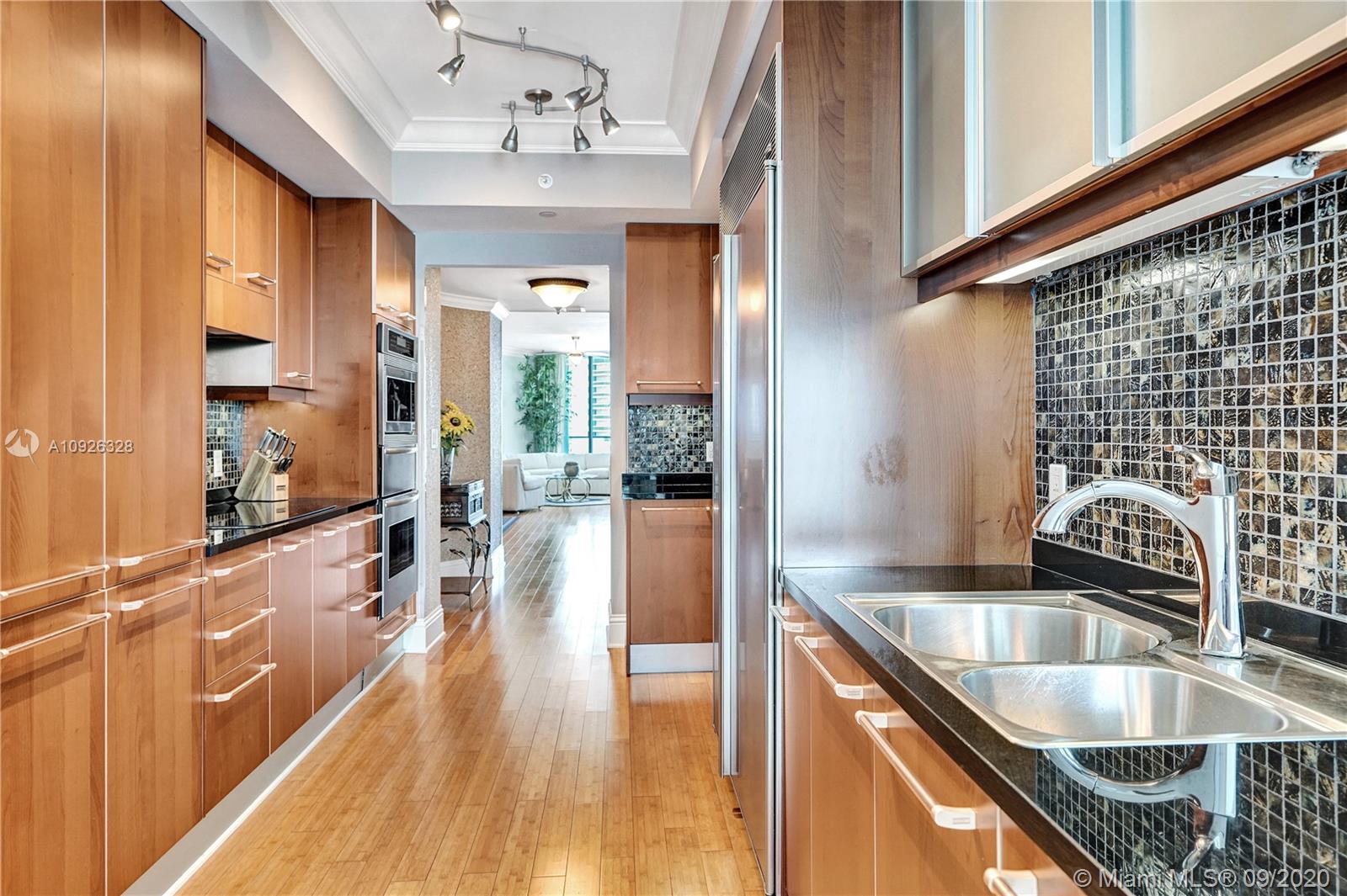 Incredible opportunity to own a luxurious villa in the sky on high 19th floor. Step off a private elevator through double doors into this large flow-thru condo with oversized North and South balconies. Panoramic ocean and Intracoastal views from every room through floor-to-ceiling glass. Beautifully finished with bamboo floors, granite counters, Italian cabinetry, high-end appliances, Jacuzzi tub, frameless glass shower and built-in closets. Two parking spaces by elevator. Unique modification to floor plan creates open den. Ocean Palms is a majestic and modern tower located on 240 feet of beautiful Hollywood Beach. The five-star amenities include a two-story fitness center, spa with sauna and massage rooms, media room, party room, billiard room, ocean-side pool, hot tub, and tennis courts.