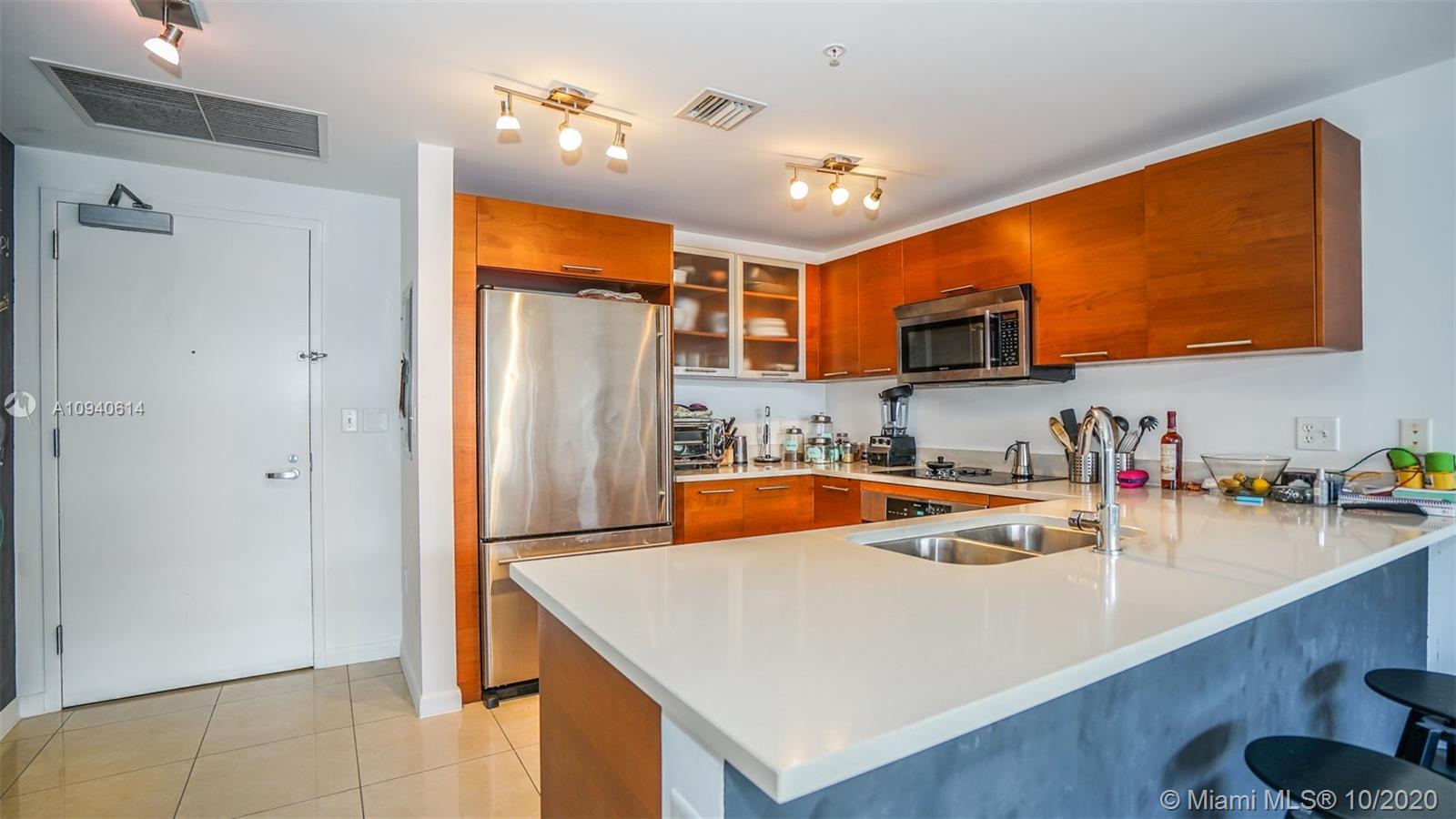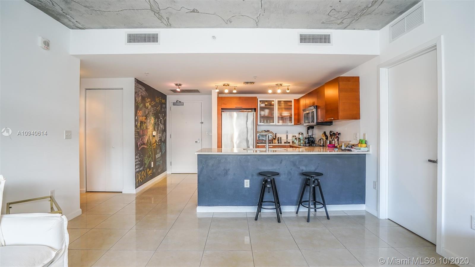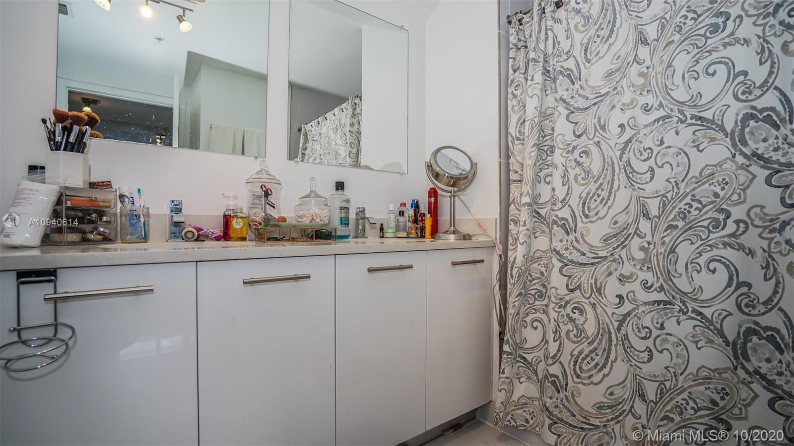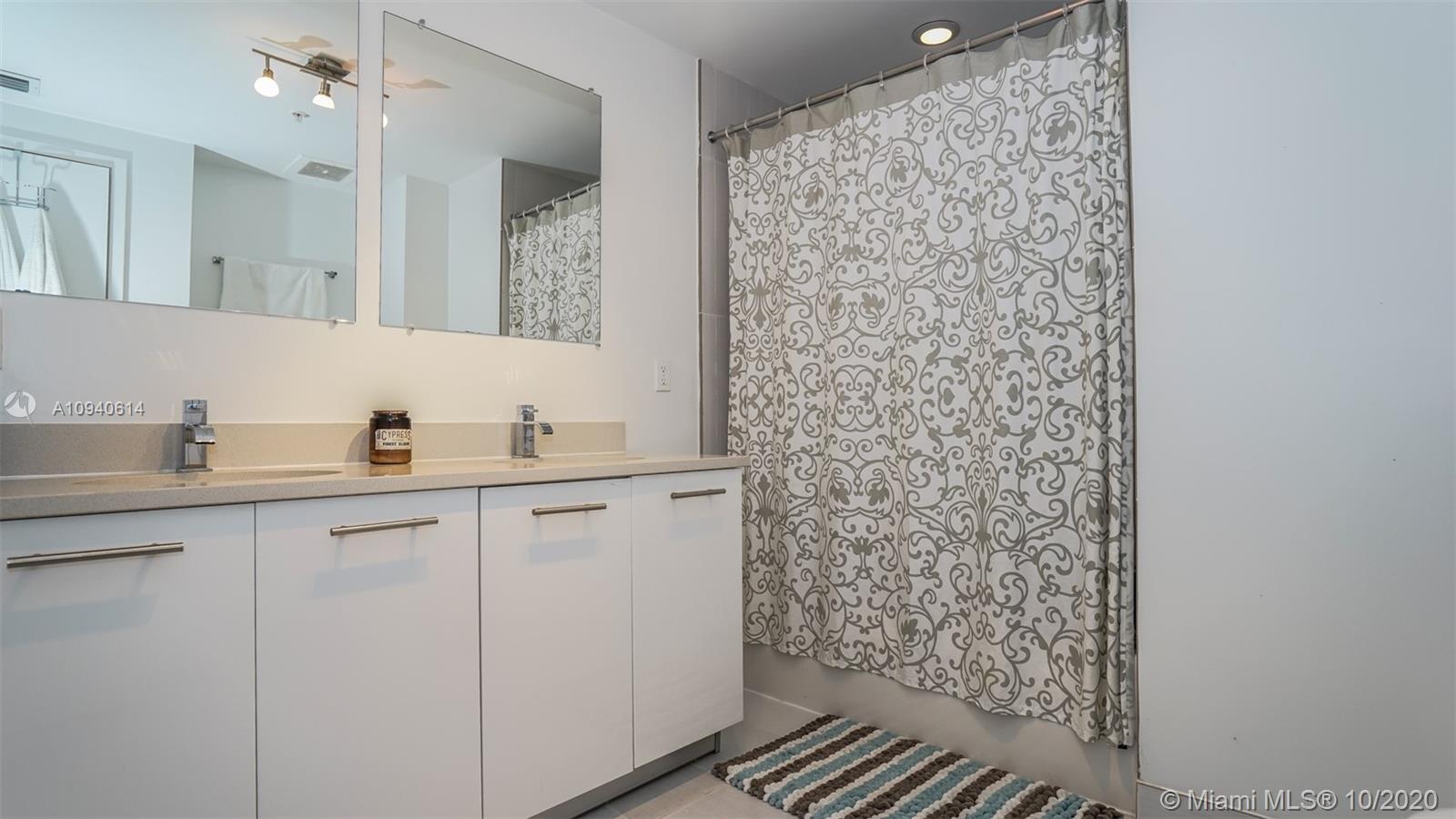 Spacious 2/2 in the heart of Midtown at Midblock. Open and modern floorplan, with 9ft. exposed concrete ceiling. Kitchen with custom cabinetry, stone countertop and Jenn-Air stainless steel appliances. En-suite bathroom in the master bedroom, with quartz counter and double sink. Second bathroom with stone counter and double sink too. Full size washer and dryer. Generous closets in both bedrooms. Pet friendly building. Restaurants, supermarkets, stores, all within walking distance.