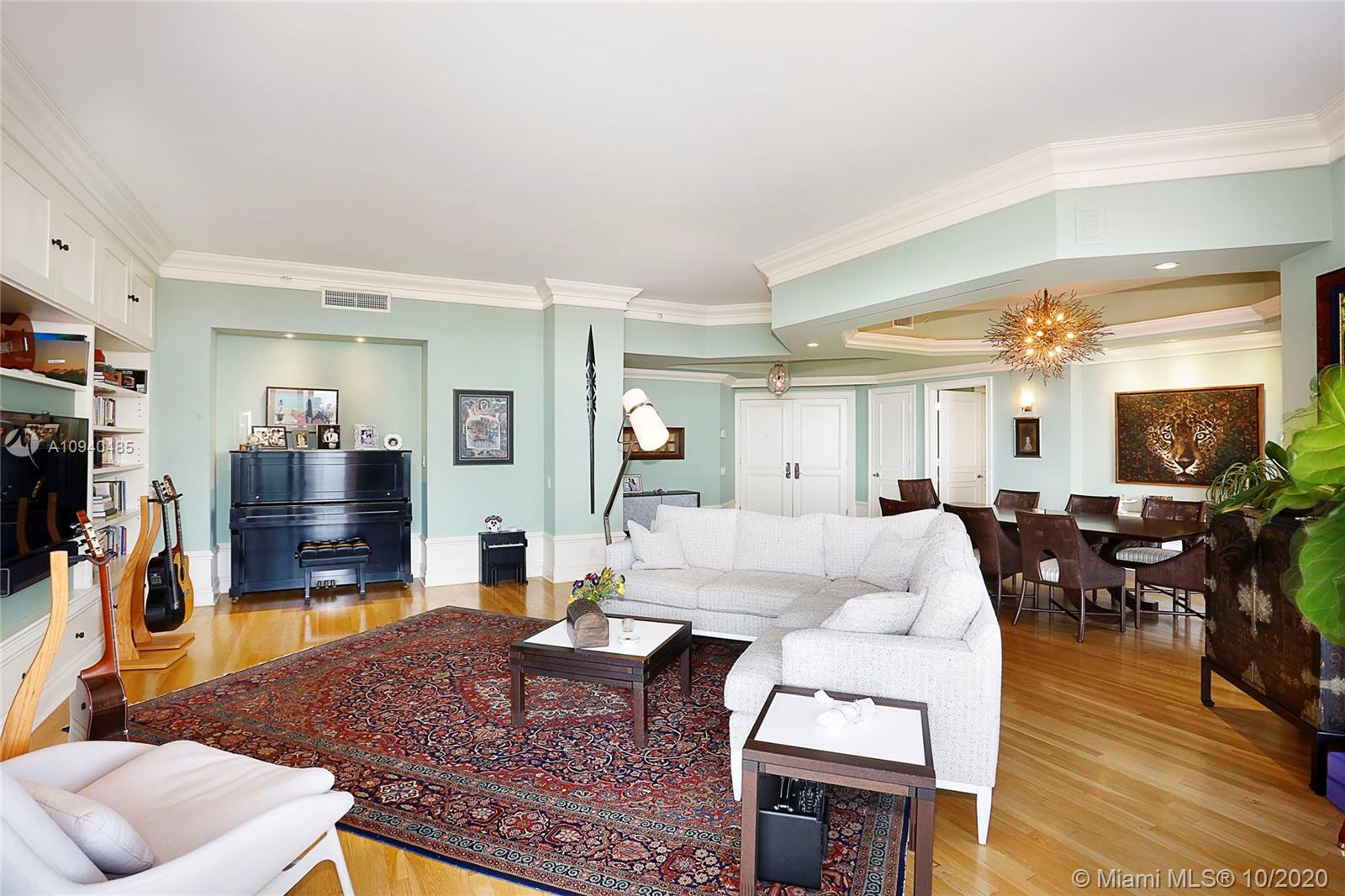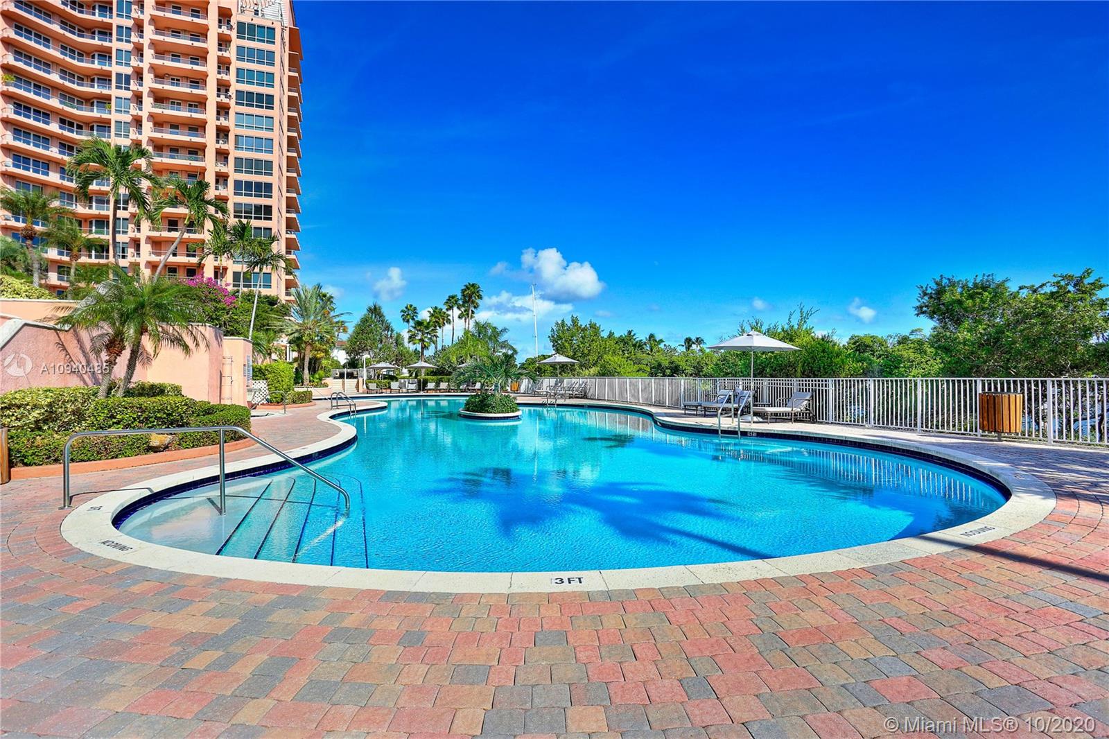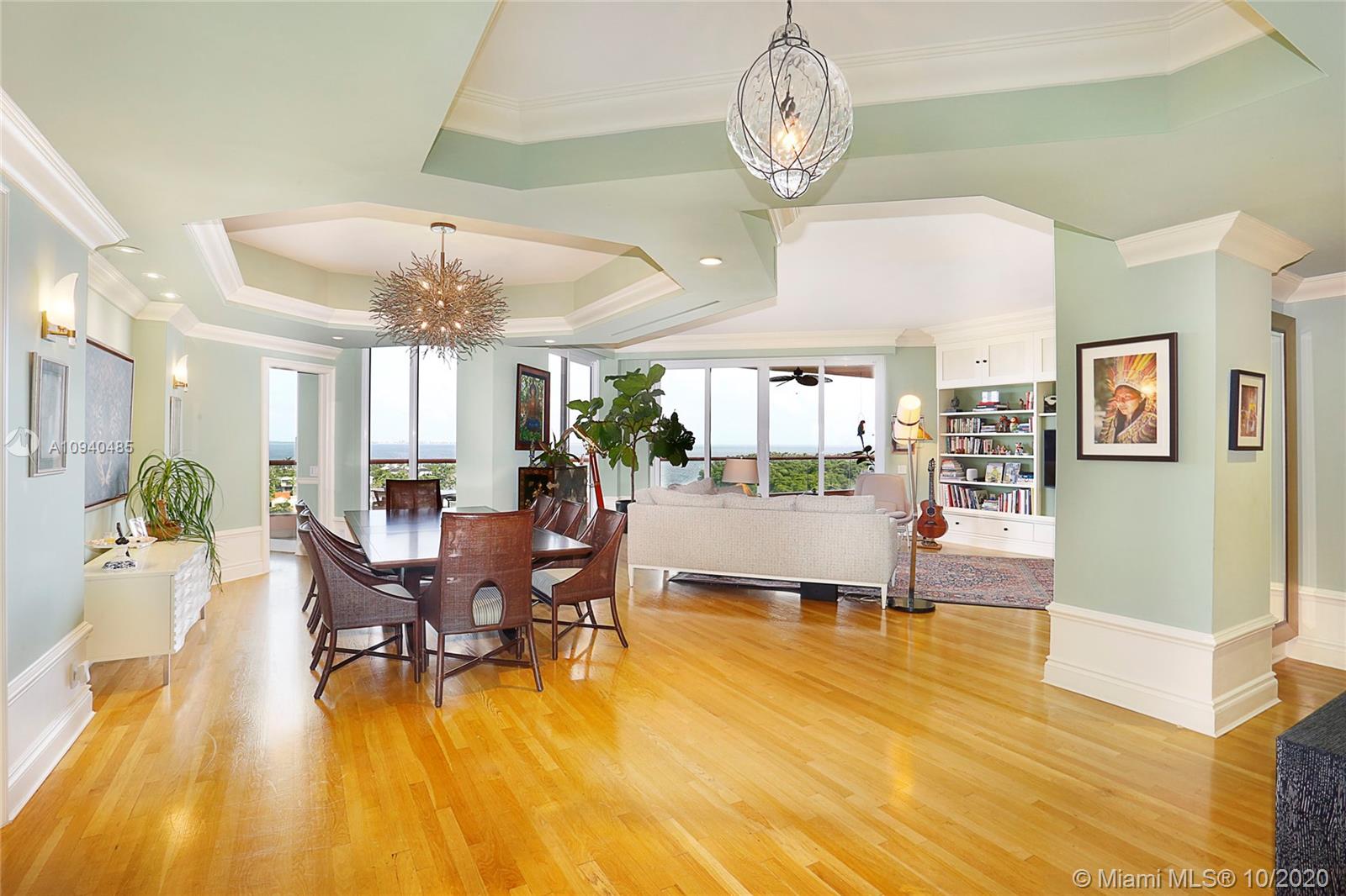 The Gables Club is the epitome of sophisticated condo living & this wonderful 3 BR/4 BA unit is no exception! A private elevator whisks you to the 10th flr foyer entrance that leads to open liv & din areas & deep balcony w/sweeping views of the Bay, Downtown, & Gables Waterway. The clean, white kitchen boasts breakfast area, island, glass-front cabinets, abundant workspace & storage. The master suite is a respite from it all & includes 2 private BAs w/ elegant finishes, dressing area, 2 large walk-in closets, & balcony access. 2 remaining bedrooms also step out to the balcony to enjoy the gorgeous views! Laundry rm, 2 assigned parking spaces, sailboat slip, impact windows & doors, & amenities like tennis cts, exercise rm, putting green, heated pool, valet, guard gate, & more!