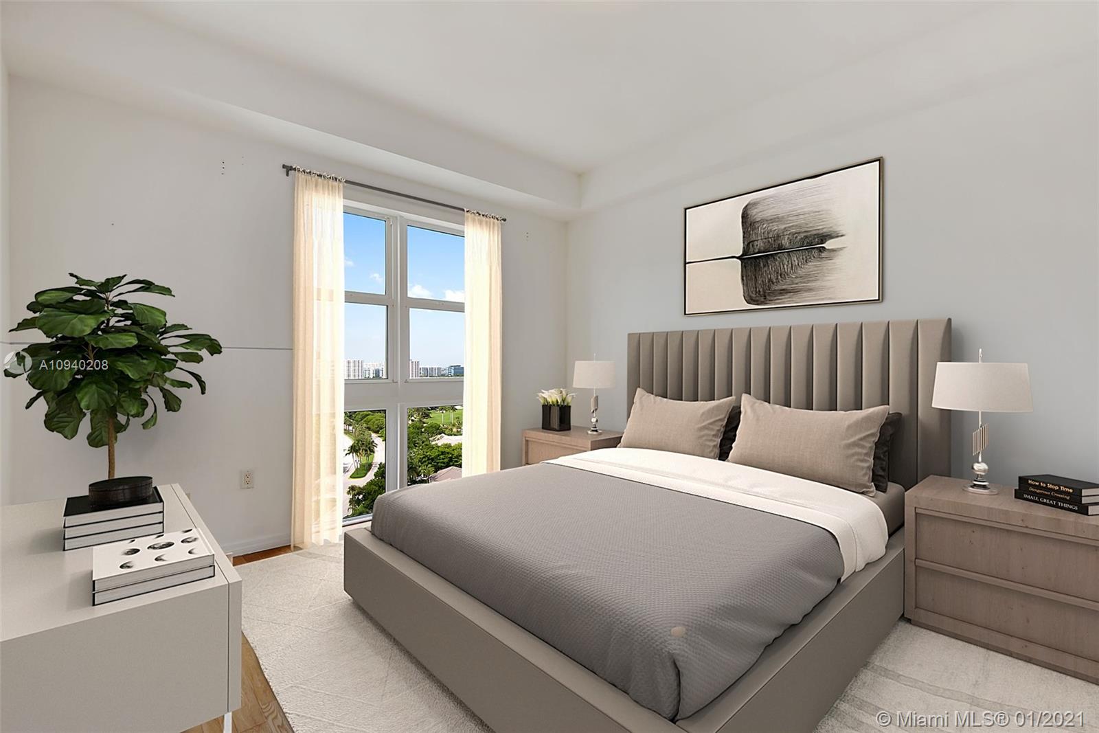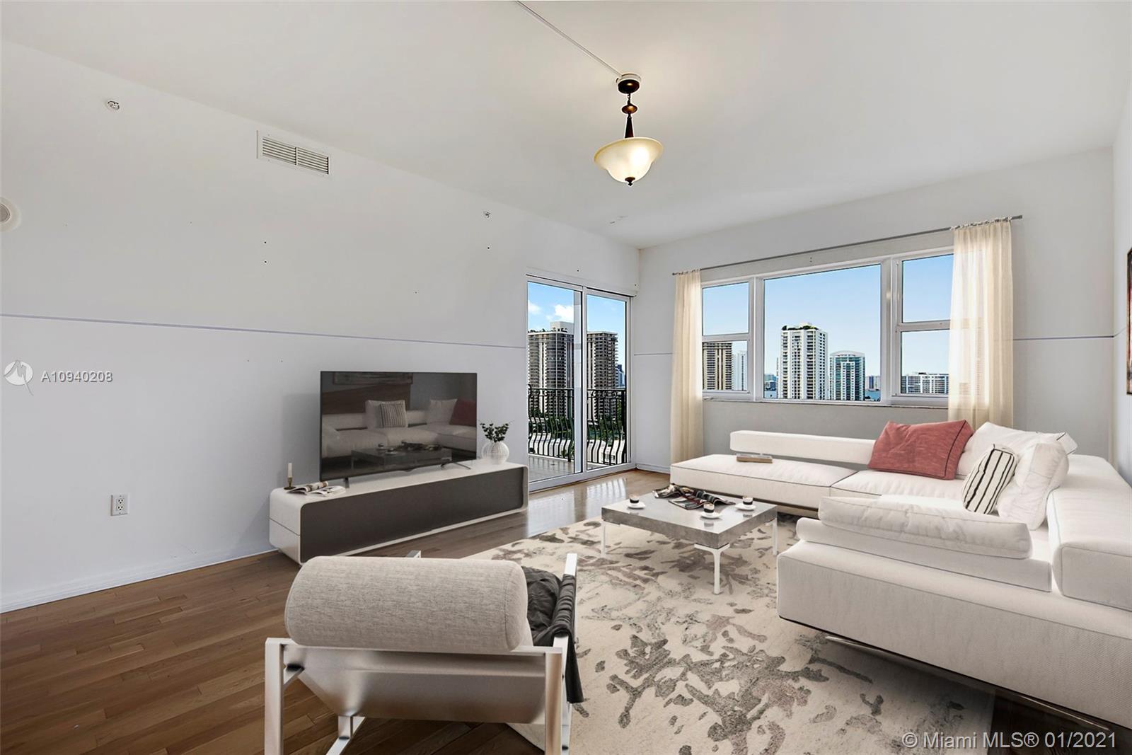 Best deal in the highly coveted Turnberry Village!! Absolutely stunning TOP FLOOR 2-bed, 2-bath unit. Enjoy incredible city and water views from your private balcony perched high on the 14th floor. Plenty of natural light throughout with an open concept living room and kitchen. Fantastic high amenity/full-service building for true resort style living. Unbeatable location close to shopping, dining, entertainment, and the beach. This is a must see. Schedule a showing today! Virtually staged.