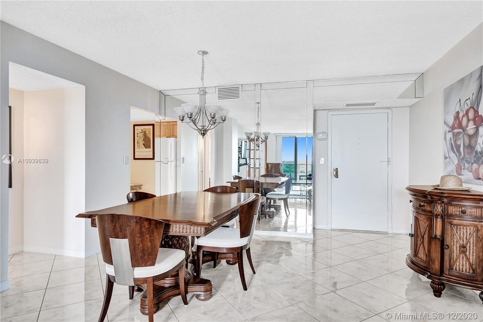 Nicely updated 2/2 with beautiful Intracoastal View in well maintained Hallmark of Hollywood Condo. View of Intracoastal from both Bedrooms, living room and Dining room areas. Master bedroom has nice size walk in closet and tiled floors throughout the unit. French Doors lead you to the guest bedroom and hallway to guest bath. Undercabinet & recess lighting in kitchen. Unit is offered Turnkey for convenience or can remove if desired. All hurricane impact Glass throughout and Building special assessment paid.