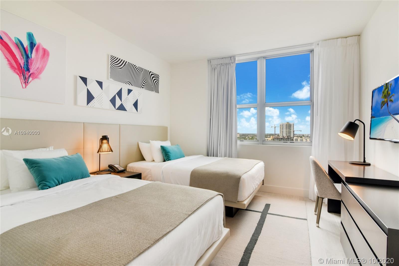 Turnkey unit with a new concept of condo-hotel. Fully furnished 2 Bedroom 2 Bath, 1,180 sq ft corner unit with large terrace with 395 sq ft overlooking the inter-coastal canal and ocean. Just steps from the pristine Atlantic Ocean beaches. Exclusive resort-style amenities include an oceanfront Beach Club, an expansive pool deck with breathtaking water views and semi-private cabanas, relaxing spa, Aqua Club with an infinity-edge pool, 24/7 personal concierge services and an owners-only private rooftop lounge. Hyde Beach House residents also enjoy a private outdoor movie theater and a Sports Club with indoor multi-use court for basketball, volleyball, and racquetball. No restriction for short term rentals. .Ideal for investors.