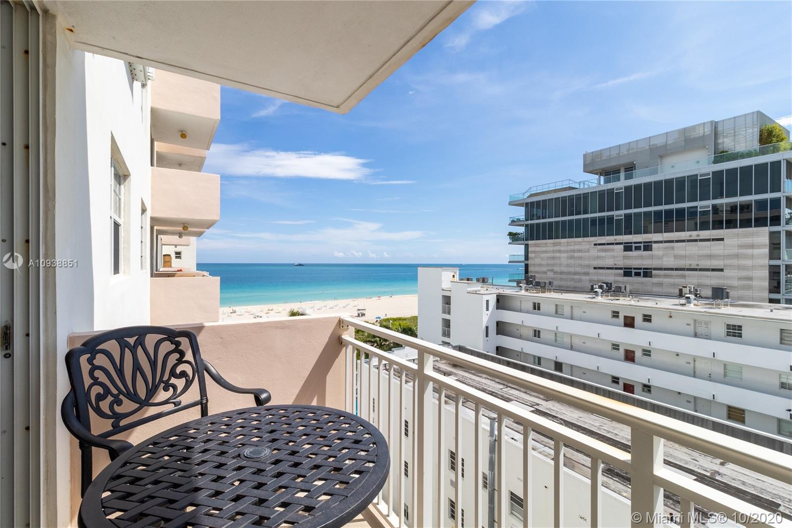 Ocean view from every room of this exquisitely renovated 1 bedroom 1 bathroom stunning condo with balcony and parking in oceanfront South of Fifth Street location. Highest quality and design with all furnishings included- your perfect beach home: Beautiful open kitchen with stainless steel appliances including flat-top range, dishwasher and french door refrigerator, porcelain countertops with stone accents, oversized bathroom with quartz countertop and seamless glass shower, impact windows, and more. Designer finishes top to bottom from the porcelain floors from Spain throughout, to the crystal bedside lamps and custom linen window sheers- gorgeous. All in the best south beach location on the ocean with pool, parking and low monthly fees. Perfect home or investment.