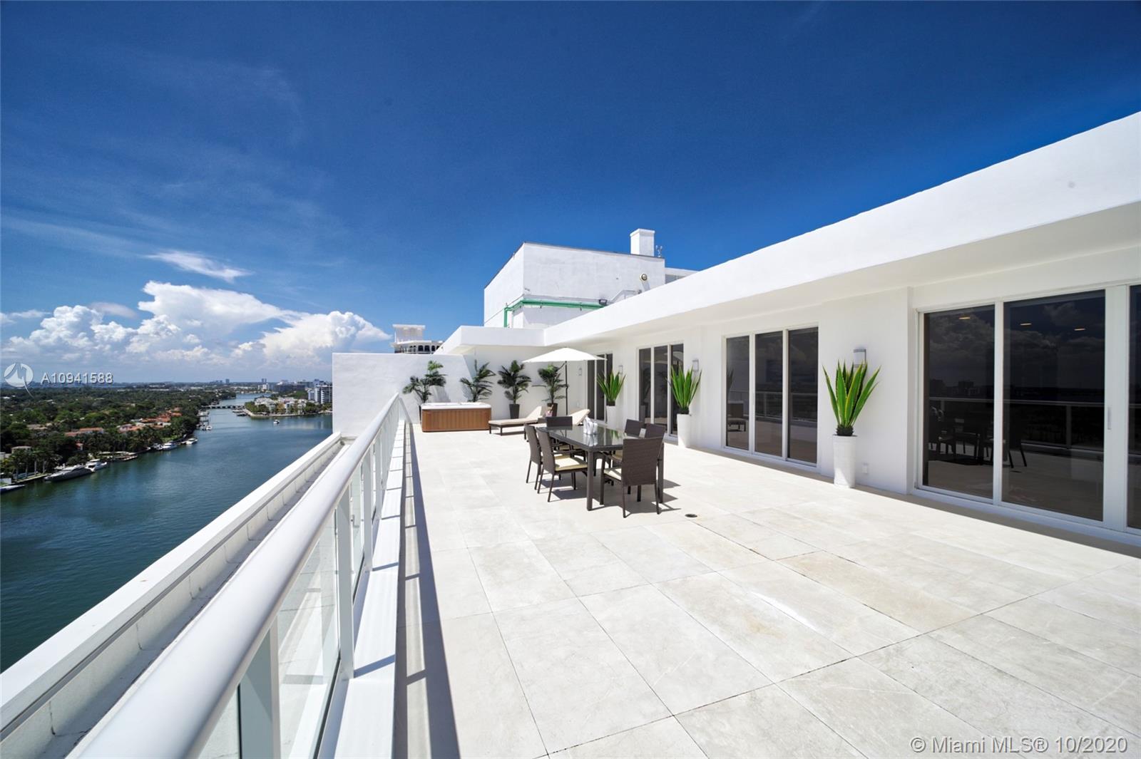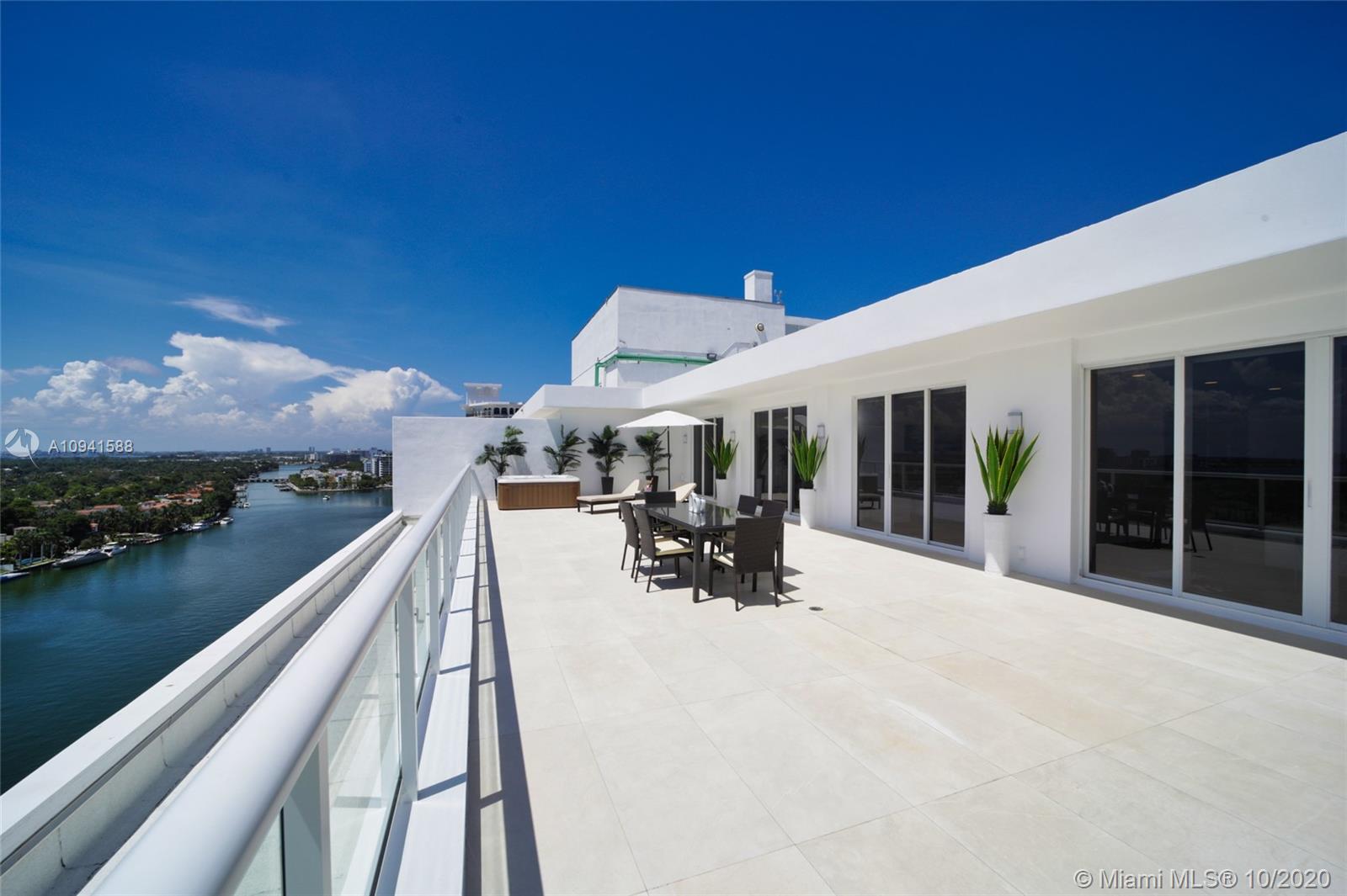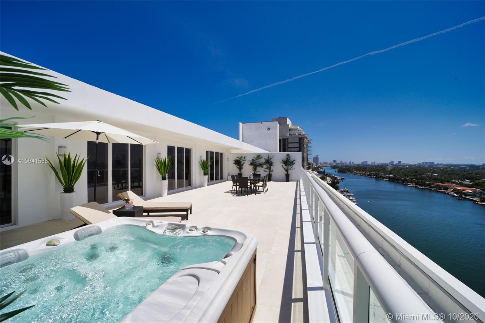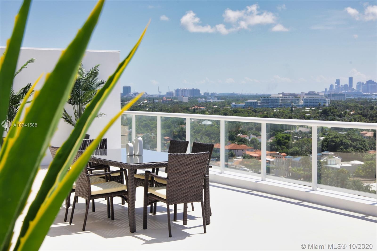 THIS LUXURY 3 BEDROOMS, 3 FULL BATHROOMS PENTHOUSE IS DESIGNED FOR YOU. 2,100 SQUARE FEET UNDER AIR CONDITIONING & AN ADDITIONAL 1,200 SQUARE FEET OF TERRACE W/ GORGEOUS VIEWS OF THE INTRA-COASTAL, BISCAYNE BAY, LA GORCE GOLF COURSE, & DOWNTOWN MIAMI AND THE SUNSET. AMAZING JACUZZI ON TERRACE. THIS UNIQUE PENTHOUSE INCLUDES A POOL-SIDE CABANA W/DRESSING ROOM & FULL BATH. THE RESIDENCE COMES FULLY FURNISHED, FEATURING ITALIAN SNAIDERO CHERRY WOOD KITCHEN CABINETRY, MIELE APPLIANCE & MEDIA CENTERS. CHERRY WOOD FLOORS. MARBLE BATHROOMS. LAUNDRY ROOM WITH SINK. PRIVATE STORAGE ON THE APARTMENT FLOOR. PRIVATE WINE CELLAR. 3 PARKING SPACES ASSIGNED. BUILDING HAS BEEN COMPLETELY RENOVATED WITH NEW GYM, POOL AREA, ELEVATORS, LOBBY AND HEATED POOL. BUILDING HAS PRIVATE MARINA. BOATERS DREAM.