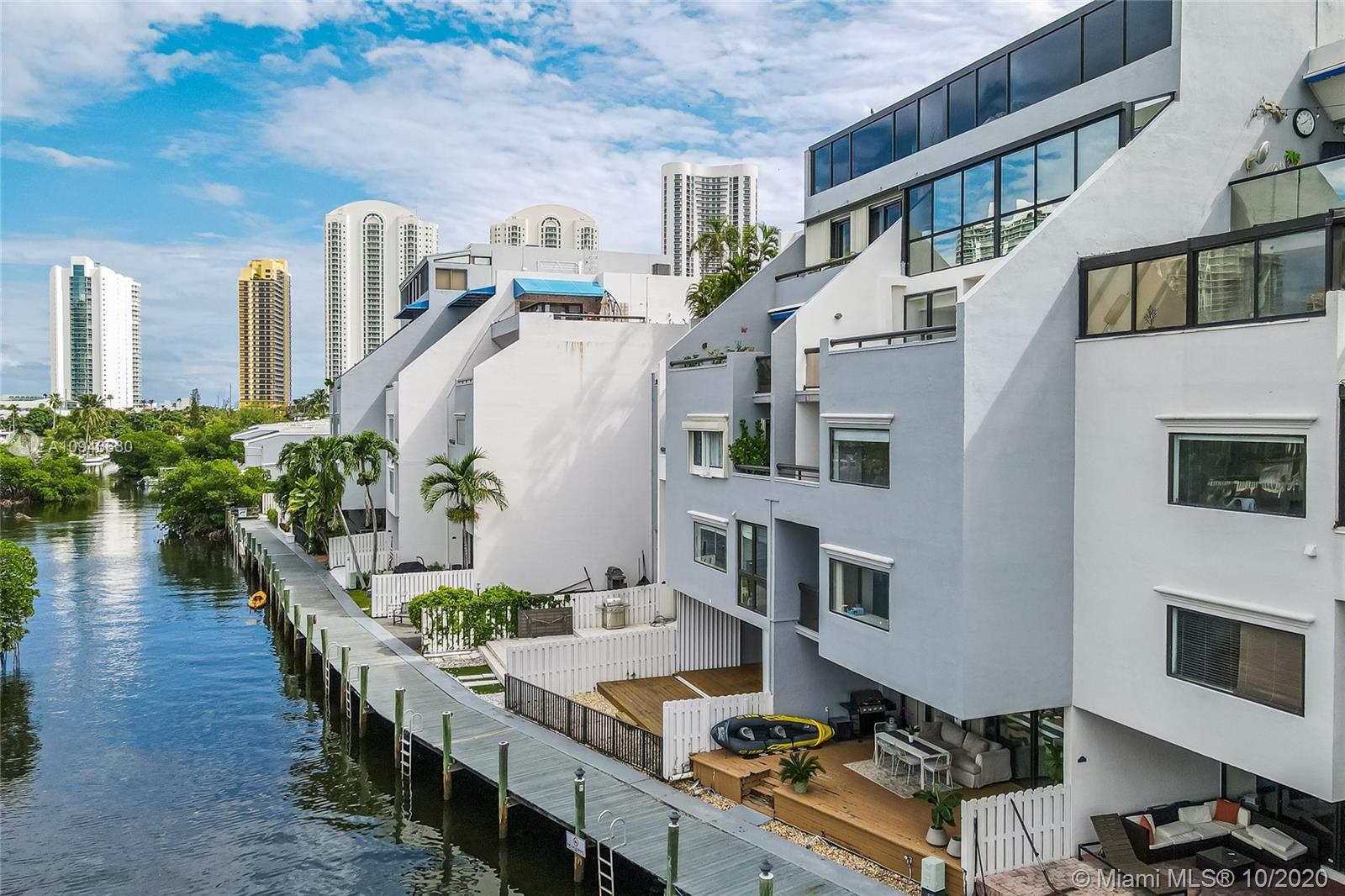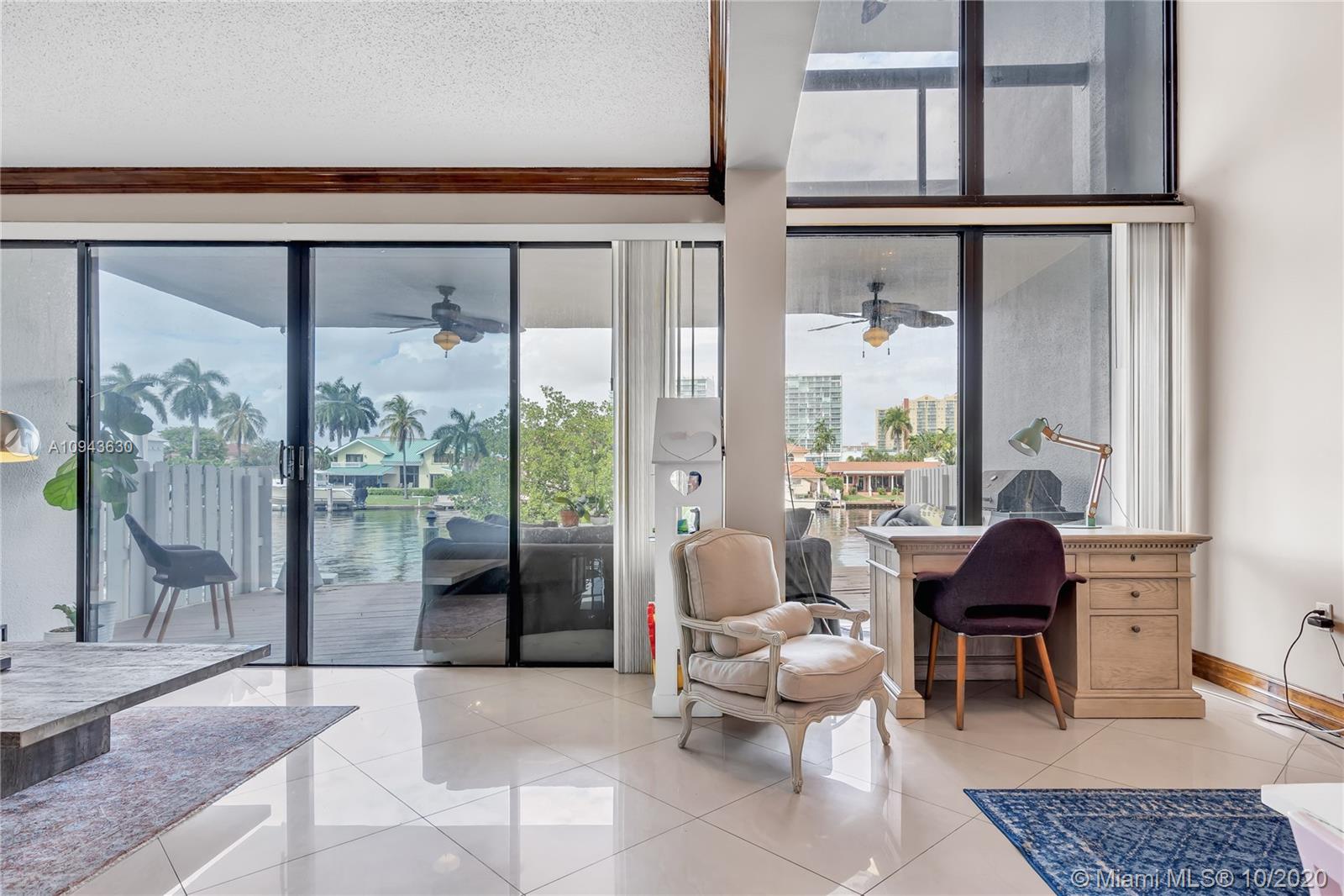 REDUCED FOR A ROCKET SALE! Extraordinary Waterfront Lifestyle featuring 2,325 sq. ft. Residence nestled on a Prestigious, Gated Poinciana Private Island on the Intracoastal with endless water views, boaters paradise. Unit comes with a Deeded Private Dock. No fixed bridges-Minutes to Ocean Access. Impressive daily Sunrises/Sunsets from your ground floor private terrace. Spacious two story unit with updated kitchen and Steel appliances, all high end ceramic floors, outstanding large windows with high ceilings and crown moldings, master bedroom has private balcony facing the water. Split floor plan, washer/dryer room. Best deal in the Island, all special assessment paid in Full, no worries just come and live the best life Sunny Isles Beach can offer you!.