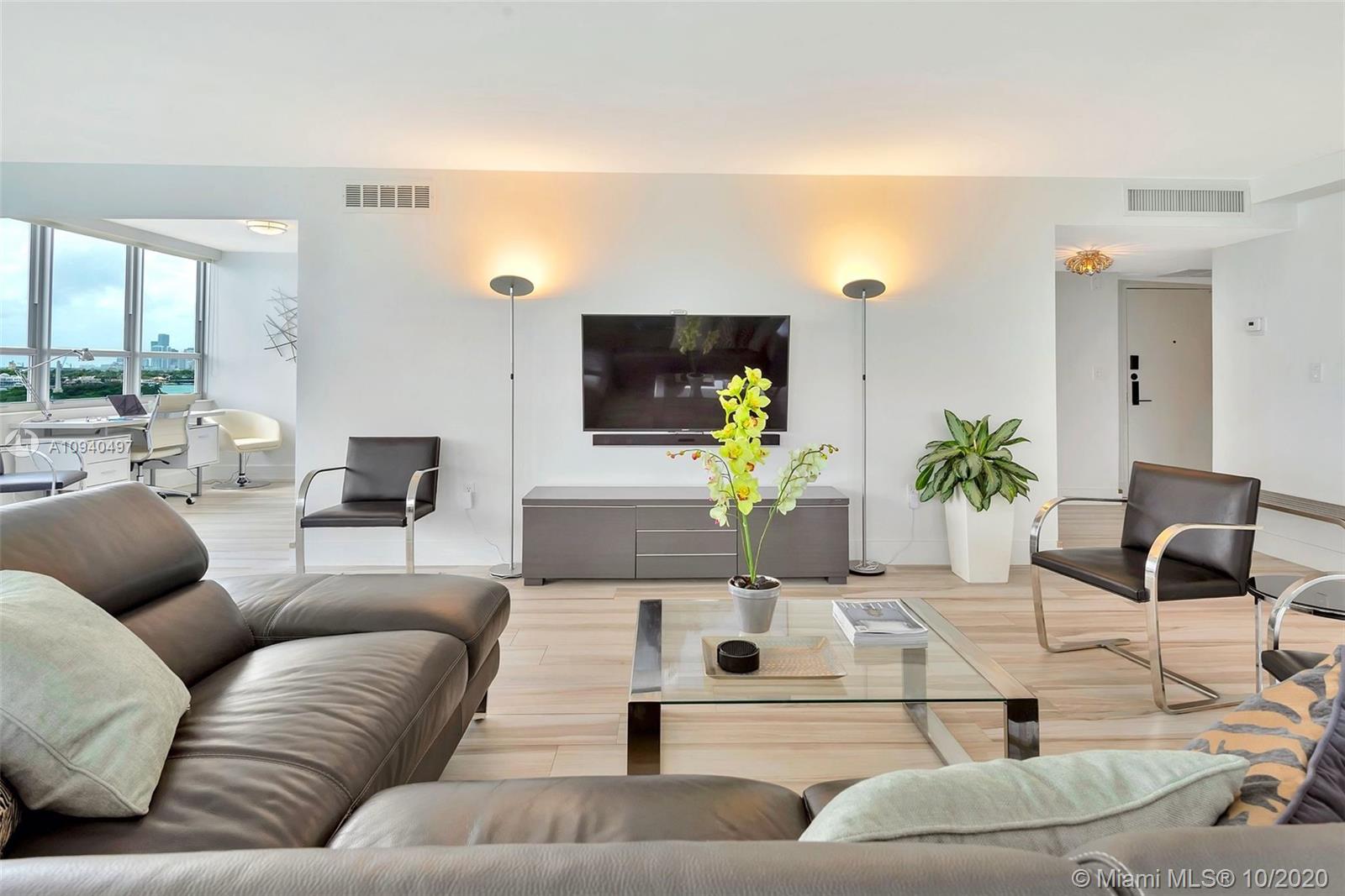Sleek, refined fully renovated SE corner unit with unobstructed water & city views from every room. Includes boat slip & lift for up to 35' boat & 1 garage space. This coveted "02" line features Italian porcelain floors which flow out to the expansive balcony flanking the living room. Two handsome bedrooms with ensuite baths; master features separate his & her closets & spa-like bath. Upgrades include impact windows and new a/c; washer/dryer currently being installed. Belle Isle Park is directly across the street with expansive open space, large & small dog runs, & spectacular playground. Costa Brava is undergoing a dramatic transformation, new elevators, hallways & more and is a full-service building with fully equipped gym, valet, doorman & amazing rooftop terrace with 360 views.