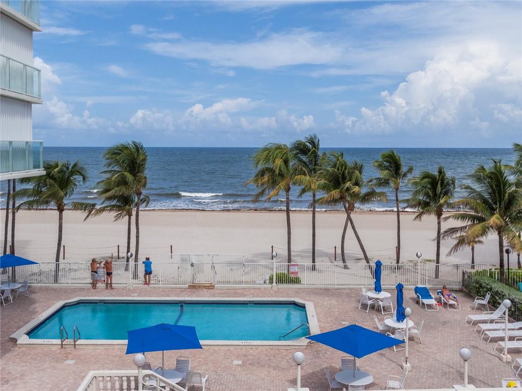 Beautiful 2bd/2ba. Beach lifestyle, on this condo on the sand. Lager master bedroom, Nice kitchen cabinets, granite counter, with stainless steel appliances, remodeled bathrooms, hurricane impact windows and doors. Nothing needs to be done in this unit. Enjoy the view of the beach over morning coffee, Glorious beach, barbeque, and pool area. Close to restaurants and shopping. Security Guarded 24/7, Clubroom with kitchen, billiard, well-equipped exercise room, heated pool on the beach with large BBQ area. In the Heart of Pompano Beach.