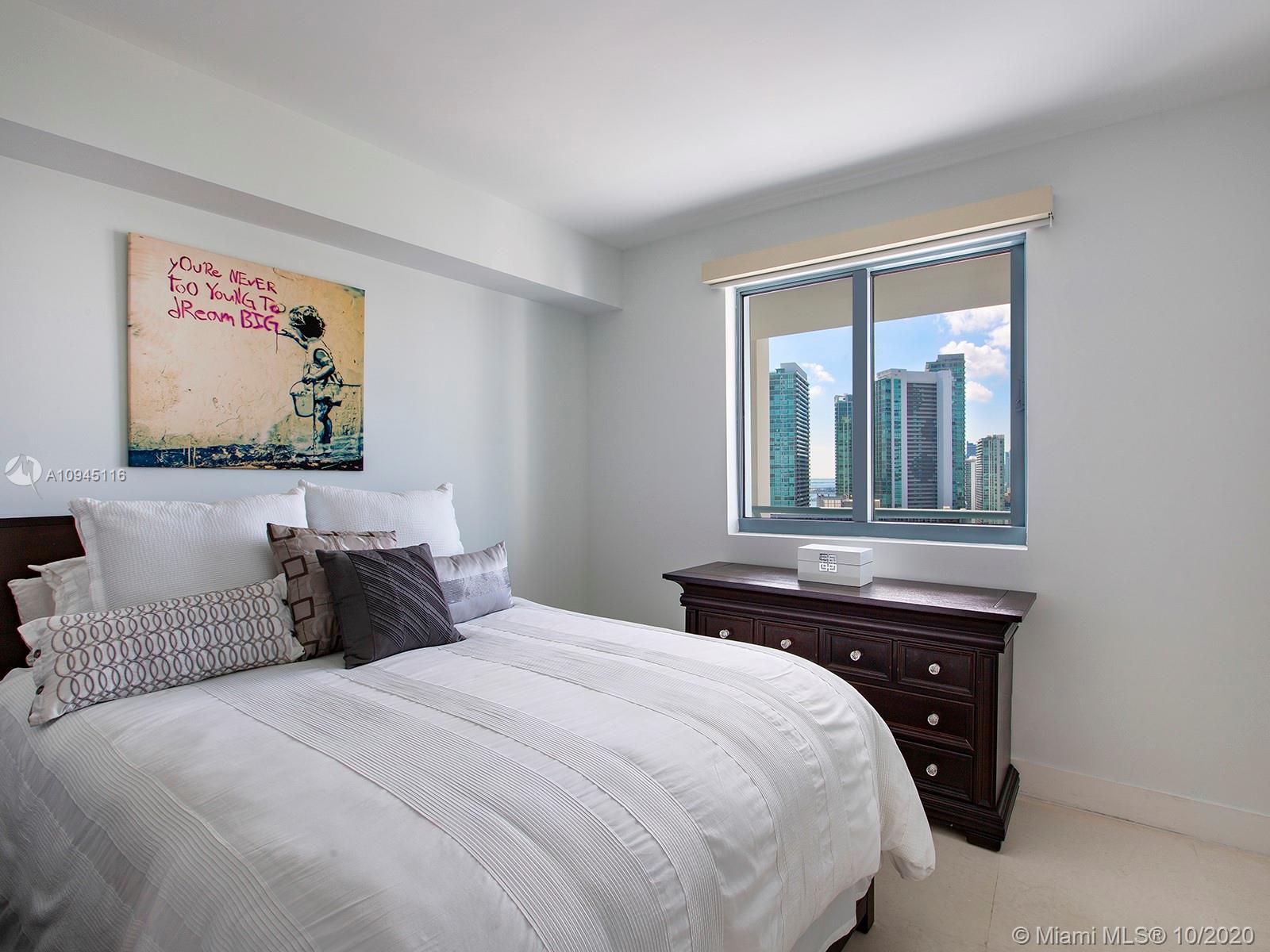 Amazing high-floor 2 bed, 2.5 bath residence at Blue condo in Edgewater, Miami. Enjoy bay and ocean views from Downtown Ft. Lauderdale to Coconut Grove. Multiple upgrades include custom mill-work, stone and greenery wall coverings. Kitchen w/ dual-zone wine refrigerator, backsplash, new dishwasher & pull down faucet. Lutron controlled contemporary lighting, Nest thermostat & Sonos music system can all be controlled via smart phone. Renovated powder room includes porcelain floor and walls, contemporary vanity and new washer and dryer. Spacious master bedroom includes contemporary custom walk-in closet & marble appointed bathroom with dual vanities, additional storage & TV. Second bedroom has expansive views & ensuite bathroom. Amenities at Blue include lap pool, jacuzzi, gym & much more!