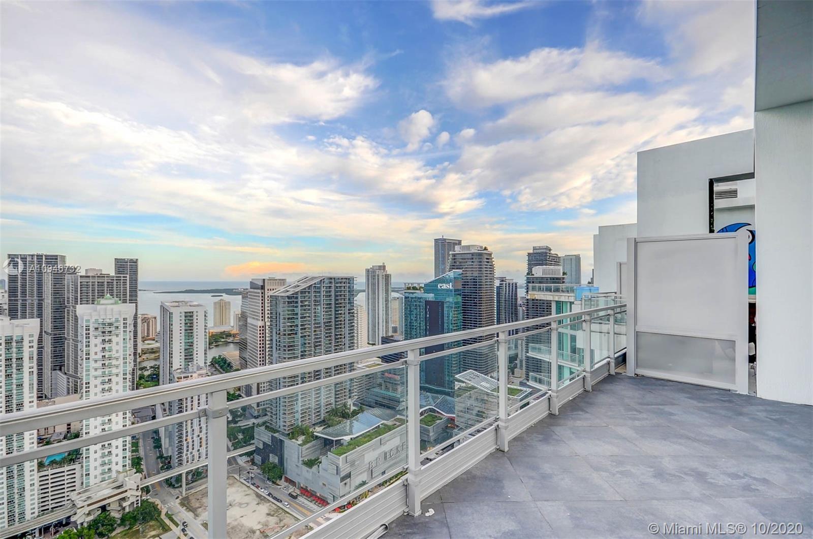 LIVE LUXURY IN THIS SPECTACULAR PRIVATE TWO STORY PENTHOUSE W/THIRD FLOOR ENTERTAINMENT & SUNNING AREA PANORAMIC WATER VIEWS OF RIVERFRONT. SPACIOUS AND OPEN FLOOR PLAN PLUS DEN,MODERN,ALL UPGRADED WITH PORCELANATO FLOORS ,HIGH IMPACT WINDOWS AND SLIDING DOORS,BEAUTIFUL EUROPEAN KITCHEN,TOP OF THE LINE APPLIANCES,CLOSET CABINETRY,SEE SPECTACULAR CITY & WATER VIEW FROM ANY SIDE OF THE UNIT. MANY AMENITIES POOL WITH CABANAS,SAUNA,SPA,GYM,THEATER-STYLE SEATING -HD SCREENING ROOM,24H CONCIERGE.VALET PARKING.PERFECT LOCATION, WALKING DISTANCE TO BRICKELL CITY CENTER AND DOWNTOWN.