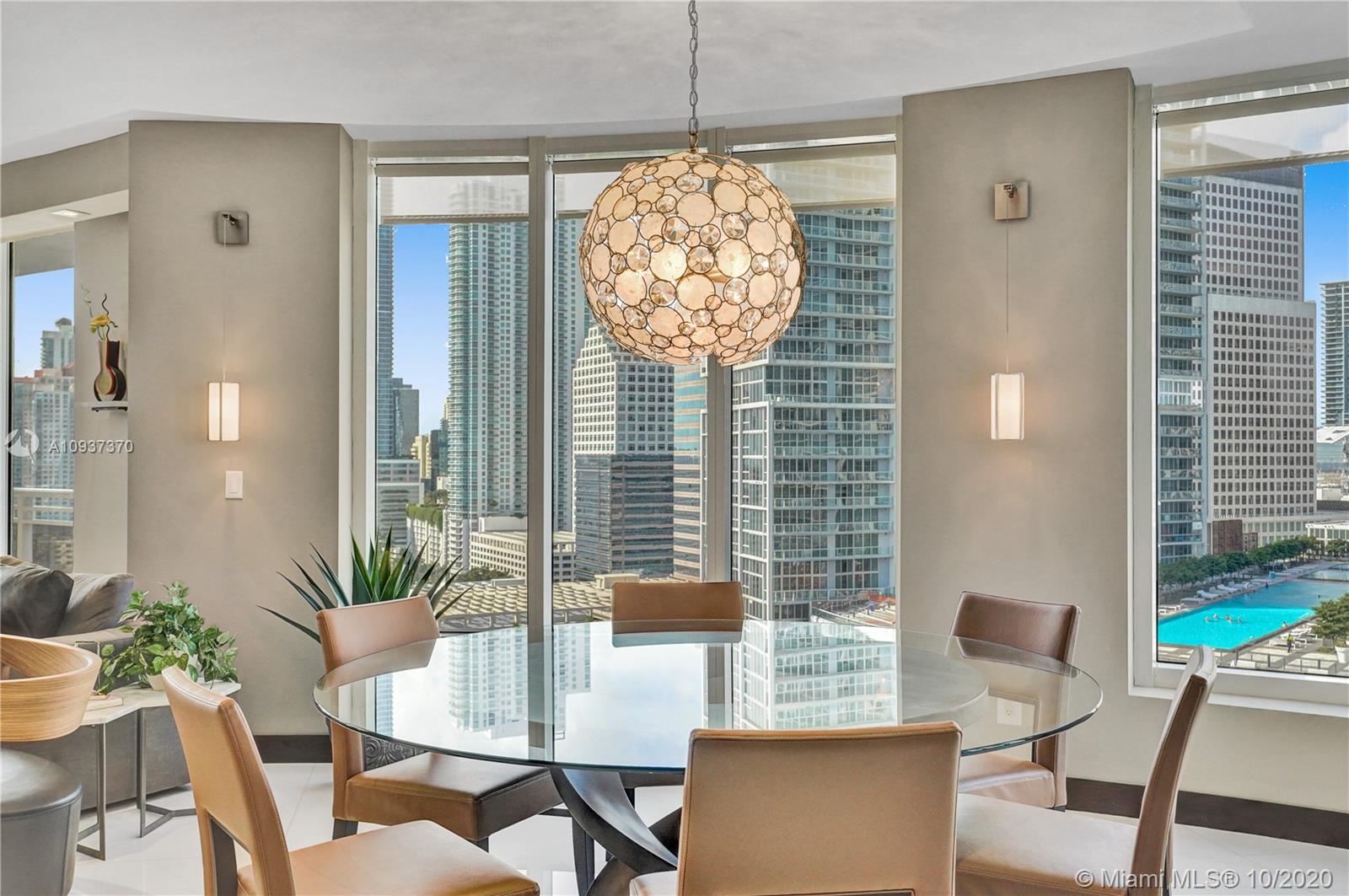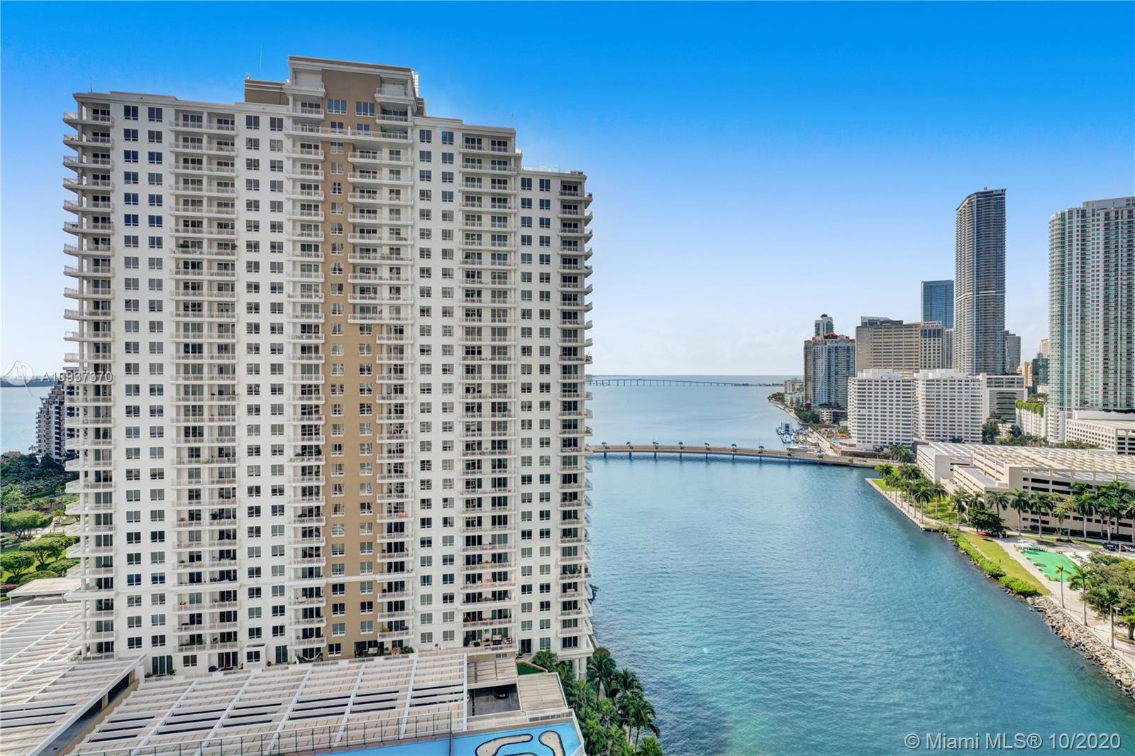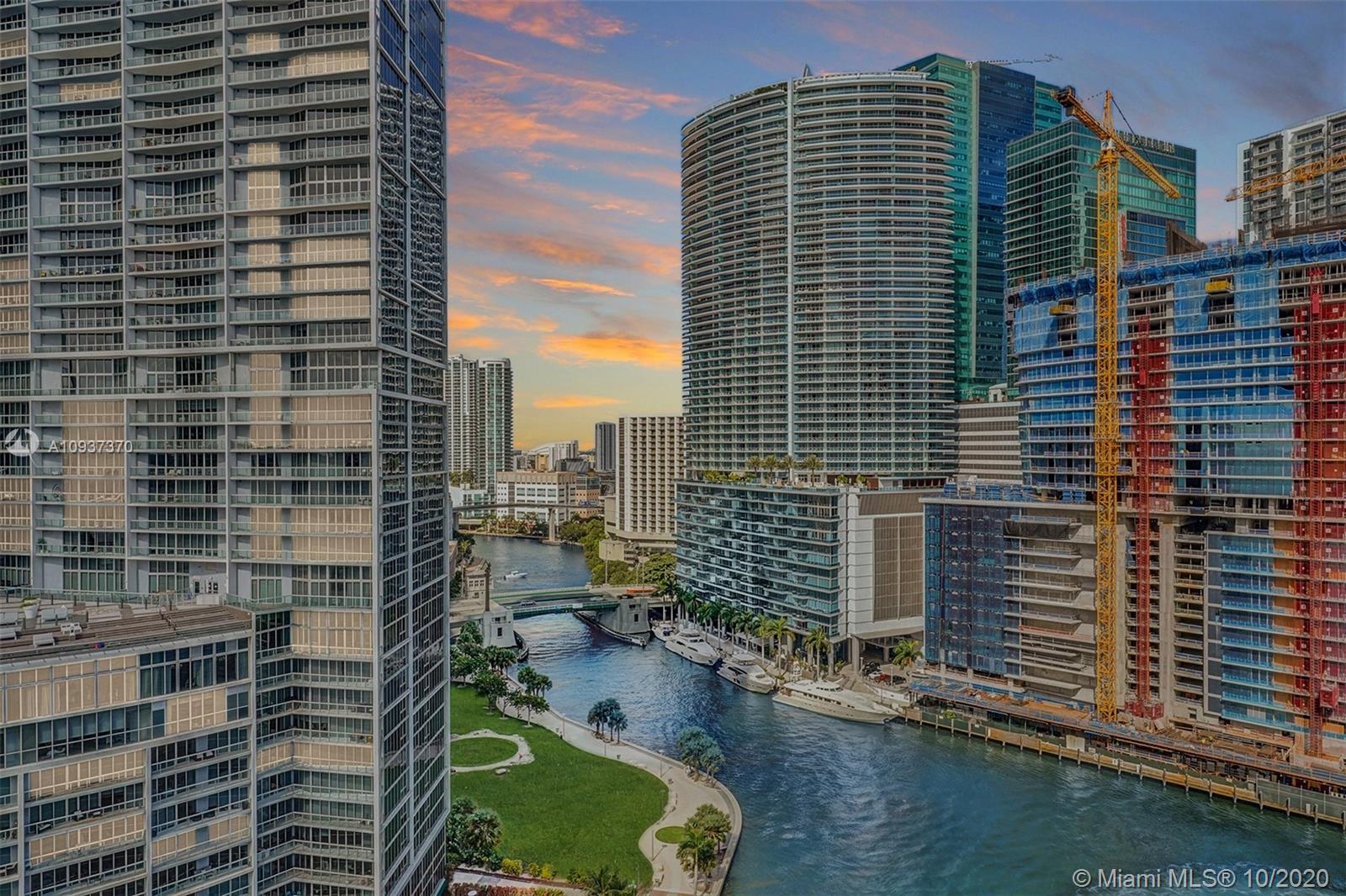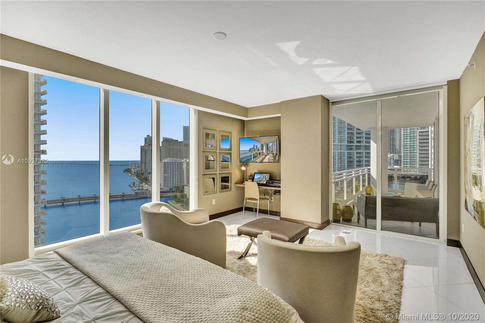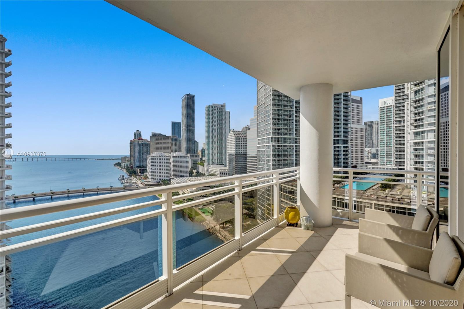 Stunning, sun-drenched corner 04-line residence at Carbonell offers unique 180-degree panoramic sweeping views of the Miami River, Biscayne Bay and vibrant Brickell Skyline.Upon arriving you are immediately drawn to an expansive rounded great room, giving center stage to mesmerizing views through oversized windows, high ceilings and multiple terraces that add to the grandeur of this fantastic home.Spanning approximately 2,600 square feet, this professionally designed property has 25X25 Porcelain flooring throughout, multi-zone AC, split bedroom and accented with exquisite rich hardwood doors and frames.Building offers an array of amenities such as guard gate, front desk concierge, secured elevator, Bi-level health club, heated pool.Property sold together with 2 covered parking and storage.