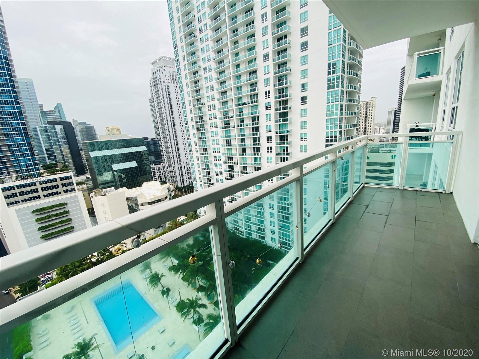 Beautiful unit overlooking the amazing infinity pools. Unit has laminated wood floors throughout Residence features modern high ceilings, stainless steel appliances, imported Italian cabinetry Amenities: 24 hr security and concierge, 24-hour valet parking, State of the art Fitness Center in each tower, 2 Infinity-edge heated pools, Steam room, Theater room, Business center, party room, pool table & lounge. Walk to Mary Brickell Village and Brickell City Center mall. Minutes away from American Airlines Arena & Performing Arts. HOA includes Water, basic cable & internet. ADDITIONAL PARKING SPACE SOLD SEPARATELY AT $30K
