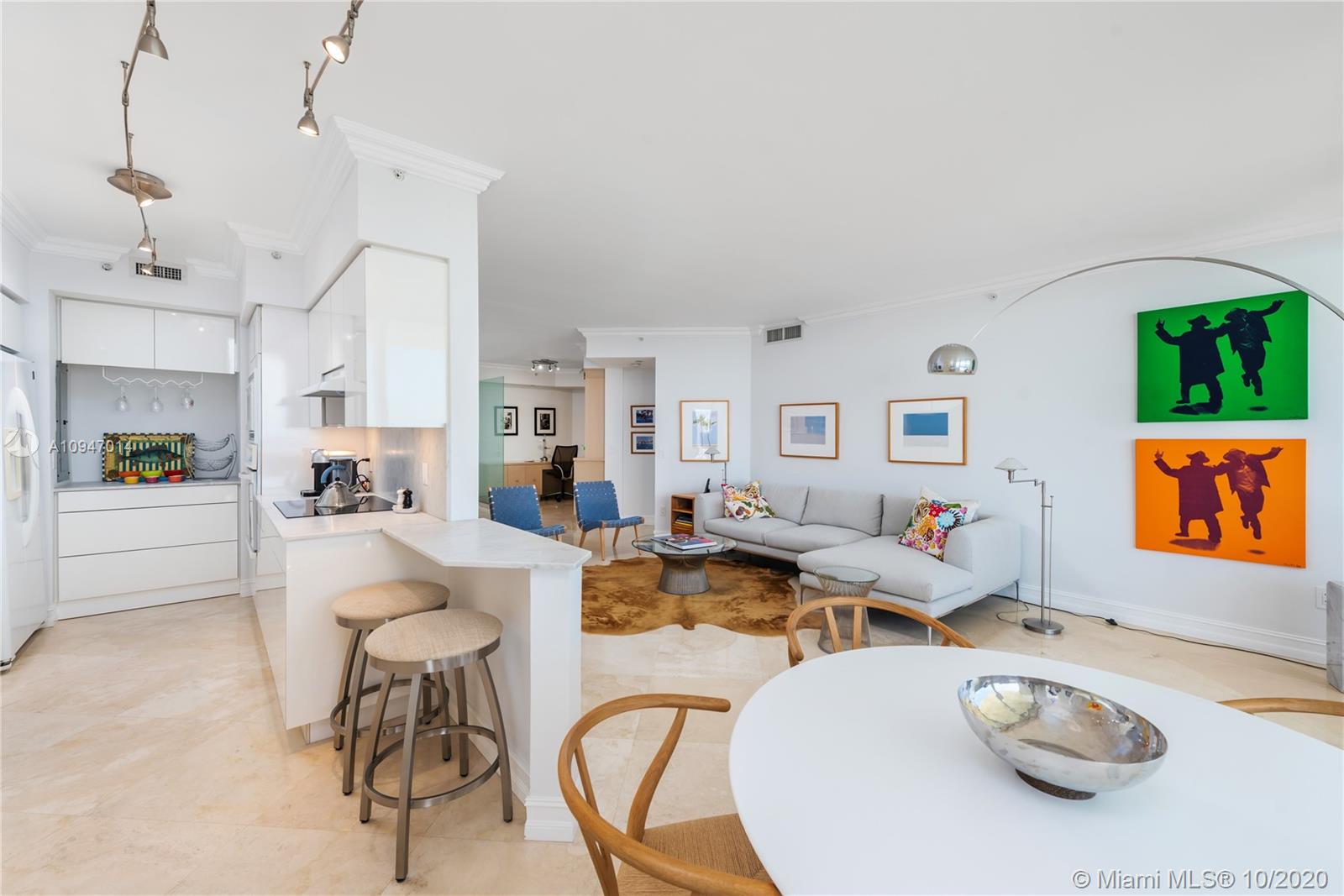 Enter through a double door & you are immediately greeted with stunning direct ocean views from this beautifully renovated residence, which boasts 2 bedrooms and a large den that was conveniently enclosed to be used as a 3rd bedroom. Some of the exquisite features: partially open designer kitchen, master suite with a custom-built walk-in closet, large renovated bath with Jacuzzi & separate enclosed glass shower. Exquisite marble floors, designer lighting throughout, office space with built-ins, 1 large terrace overlooking the Atlantic Ocean, floor-to-ceiling windows. The prestigious Blue Diamond is centrally located in Mid-Beach and offers exceptional services and amenities.