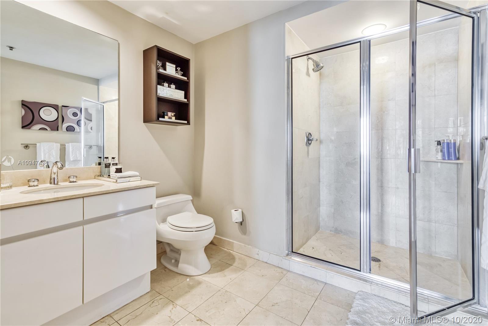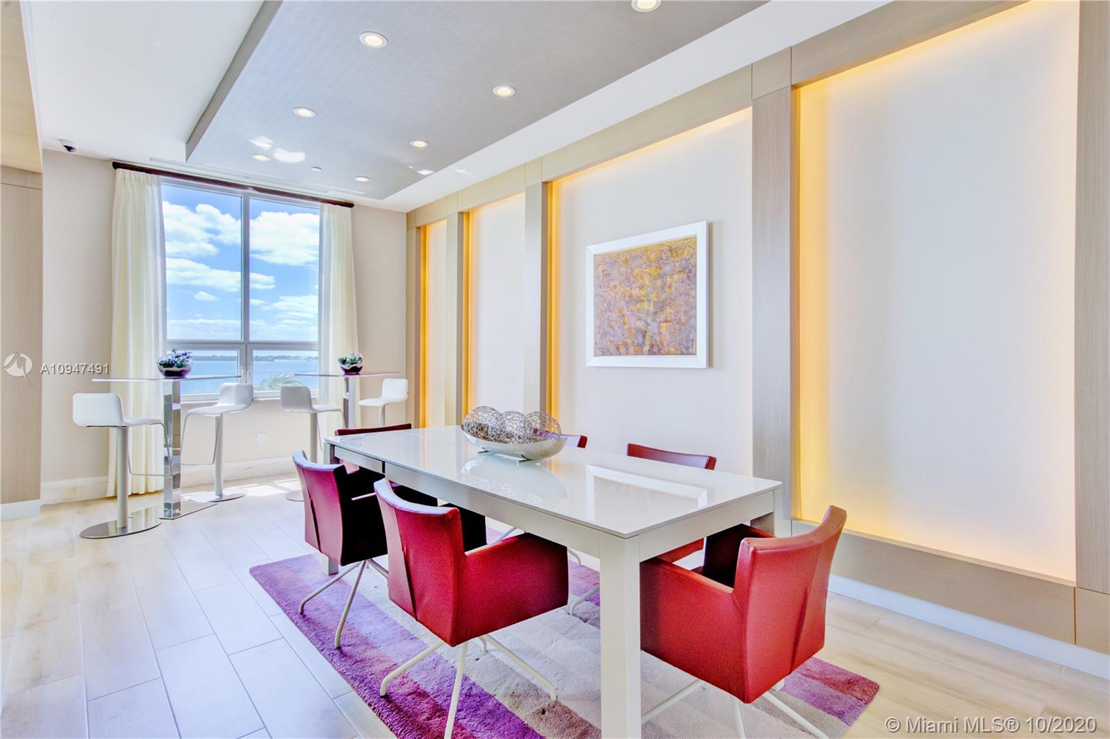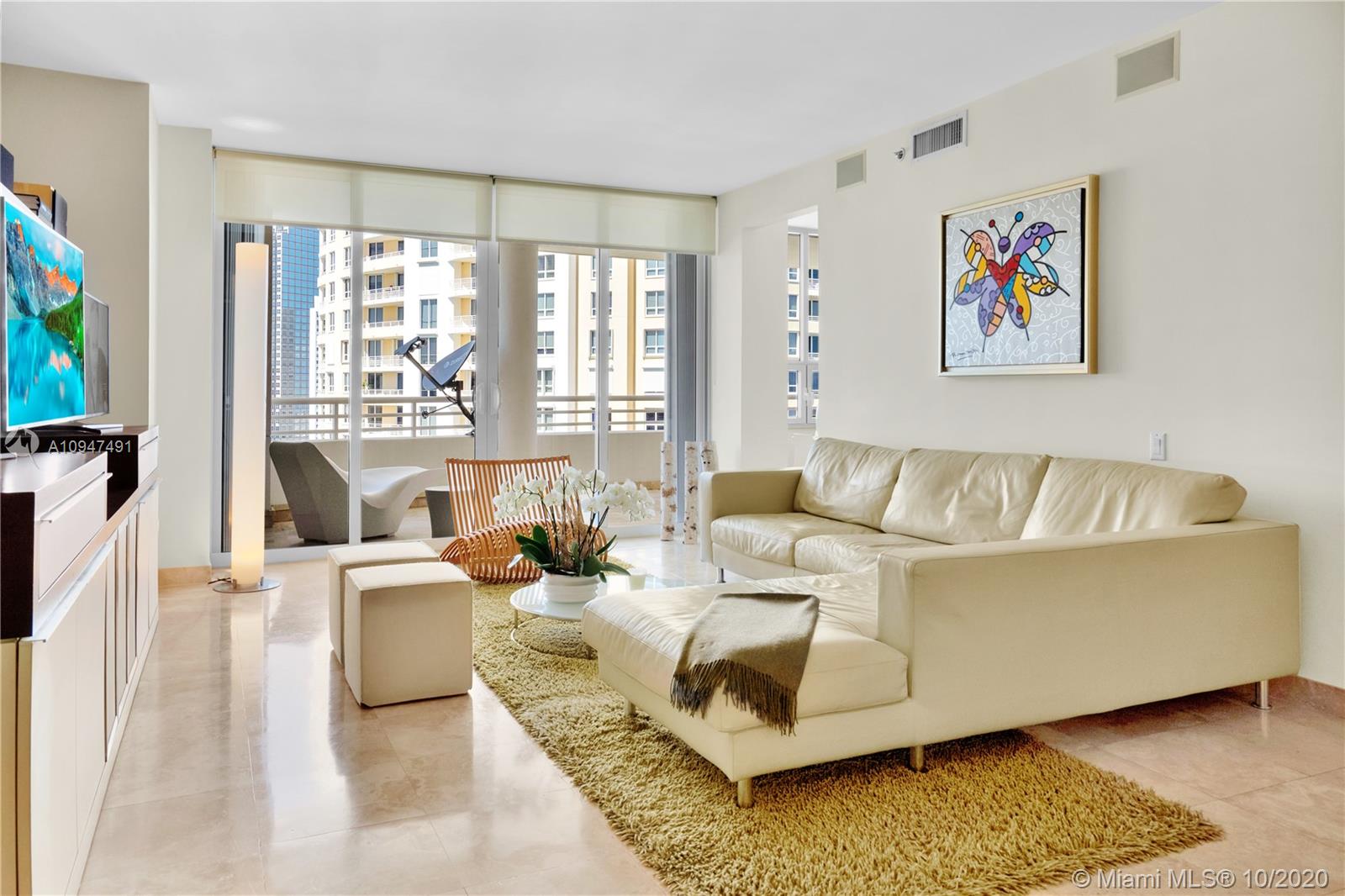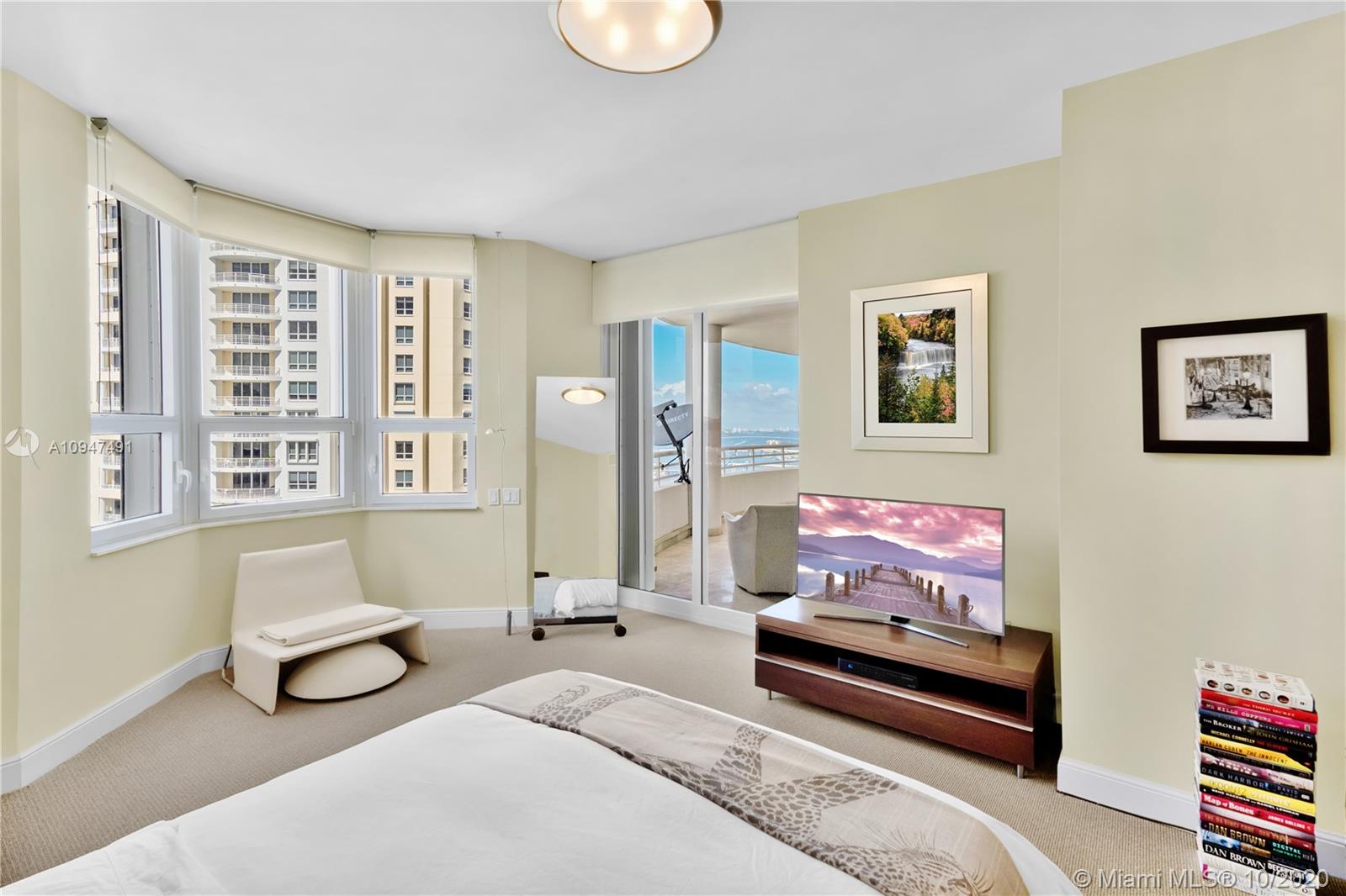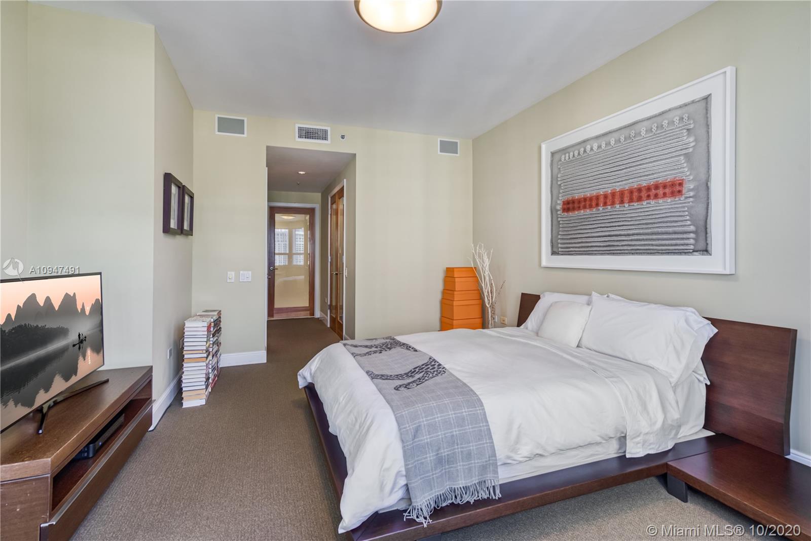Live in the elegant Two Tequesta Point on Brickell Key - This rare high floor unit has stunning city/bay views from a massive balcony giving you amazing day/night views. The kitchen was remodeled w/ clean line cabinets, a chef's sink, under cabinet lighting, Sub-Zero/Wolf/Asko appliances & custom butcher block countertops. This smart home has Nest, a newer AC, Lutron dimmers, & surround sound TV/Audio. Other upgrades are Italian light fixtures, shades throughout (including blackout in bedrooms), & designer walk-in closets & doors. Two Tequesta has a renovated lobby/elevators, tennis, one of the nicest fitness centers in Miami, a bayside resort style pool with hot tubs, a BBQ area, a new Party room, conference rooms, a kids room, free common area wifi, free 24/7 valet, 24/7 security, & more