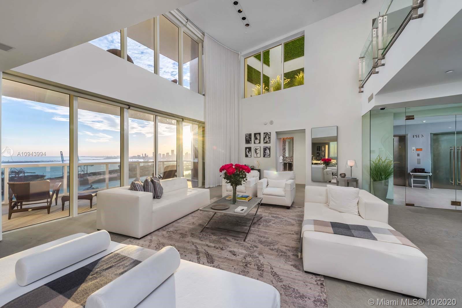 Most unique penthouse in all of Miami Beach! One-of-a-kind waterfront 2-story PH in the one of the most coveted locations, South of Fifth. This nearly 4,400 sq. ft smart home in the sky is outfitted w/ the highest level of finishes & attention to detail. Uncompromised ocean, bay, Miami Skyline & Fisher Island views w/ over 2,000 sq. ft of expansive outdoor living. Open floor plan seamlessly combines all the sophisticated living spaces. The PH boasts flamed limestone floors, 2 fireplaces, Poliform kitchen, 22’ ceilings, new wired Control4 smart home system w/ integrated light, TV/video, audio/music & AC control, new high-quality decking on patios & balcony including premium outdoor lights & vertical greenery. Top of the line amenities which include state-of-the-art gym, pool, 24-hr security