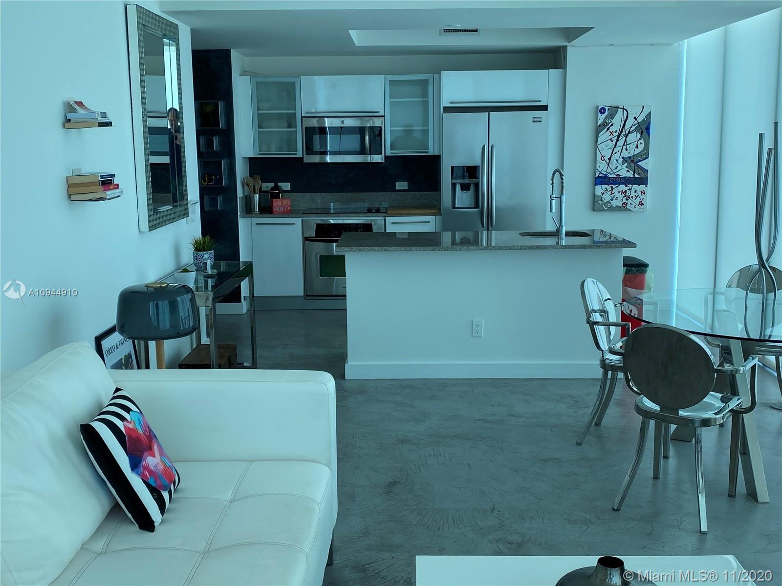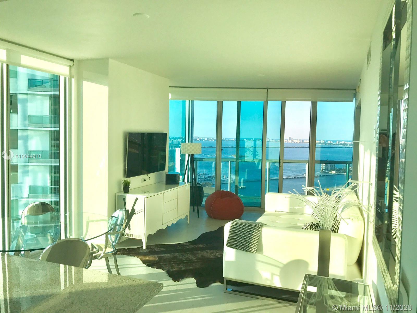 Arguably the BEST Miami view at the LOWEST price. GORGEOUS 2/ Bedroom 2 Bathroom Condo in the heart of Miami. TWO balconies to enjoy views from both the East and the West captivating both sunrises and sunsets. Stunning Open Kitchen with Island and Room Seating. Modern polished concrete floors (easy to maintain and preserve the style). Master Bathroom His and Hers sink with large shower. 1 Assigned parking space located on 6th floor (#53) at close proximity to cage storage unit. (Sunrise and Sunset Pools, SPA and Gym with stunning views of the bay), BBQ area, Beach Volleyball Court, Game Room, Business center, 24-hour security, concierge & Valet. Walking distance to numerous attractions and 7-minutes from South Beach. FURNITURE INCLUDED- PET FRIENDLY BUILDING.