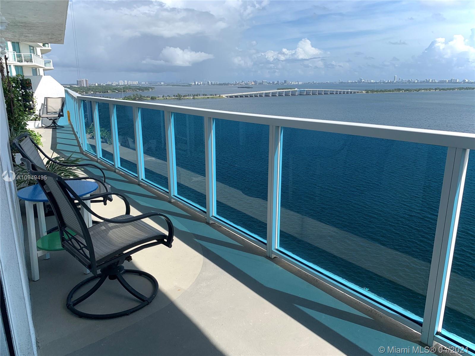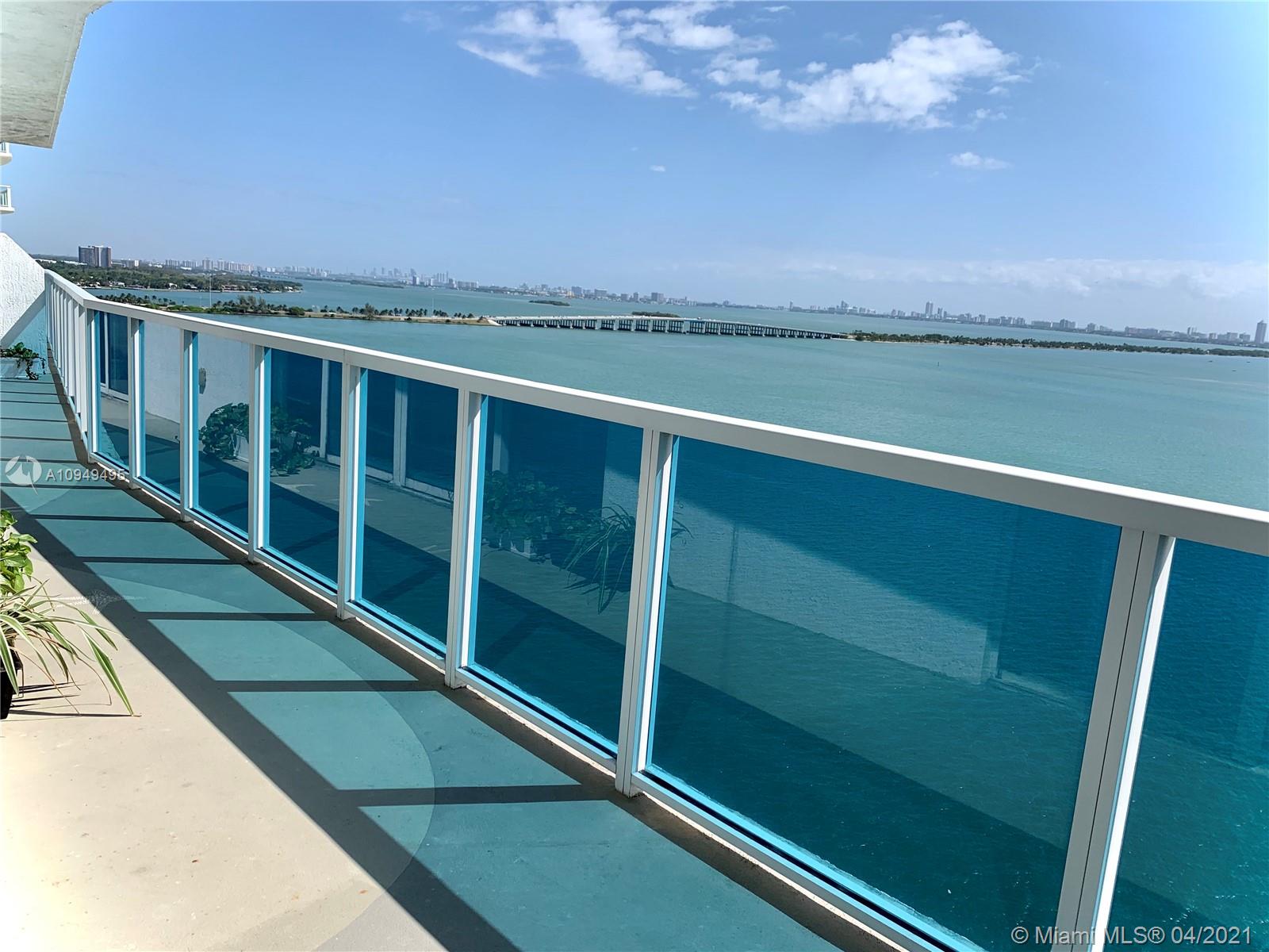ALL ROOMS with DIRECT BAY VIEWS: 2 bedrooms+living+dining+kitchen. PRIVACY: just direct bay views, no need to pull down shades for privacy. BOUTIQUE BUILDING: 3 units/floor, 47 units total. WIDE LAYOUT: nice flow, not a rectangle. LIGTH: ALL Windows are 10”FT Floor to Ceiling, TERRACE: 44 Ft long, all rooms direct access. ROOMS: Spacious main bedroom/3 closets. 2nd bedroom: 3/4 high movable wall. 2&1 blocks from Elysee & Missoni Baia. RENOVATION: completed. See attachments.