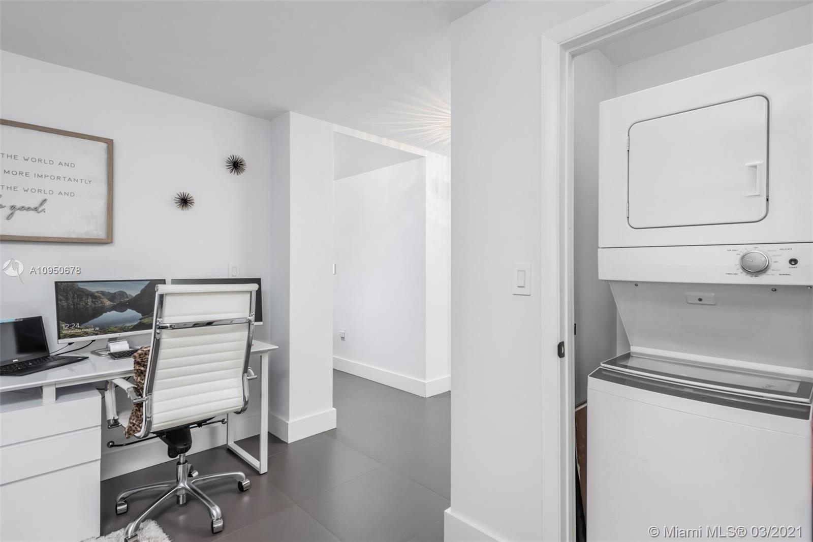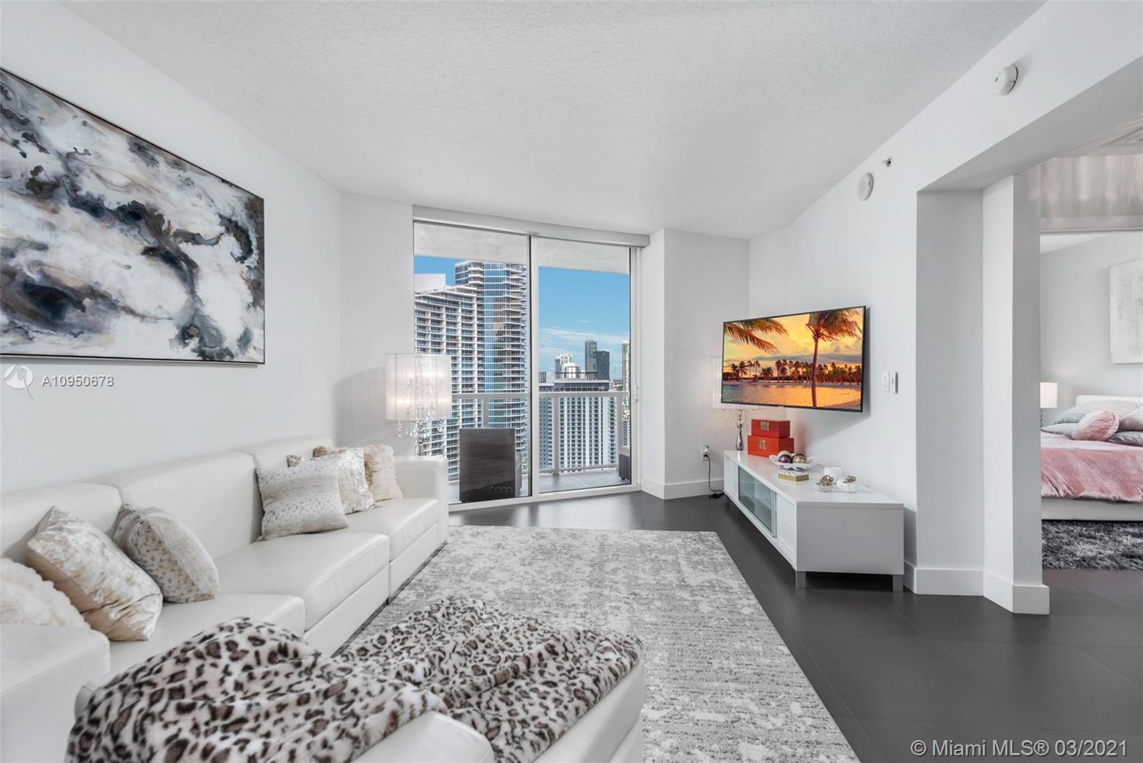 Your opportunity to own an upgraded 1-bedroom + den residence in Edgewater’s Quantum on the Bay! Enjoy panoramic Biscayne Bay and city views in this residence w/ floor to ceiling windows and lots of natural light. Plus, access your balcony from living and bedroom. High-quality upgrades: modern porcelain floors, motorized window treatments, updated bathroom, custom closets + more! Den can be enclosed as 2nd bedroom or office. Building amenities: 2 heated pools, 2 story gym w/ classes, theater, business center, party room, billiards, sauna, valet, full concierge & 24-hour security. Next to beautiful Margaret Pace Park; walk to Publix, cafes and restaurants; quick ride to Downtown, Wynwood, Design District, Brickell and South Beach, easy access to 95. Don’t miss out! Furniture also for sale.