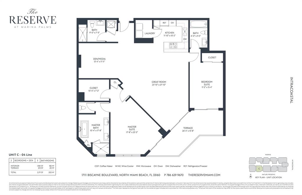 The Reserve at Marina Palms brings the yachting lifestyle to the residents, luxury, high-end finishes and unparalleled personalized services. Only Building in North Miami Beach; with all the Luxury you need in amenities incl children's play room, teen lounge room, Clubroom w/ 100'' TV + billiards table, Cafe Room, conference business room, gym, Cycling, Pilates, + Spa w/ Steam + Sauna and private spa services available. Must see an amazing Brand new unit never live in, Featuring 2 bedroom + Den (Reversible), 3 full bathrooms, State of the art kitchen and appliances, parking space Assigned + valet, Storage available, Beautiful installed floor and Stunning intracoastal views.