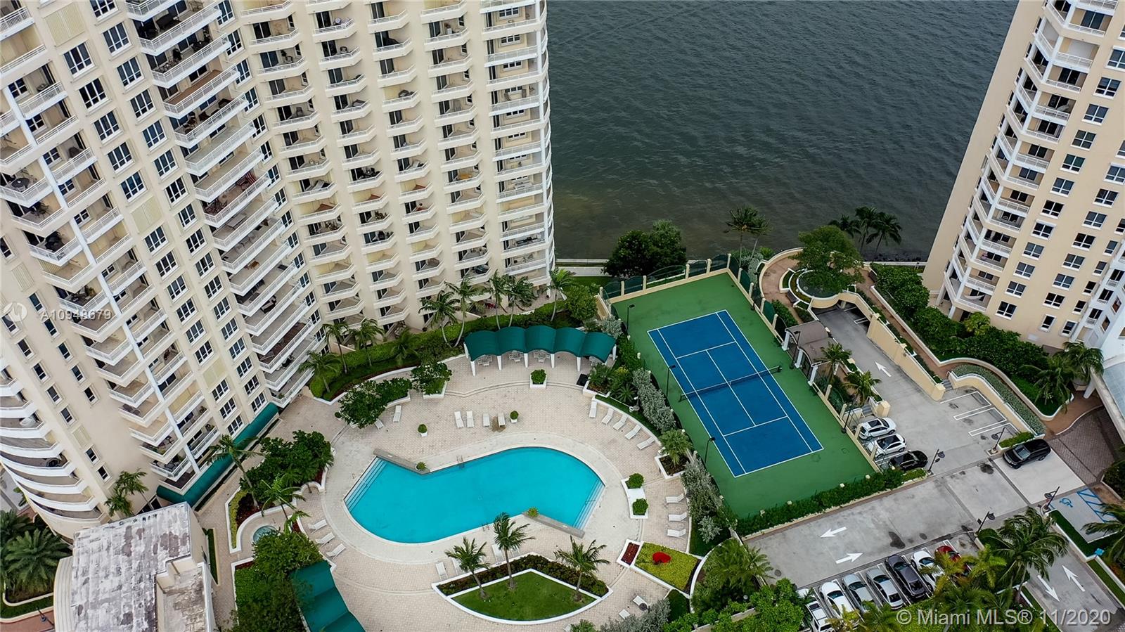 Wake up every morning to beautiful water and city views in this Unique, Modern, Elegant 2/2 Corner unit at the exclusive One Tequesta Point in Brickell Key. Take delight in stunning interior spaces w/tons of natural light, updated kitchen with spectacular day/night views from the private wrap-around balcony. Luxury Building w/superb amenities, front gate security, 24Hr valet, business center, gym, BBQ, large pool, squash courts & more. Brickell Key is centrally located and features a 1.1-mile walking path, restaurants, grocery store, pet hospital, beauty salon, juice bar, kids parks & The Mandarin Oriental Hotel & Spa. This unique condo comes w/1 Parking Space. A true must see to appreciate.