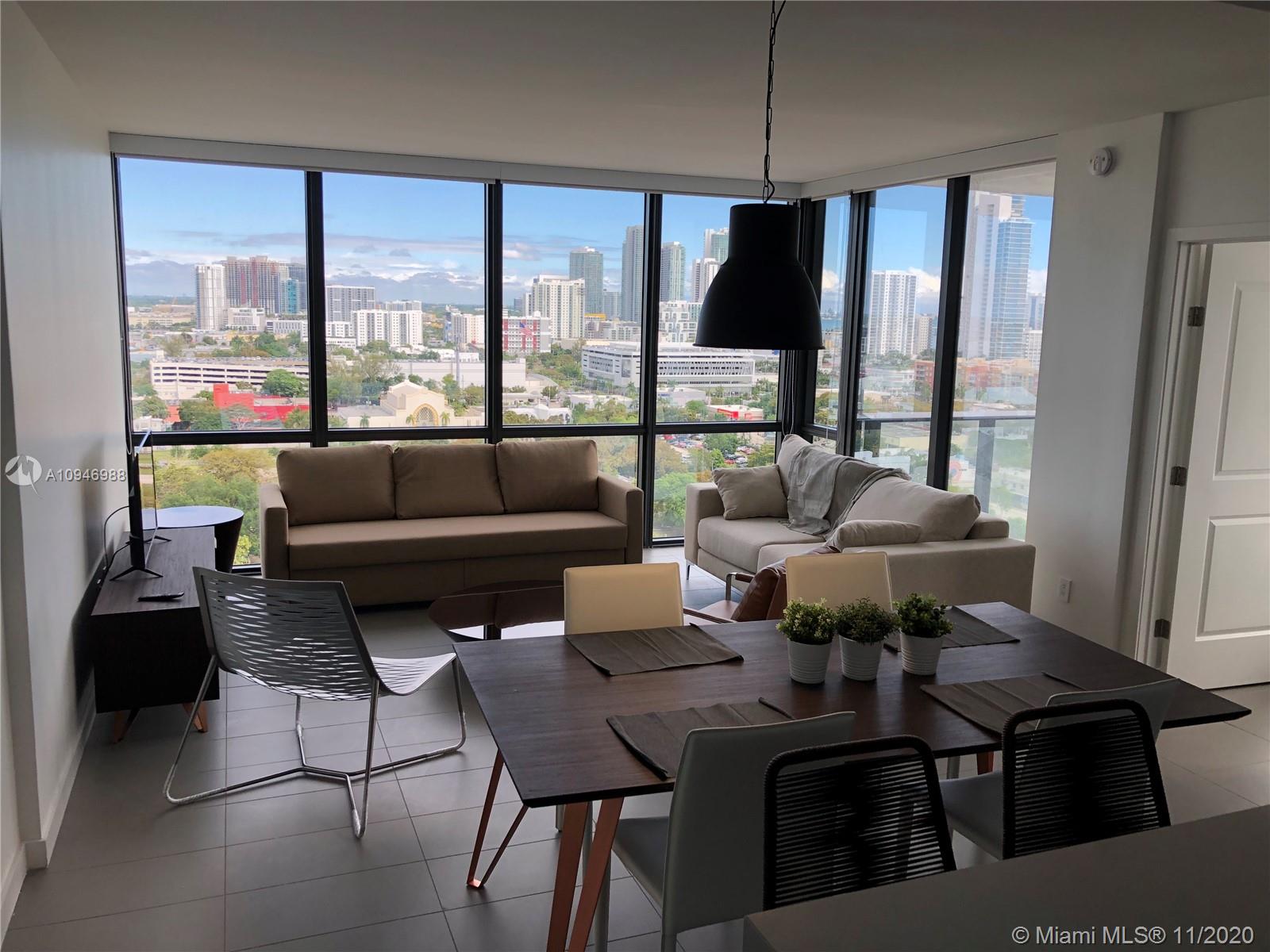 Most desirable corner unit in Canvas Condominium. North East views. Furnished unit. Unit Rented until October 6 2021. Canvas Condo is located in the trendy area of the Arts and Entertainment district. Steps of public transportation. 5 minutes from Wynwood, Downtown, Brickell, museums, etc. Some of the amenities are: 24 Hs. Security, 3 pools, jacuzzi, sauna, state of the art gym, conference center, party room, racquetball court, screening room. Maintenance includes: internet, cable, parking.