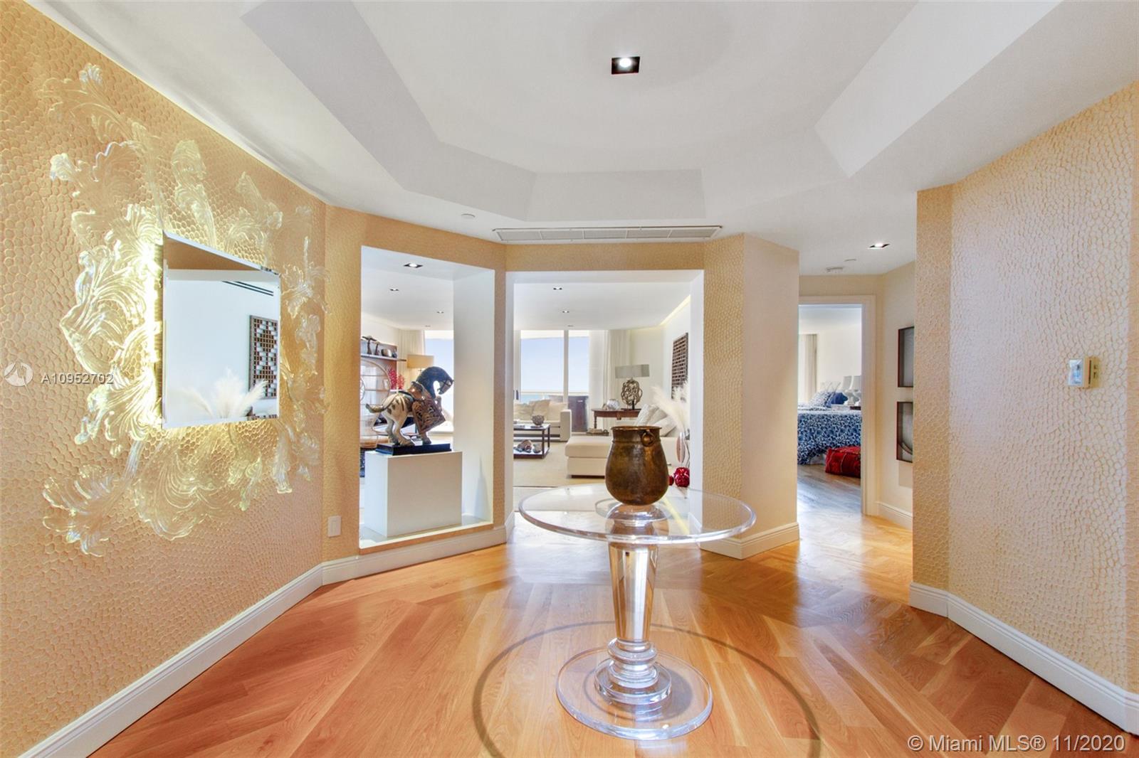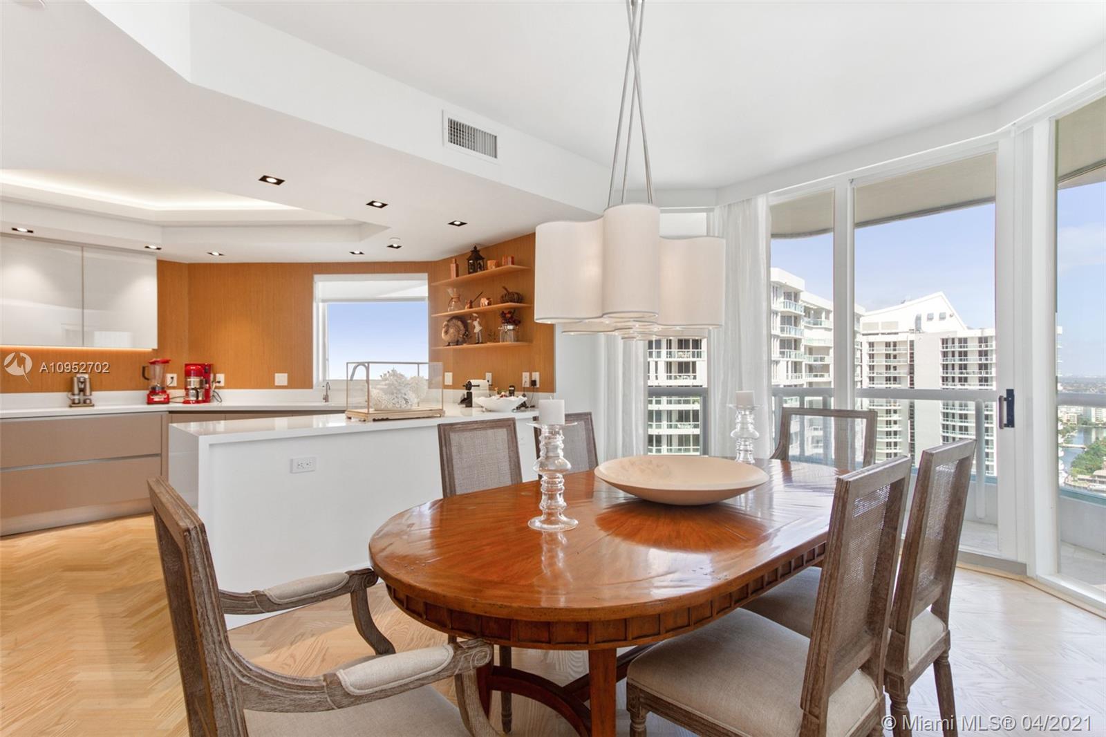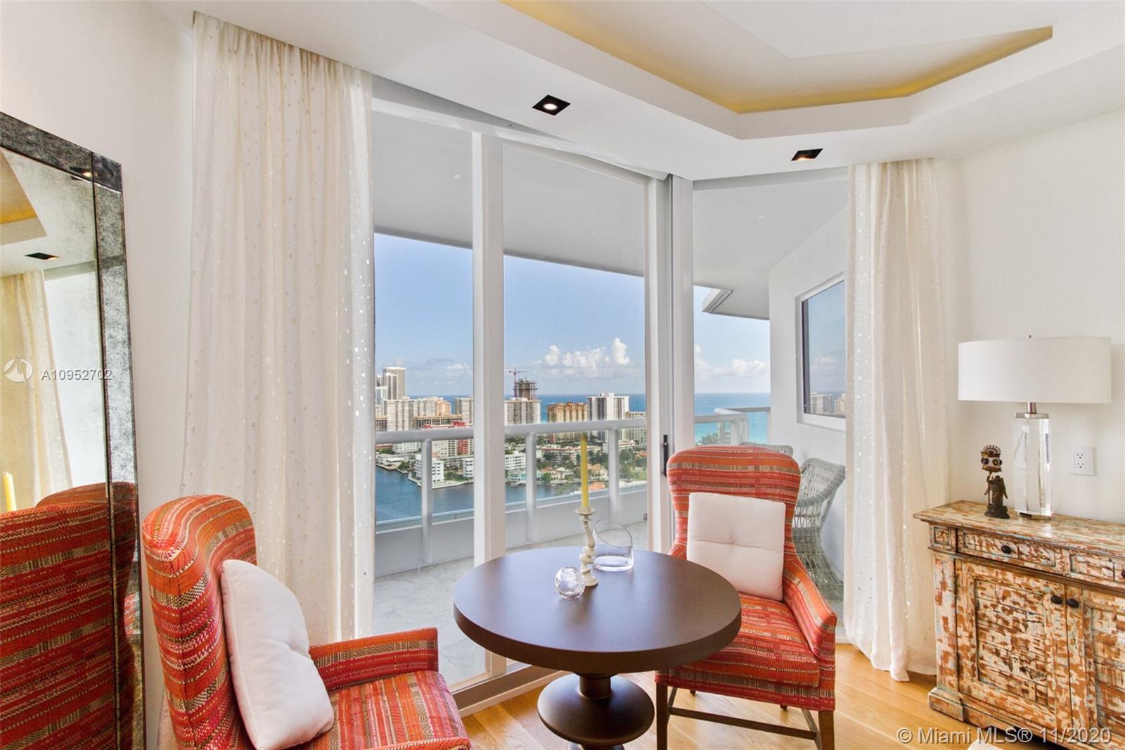Magnificent panoramic Ocean and Intracoastal views from open and spacious residence on the 28th in the prestigious Atlantic lll. Completely remodeled corner unit with architectural changes. Private elevator with foyer entry, Italian kitchen with quartz countertop and wine cellar. Smart unit with custom lighting throughout with drop ceiling, electric blinds and surround system. Wood floors throughout unit, and marble floors in completely remodeled bathrooms and built-in closets. Luxurious community located in the heart of Aventura with, 24 hour valet parking, full spa, 4 tennis courts, 3 pools and BBQ. Walking distance to Waterways Marina, close Aventura Mall, Gulf Stream Park, International Airports and Beaches. Furniture is available separately.