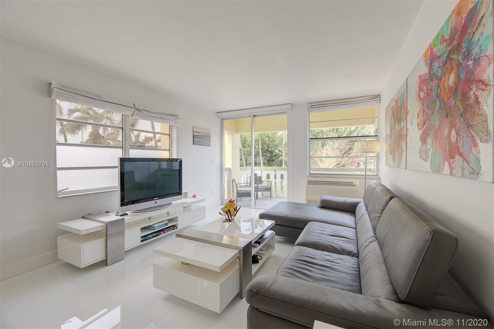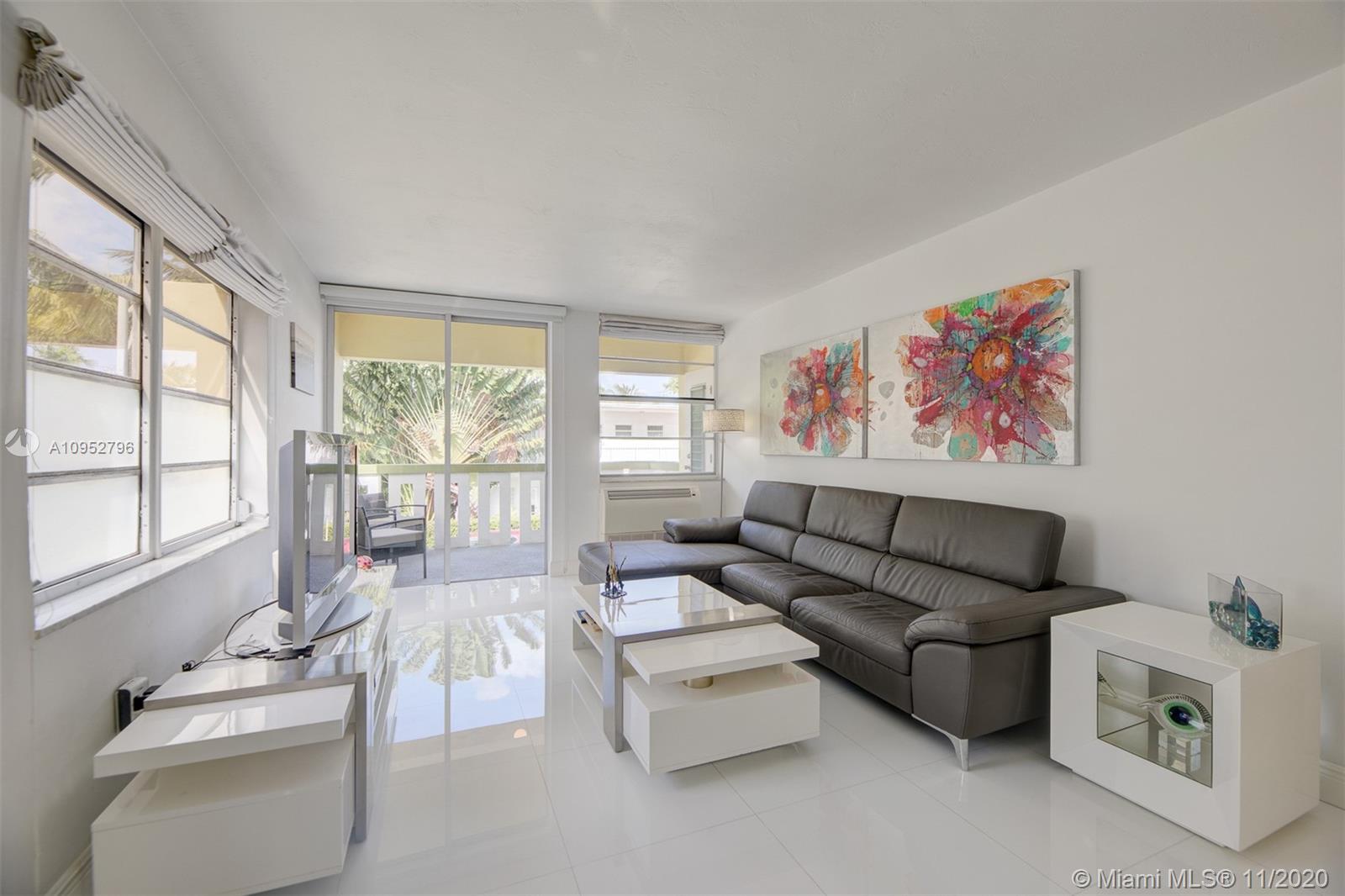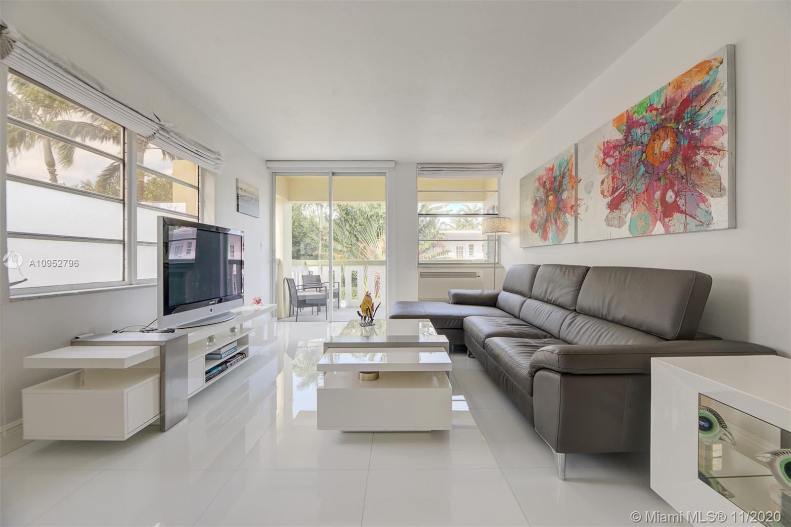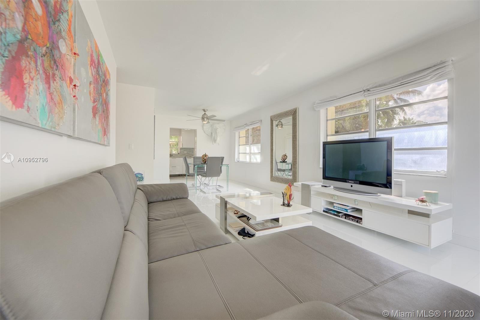 Turn Key/Furnished renovated bright corner unit. A significant investment was put into this condo and it reflects in the beautiful glass flooring, quartz countertops and stainless steel appliances. Your large balcony is on the Northwest corner of the building and receives great sunlight. One covered parking space is included. A ductless Klimaire air conditioning cools well. All special assessments have been paid in full. The property is very close to Flamingo Park. The property can be delivered turn-key with all of the furniture. This would be an easy transition for someone looking to live here or seeking a tenant.