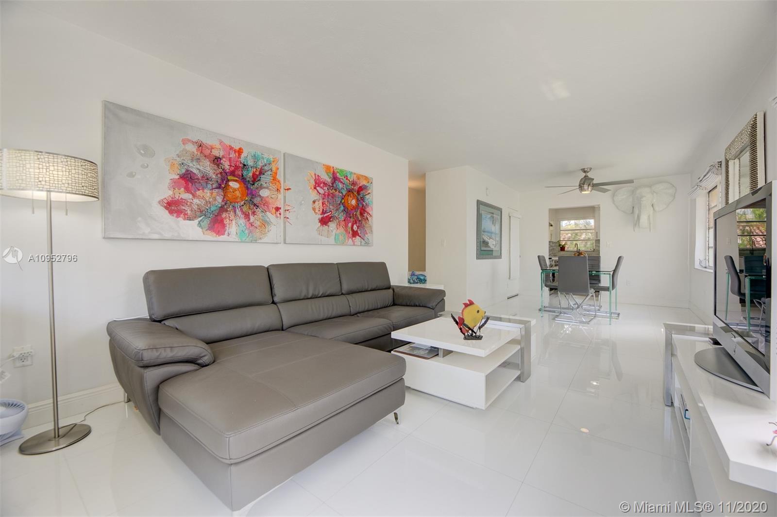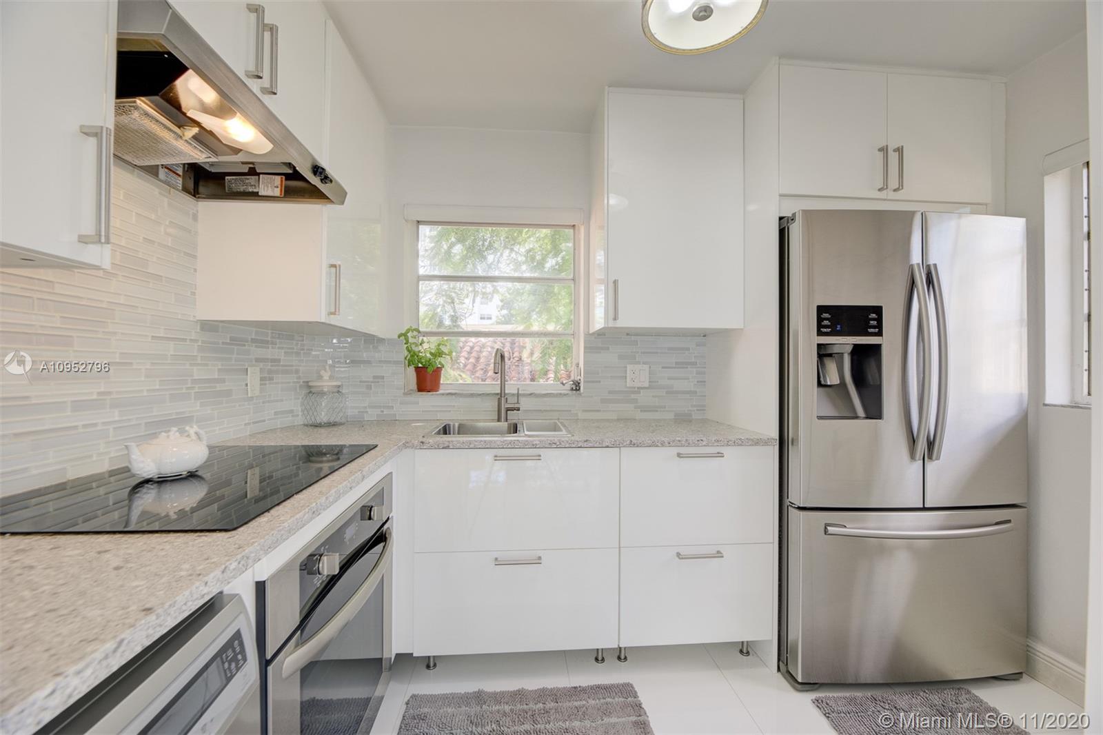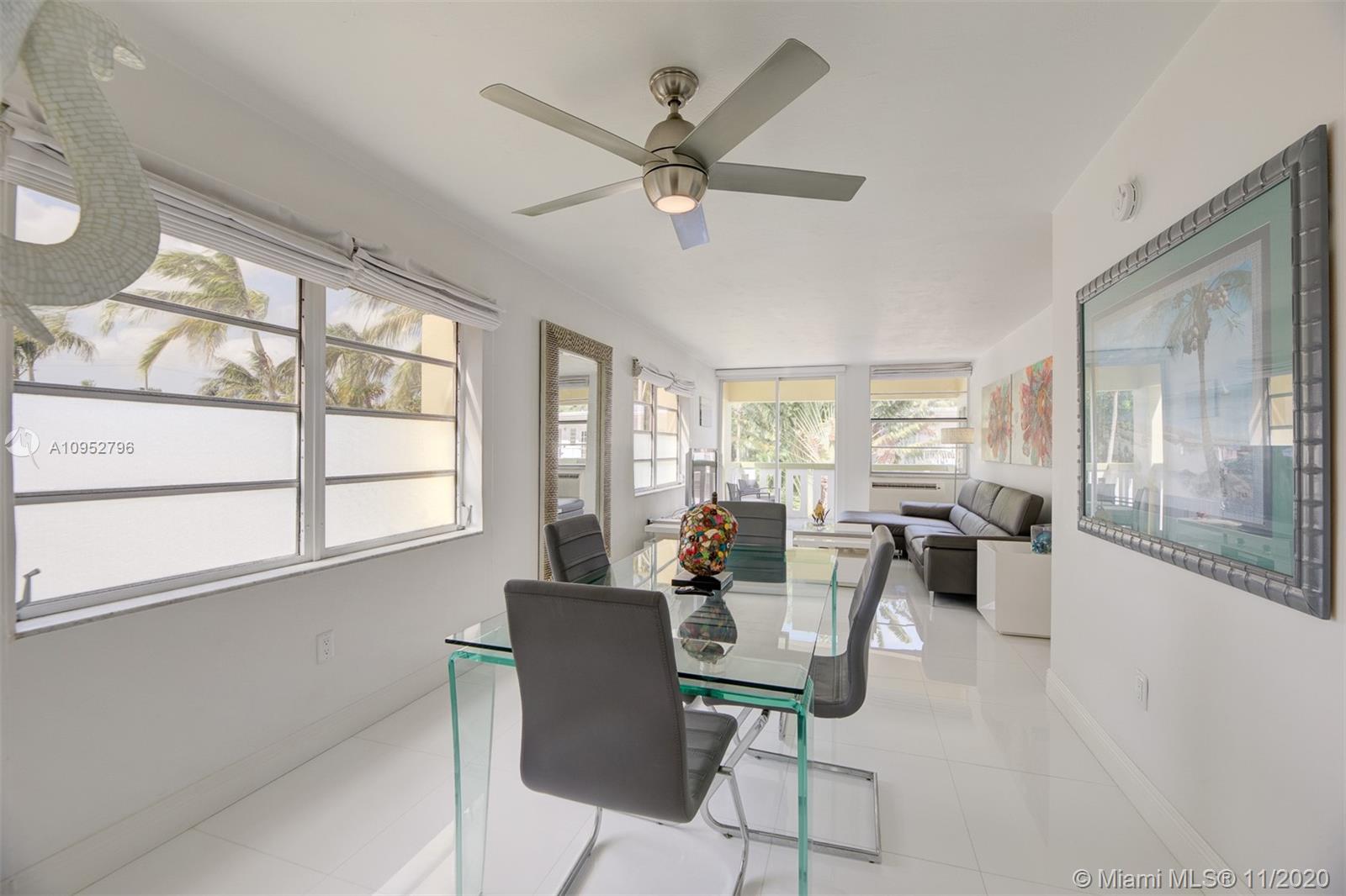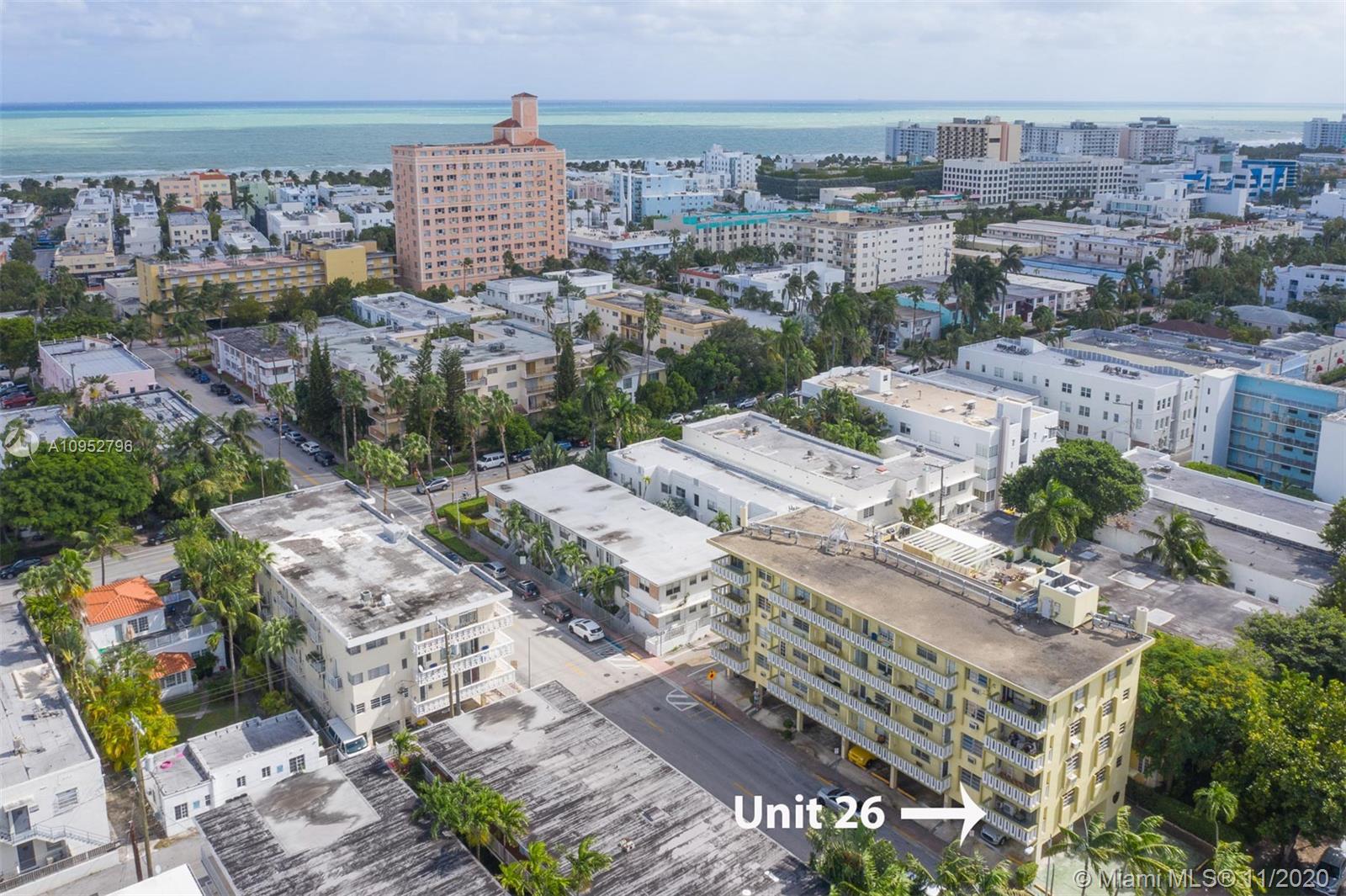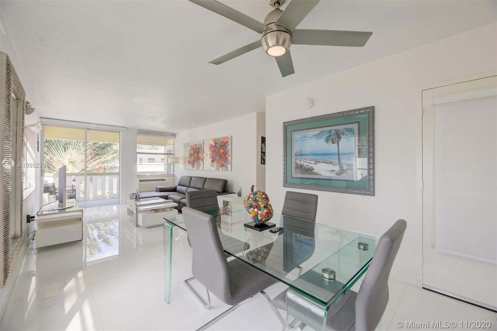 Turn Key/Furnished renovated bright corner unit. A significant investment was put into this condo and it reflects in the beautiful glass flooring, quartz countertops and stainless steel appliances. Your large balcony is on the Northwest corner of the building and receives great sunlight. One covered parking space is included. A ductless Klimaire air conditioning cools well. All special assessments have been paid in full. The property is very close to Flamingo Park. The property can be delivered turn-key with all of the furniture. This would be an easy transition for someone looking to live here or seeking a tenant.