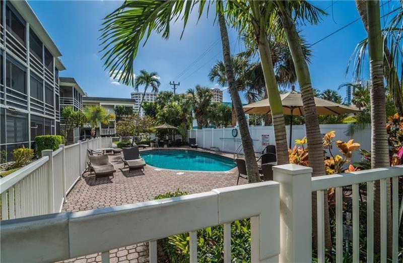 A BEACH & BOAT LOVERS DREAM... THIS ADORABLE 1 BEDROOM 2 BATH 2ND FLOOR UNIT IN UNIQUE BOUTIQUE STYLE BLDG MAKES A PERFECT HOME FOR LAID BACK BEACH GETAWAY. ENJOY THE PRIVATE DEEDED BEACH ACCESS RIGHT ACROSS THE STREET, SECLUDED HEATED POOL JUST OUTSIDE YOUR DOOR & BOAT DOCKAGE LESS THAN $50 PER MONTH WHEN AVAILABLE. JUST 5 MINUTES TO LAUDERDALE BY THE SEA & POMPANO BEACH ATTRACTIONS. IN PROCESS OF ITS 40 YEAR INSPECTION INCLUDING EXTENSIVE RESTORATIONS WITH ALL ASSESSMENTS PAID BY THE SELLER!!. THERE IS NO DOCK SPACE AVAILABLE AS THE DOCK IS NOT COMPLETED. MONTHLY HOA $660.00 INCLUDES LAND LEASE & MAINT FEE. CAN LEASE RIGHT AWAY. EASY TO SHOW SO CALL TODAY TO VIEW THIS HIDDEN GEM!..OR USE MY 3D TOUR LINK ATTACHED.